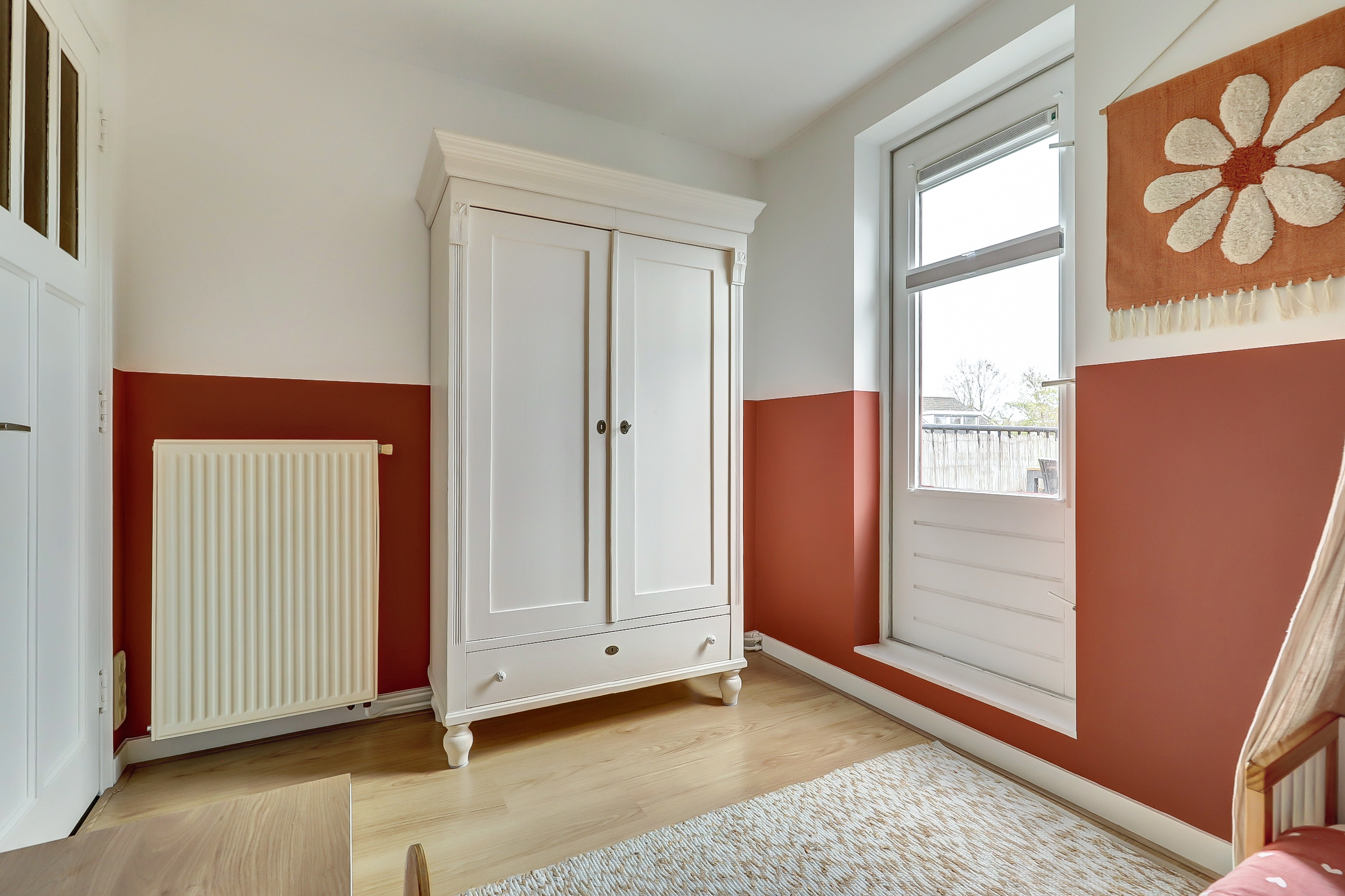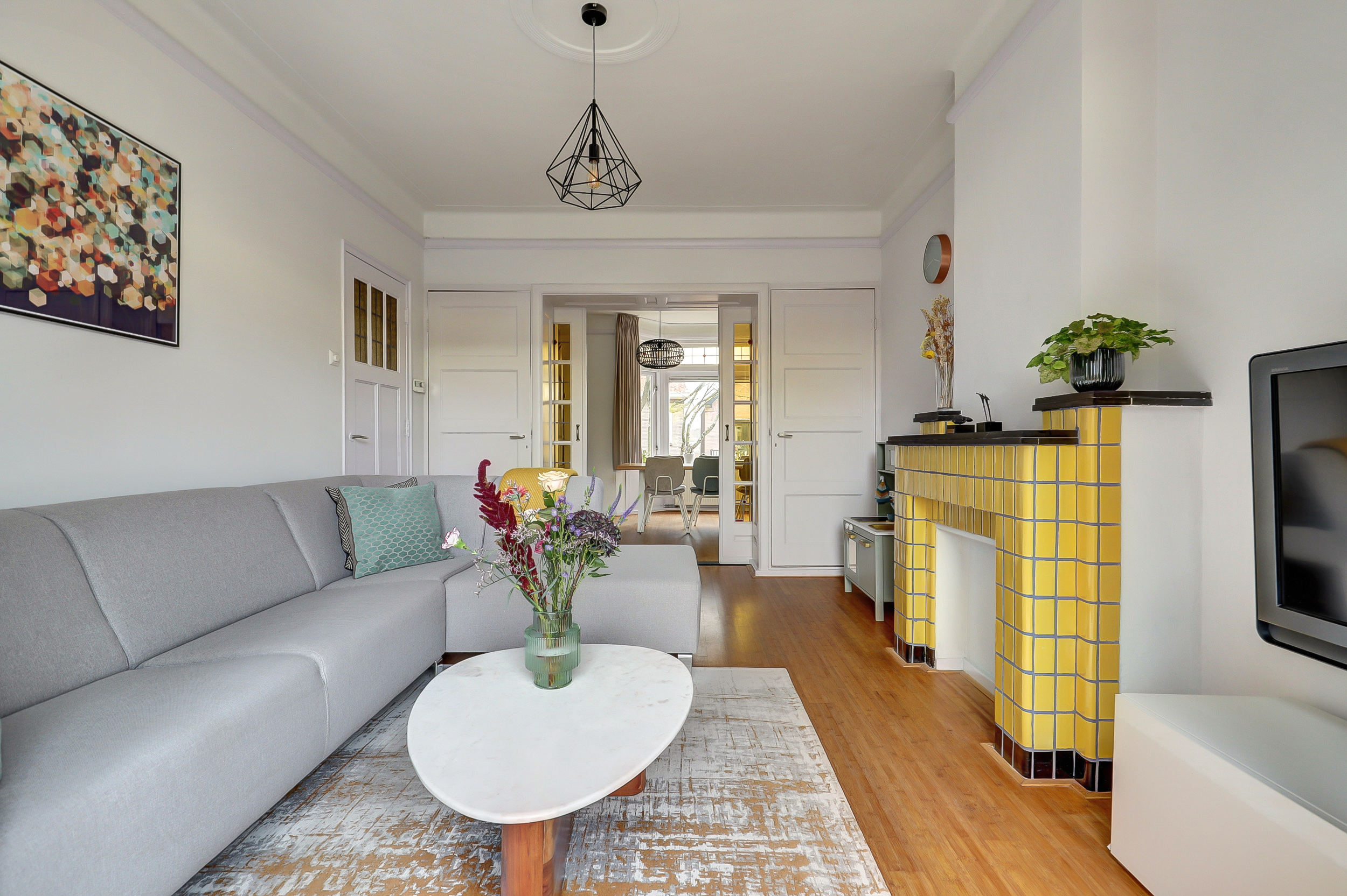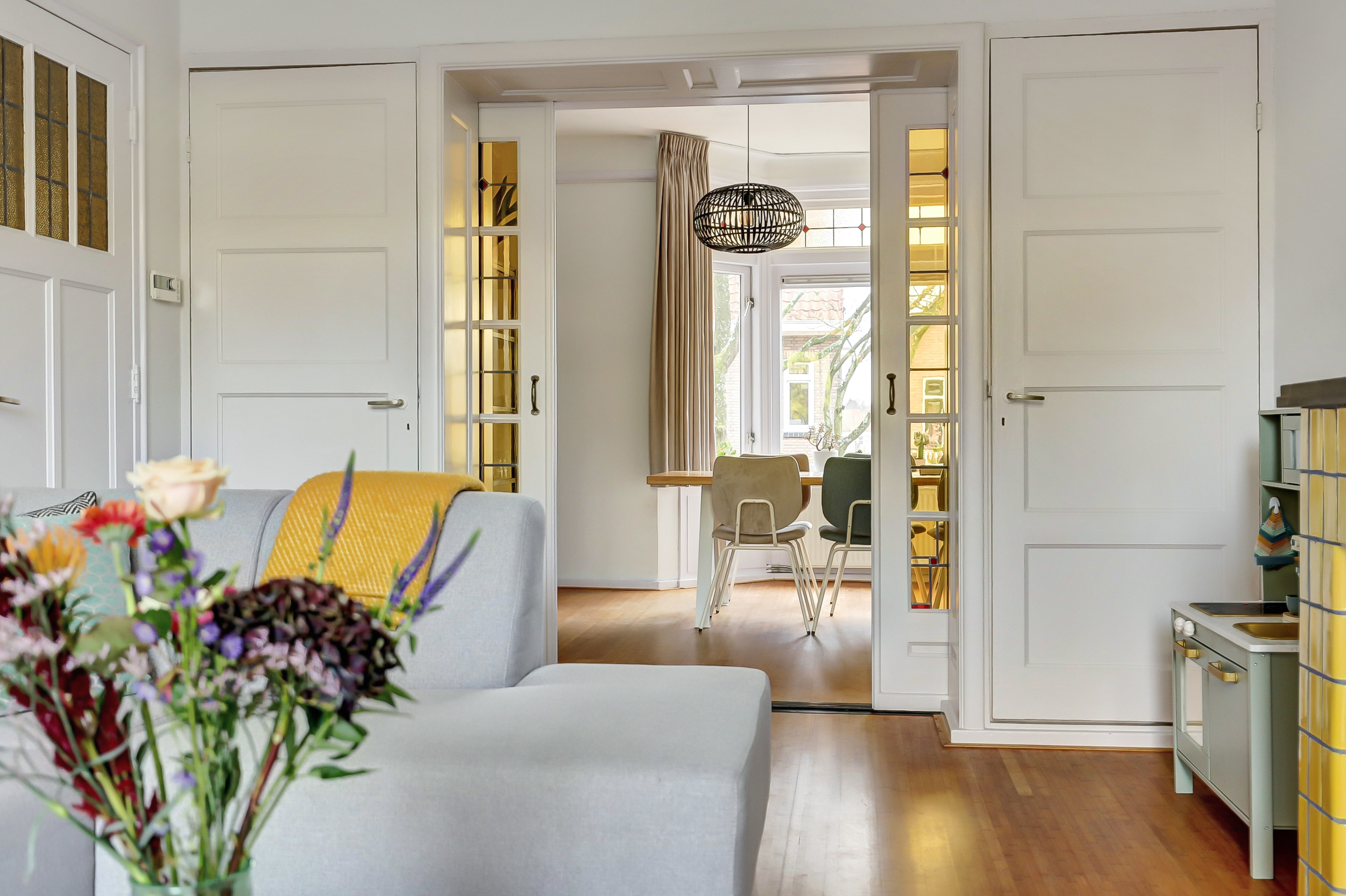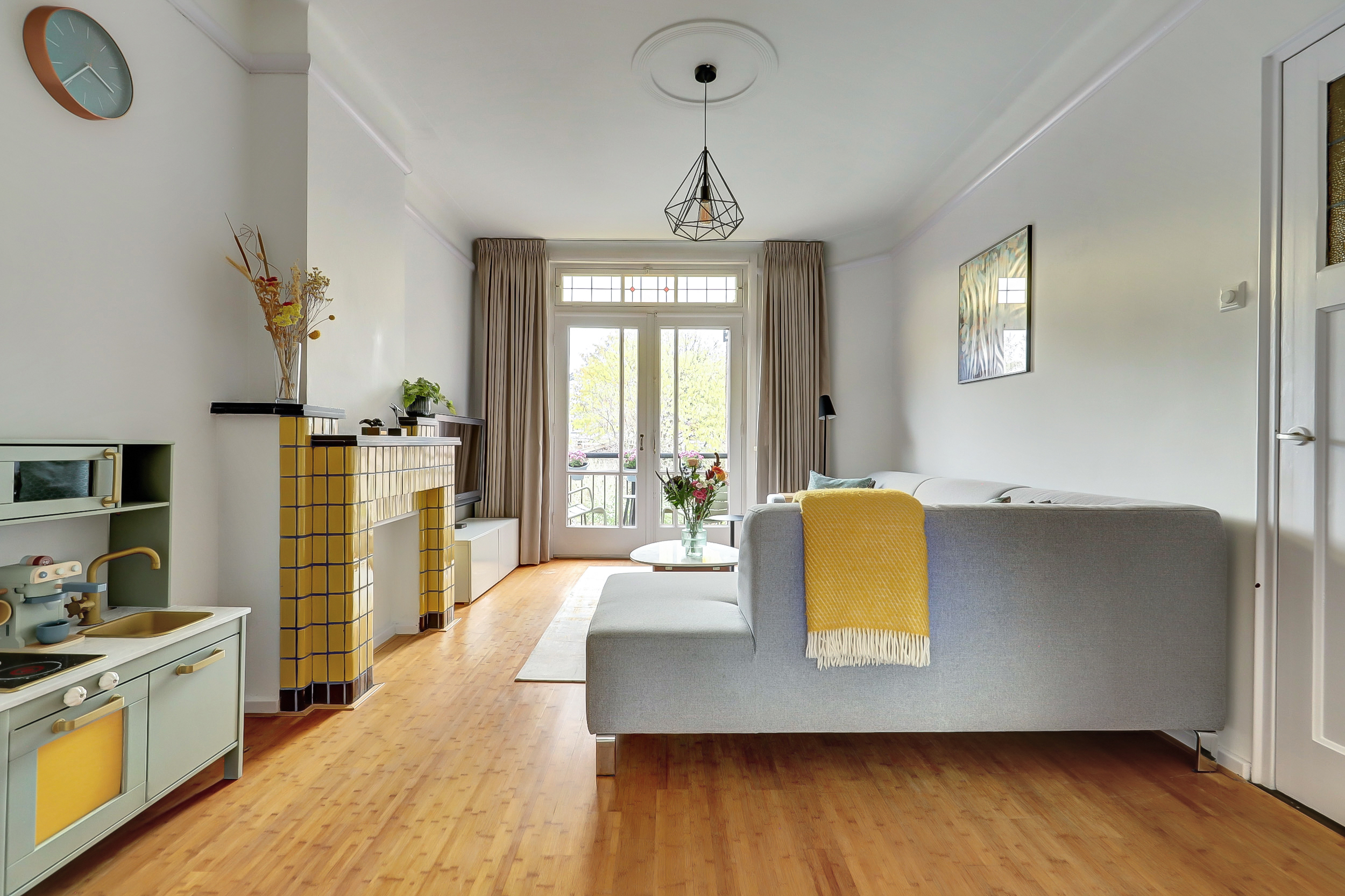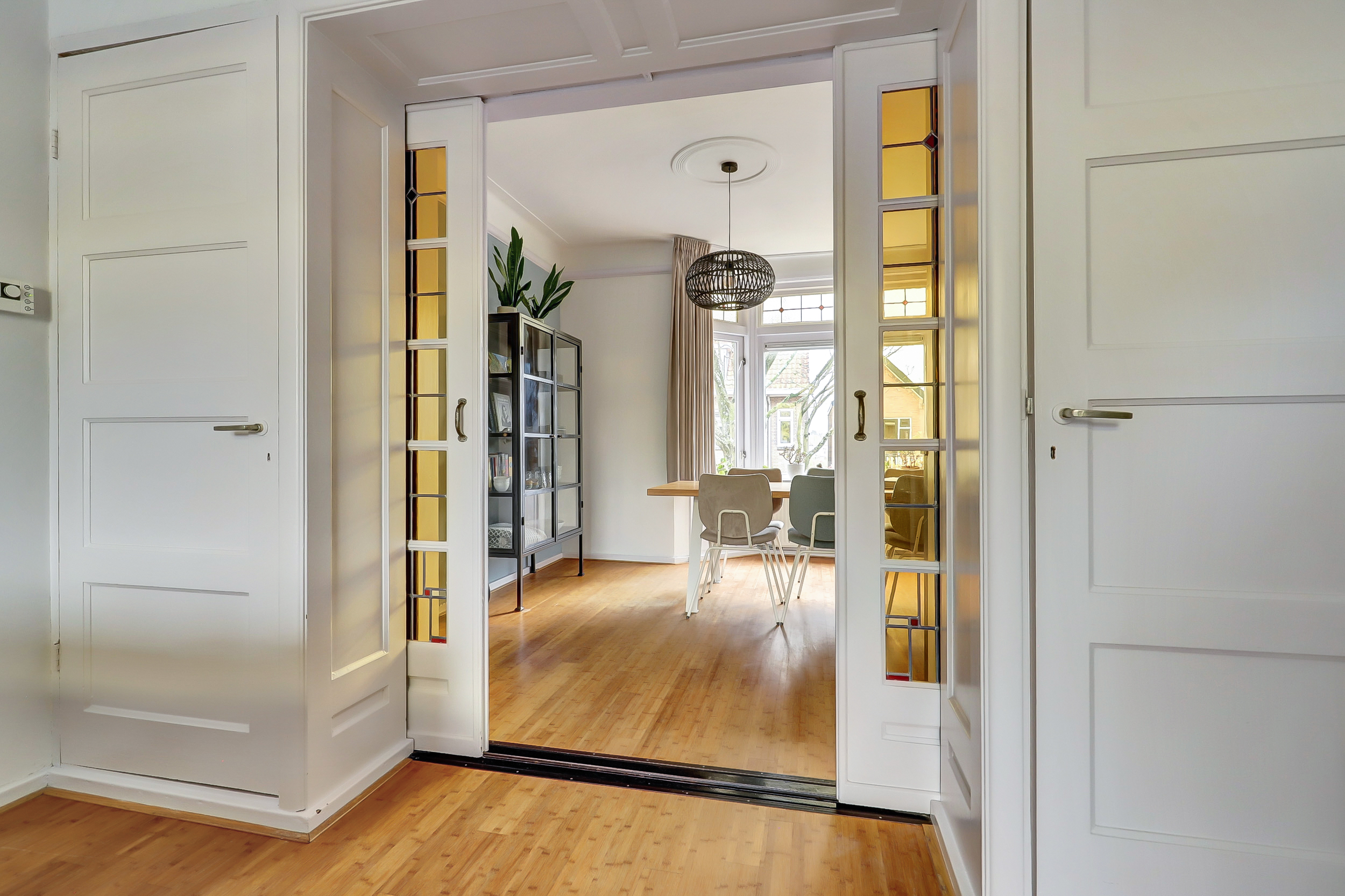 Vanuit de overloop zijn alle vertrekken op deze verdieping bereikbaar. De woon-/eetkamer is licht en ruim, met een erker die veel daglicht binnenlaat, ensuite glas-in-lood deuren, inbouwkasten en een balkon aan de achterzijde met vrij uitzicht. De openslaande deuren zorgen voor een fijne verbinding met buiten. De keuken (2009) heeft een prachtige granitovloer. Verder is de keuken voorzien van een koelvriescombinatie, een grote oven, een 5-pitsgasfornuis en een vaatwasser (2019). Vanuit de keuken heb je een leuk uitzicht op de straat. Op deze verdieping bevindt zich verder een toiletruimte en er zijn diverse karakteristieke details aanwezig, zoals glas-in-loodramen met voorzetramen en twee mooie betegelde schouwen, die het geheel extra sfeer geven.