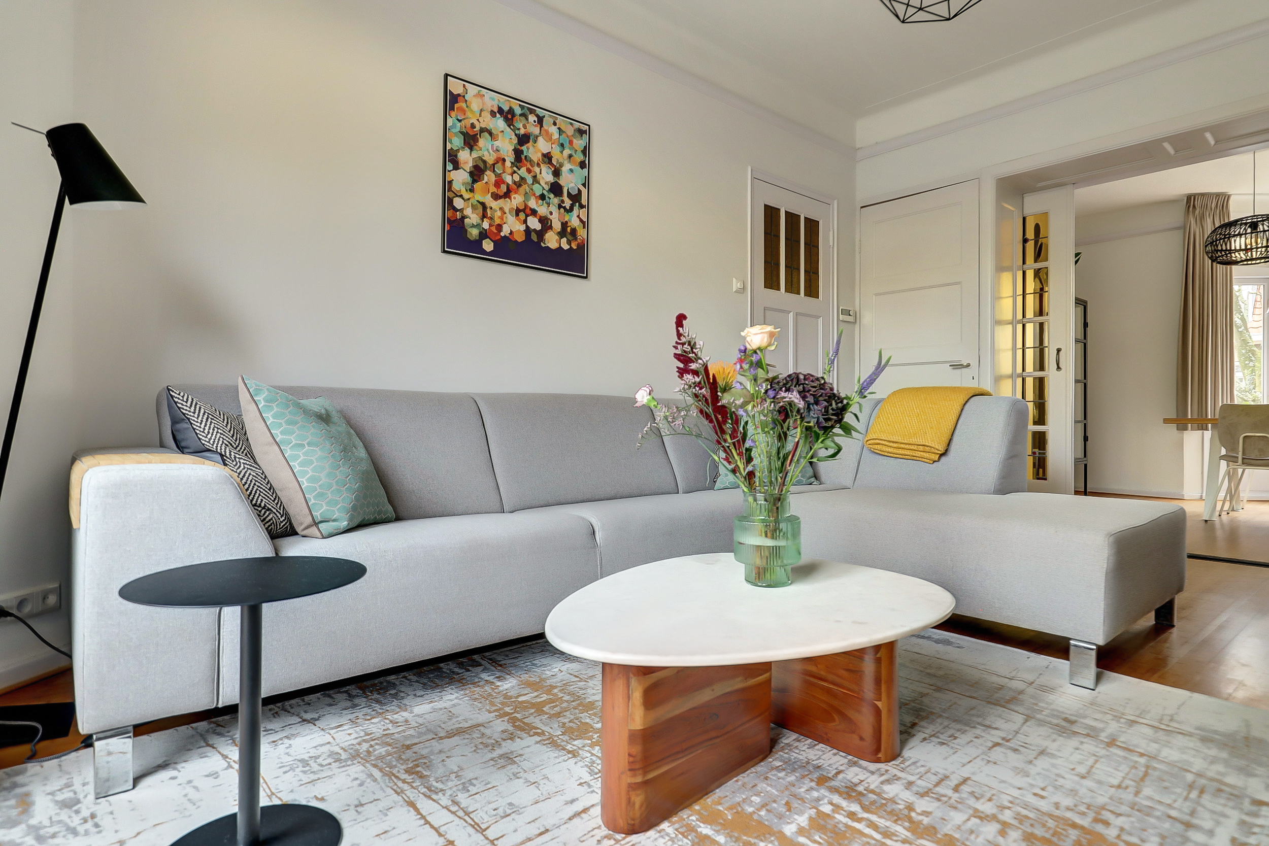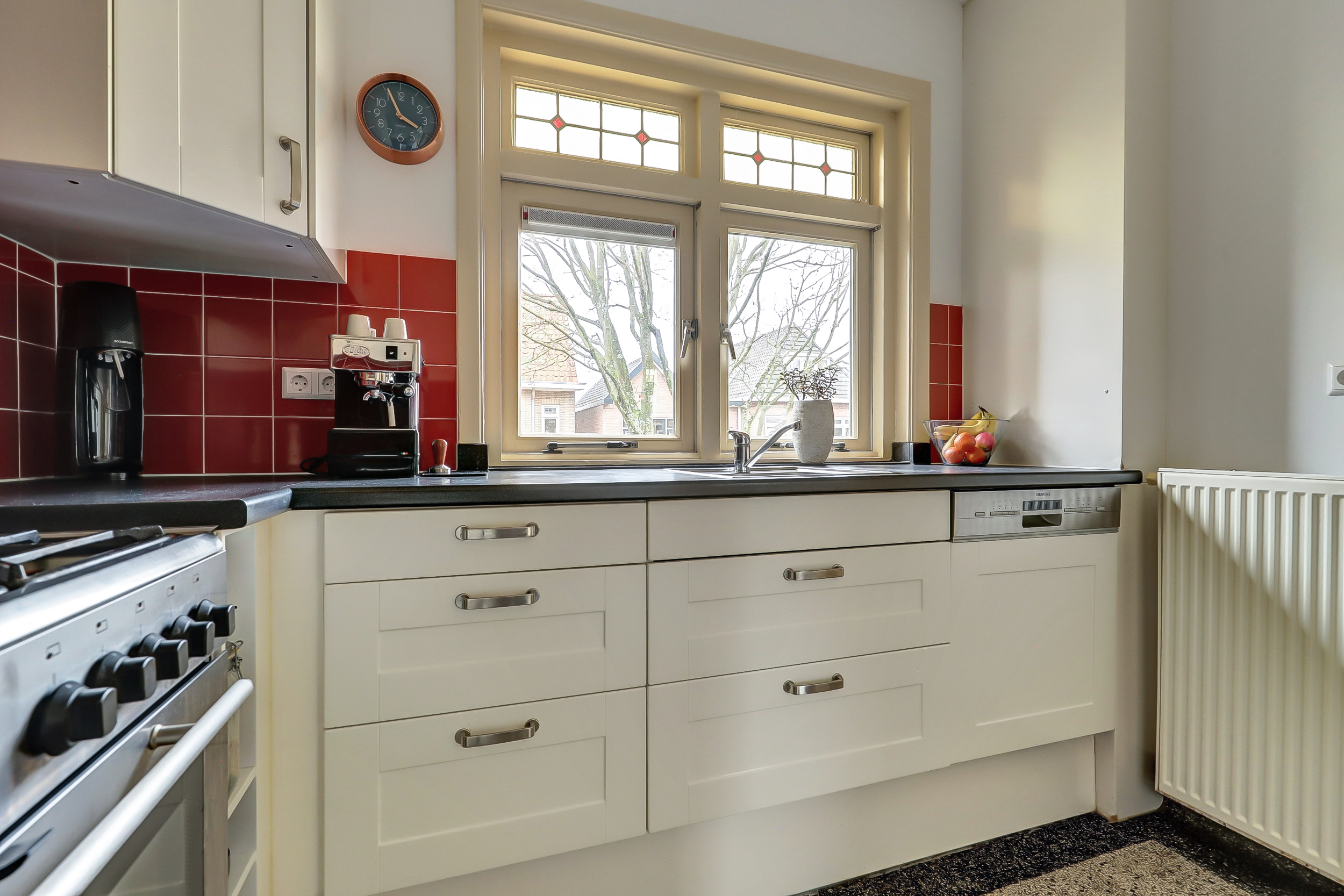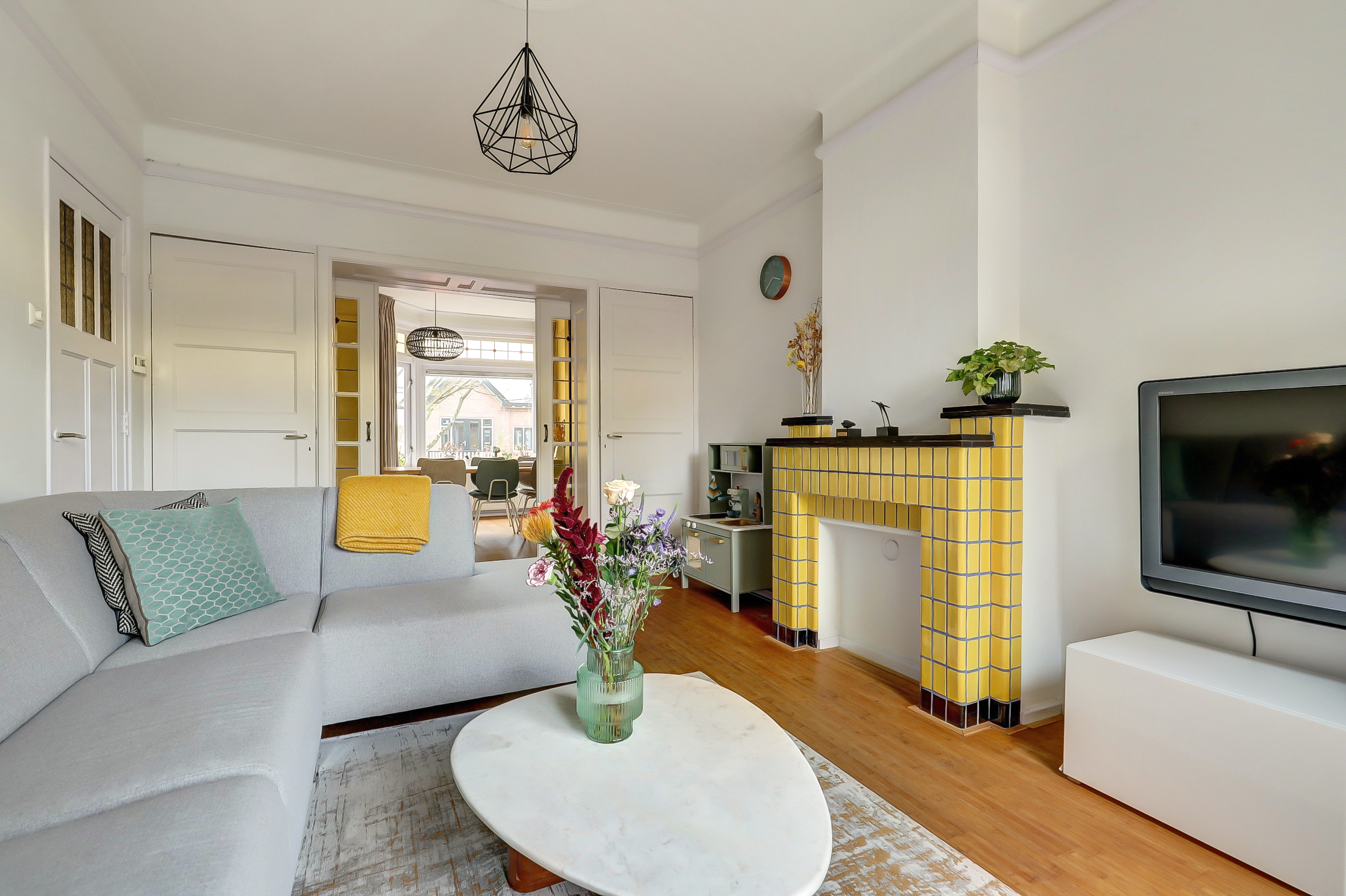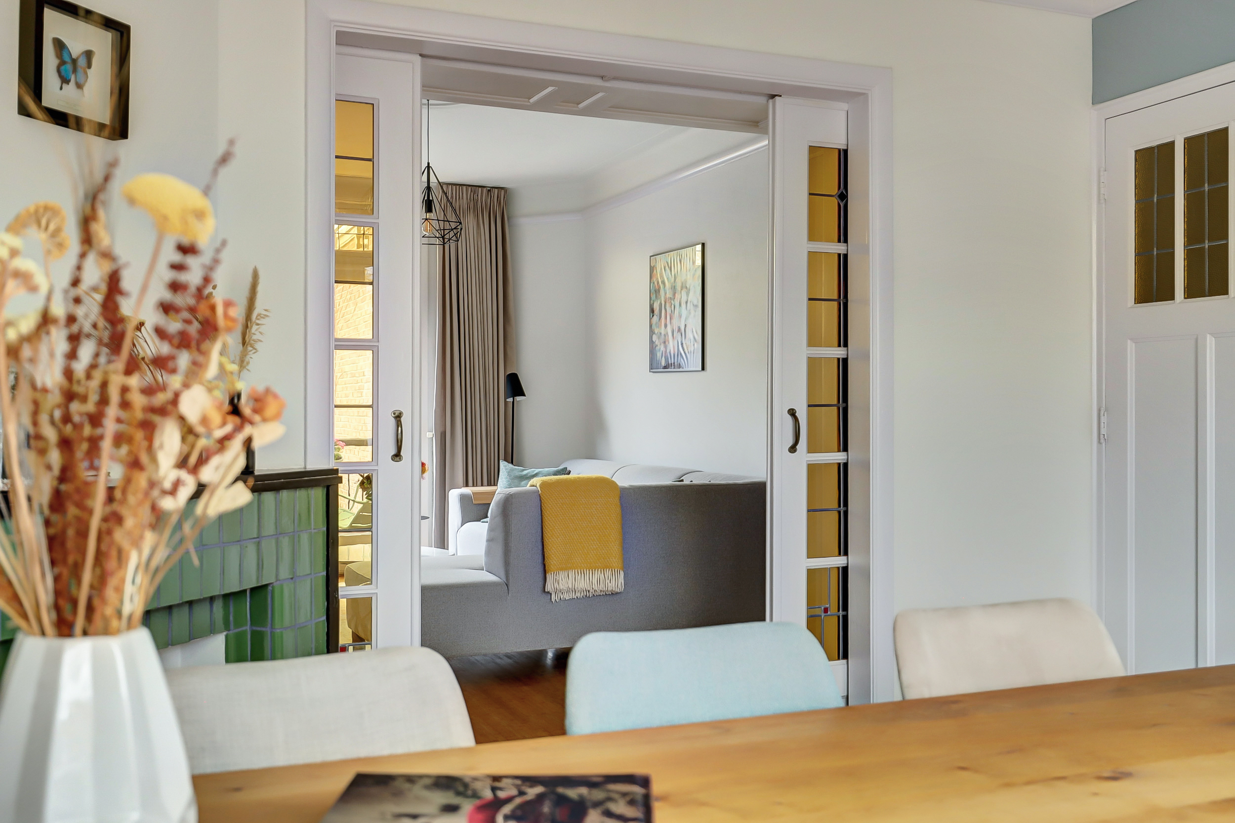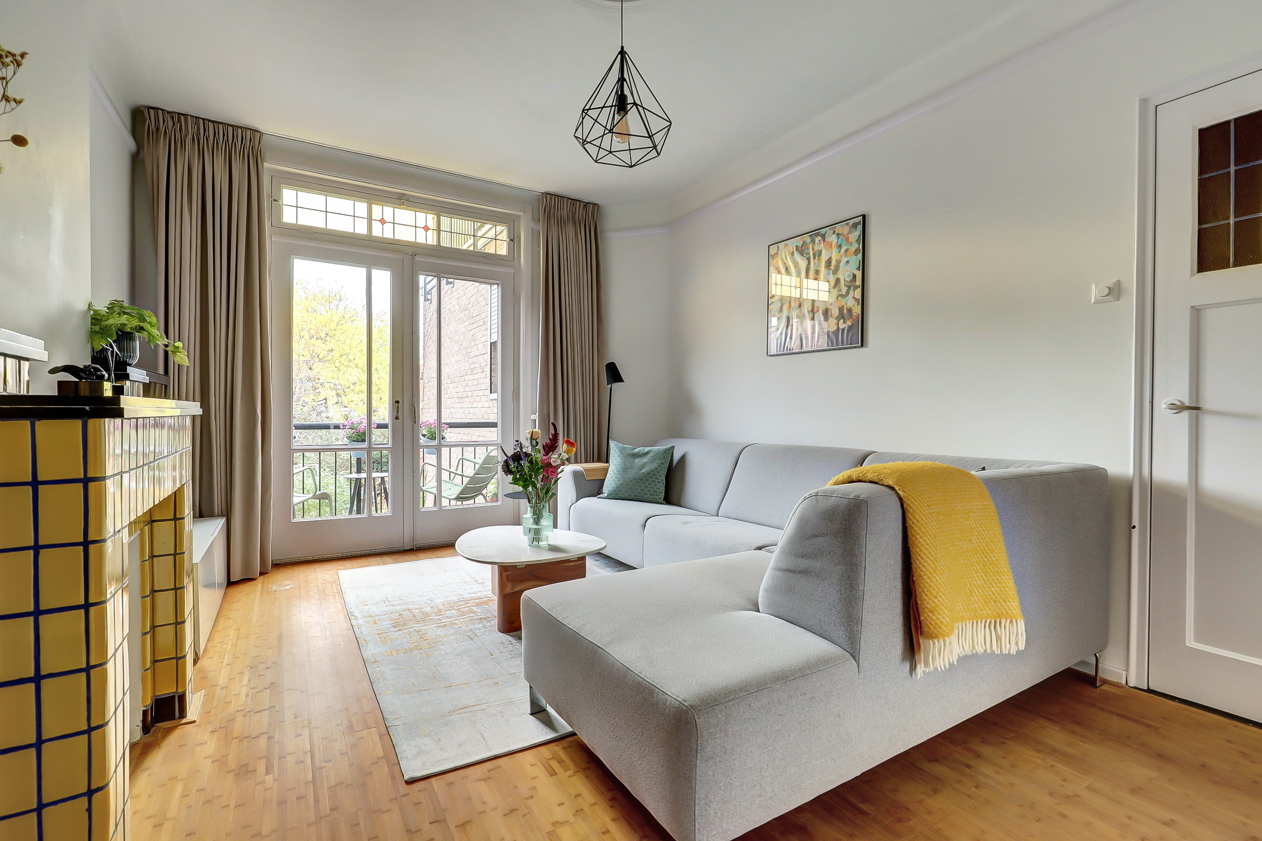 Vanuit de overloop zijn alle vertrekken op deze verdieping bereikbaar. De woon-/eetkamer is licht en ruim, met een erker die veel daglicht binnenlaat, ensuite glas-in-lood deuren, inbouwkasten en een balkon aan de achterzijde met vrij uitzicht. De openslaande deuren zorgen voor een fijne verbinding met buiten. De keuken (2009) heeft een prachtige granitovloer. Verder is de keuken voorzien van een koelvriescombinatie, een grote oven, een 5-pitsgasfornuis en een vaatwasser (2019). Vanuit de keuken heb je een leuk uitzicht op de straat. Op deze verdieping bevindt zich verder een toiletruimte en er zijn diverse karakteristieke details aanwezig, zoals glas-in-loodramen met voorzetramen en twee mooie betegelde schouwen, die het geheel extra sfeer geven.