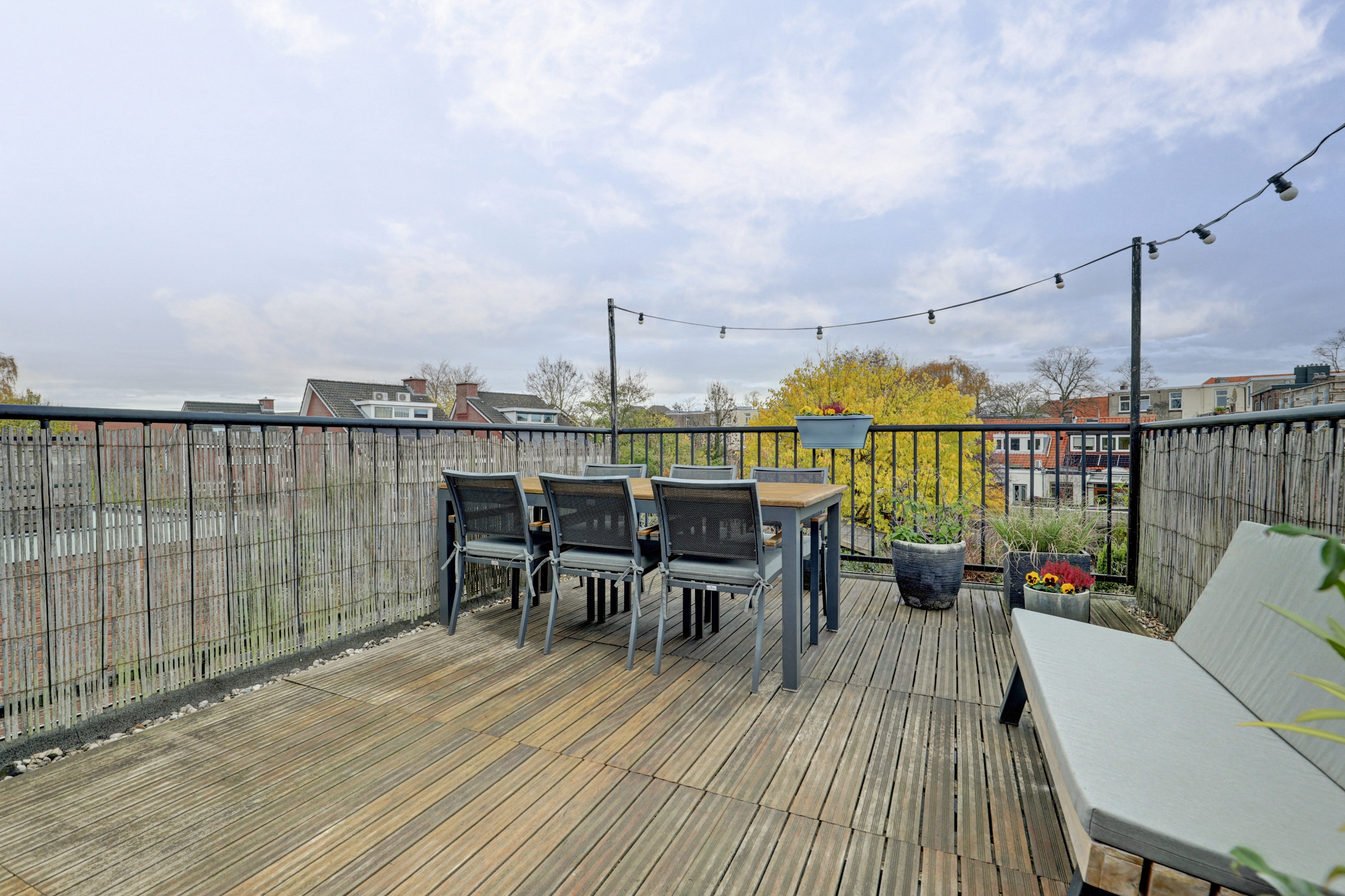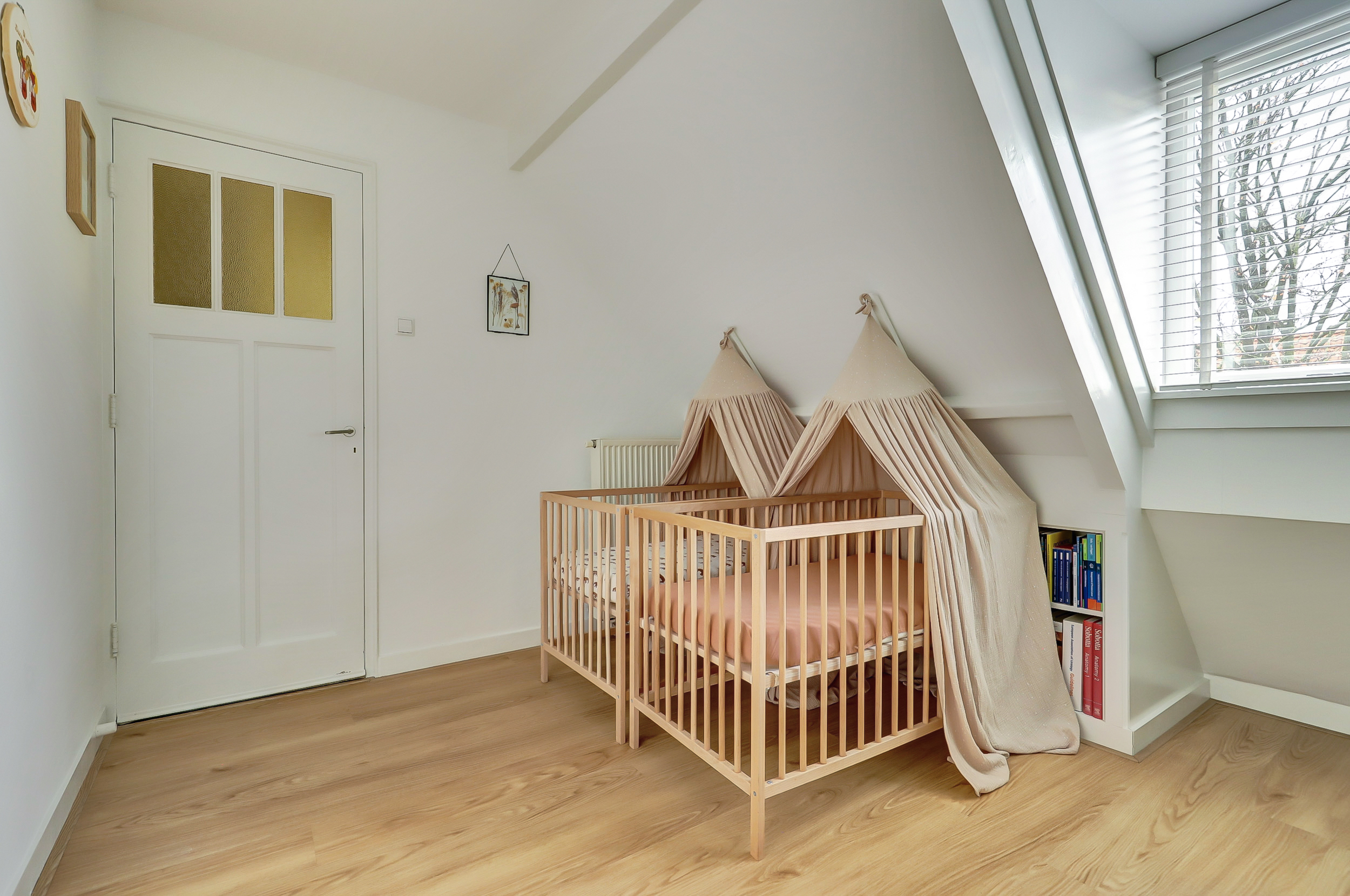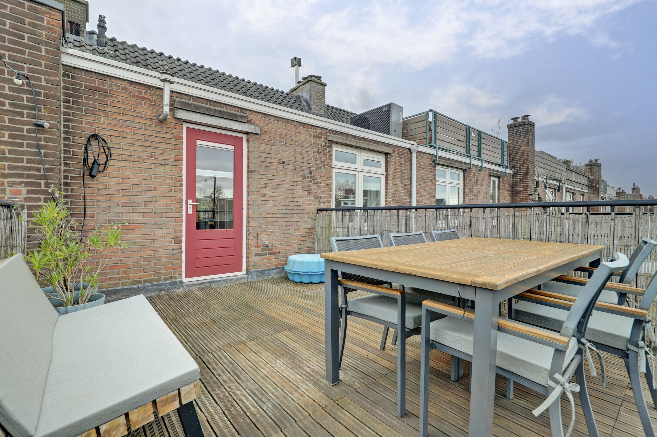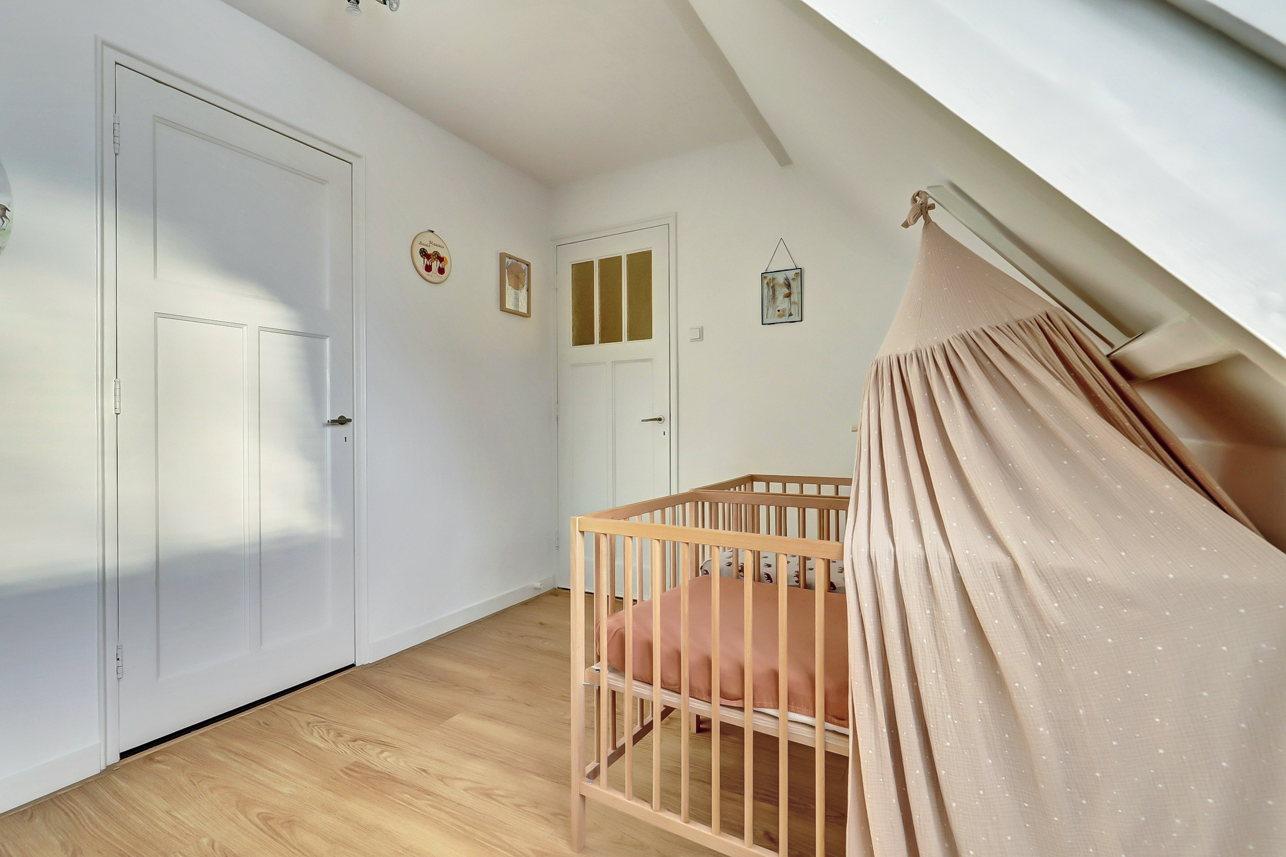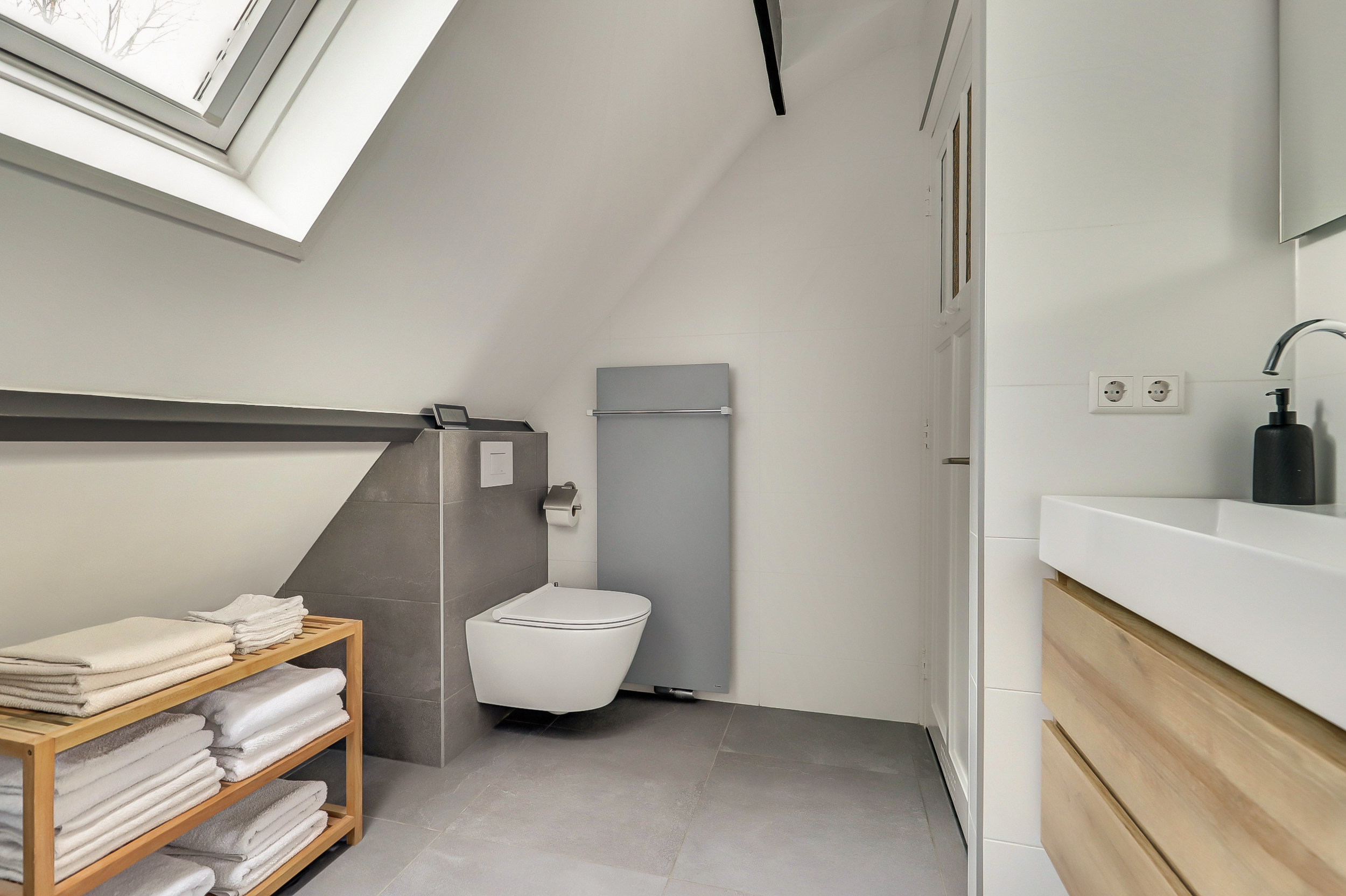 Ruime overloop met toegang tot drie fijne slaapkamers (met inbouwkasten) en de badkamer. De badkamer is in 2020 volledig vernieuwd en voorzien van een regendouche, wastafel, toilet, wasmachineaansluiting, mechanische ventilatie en een dakraam. Vanuit een van de slaapkamers aan de achterzijde is het dakterras bereikbaar. Het dakterras is maar liefst 18,4 m² groot en biedt een groen en vrij uitzicht.