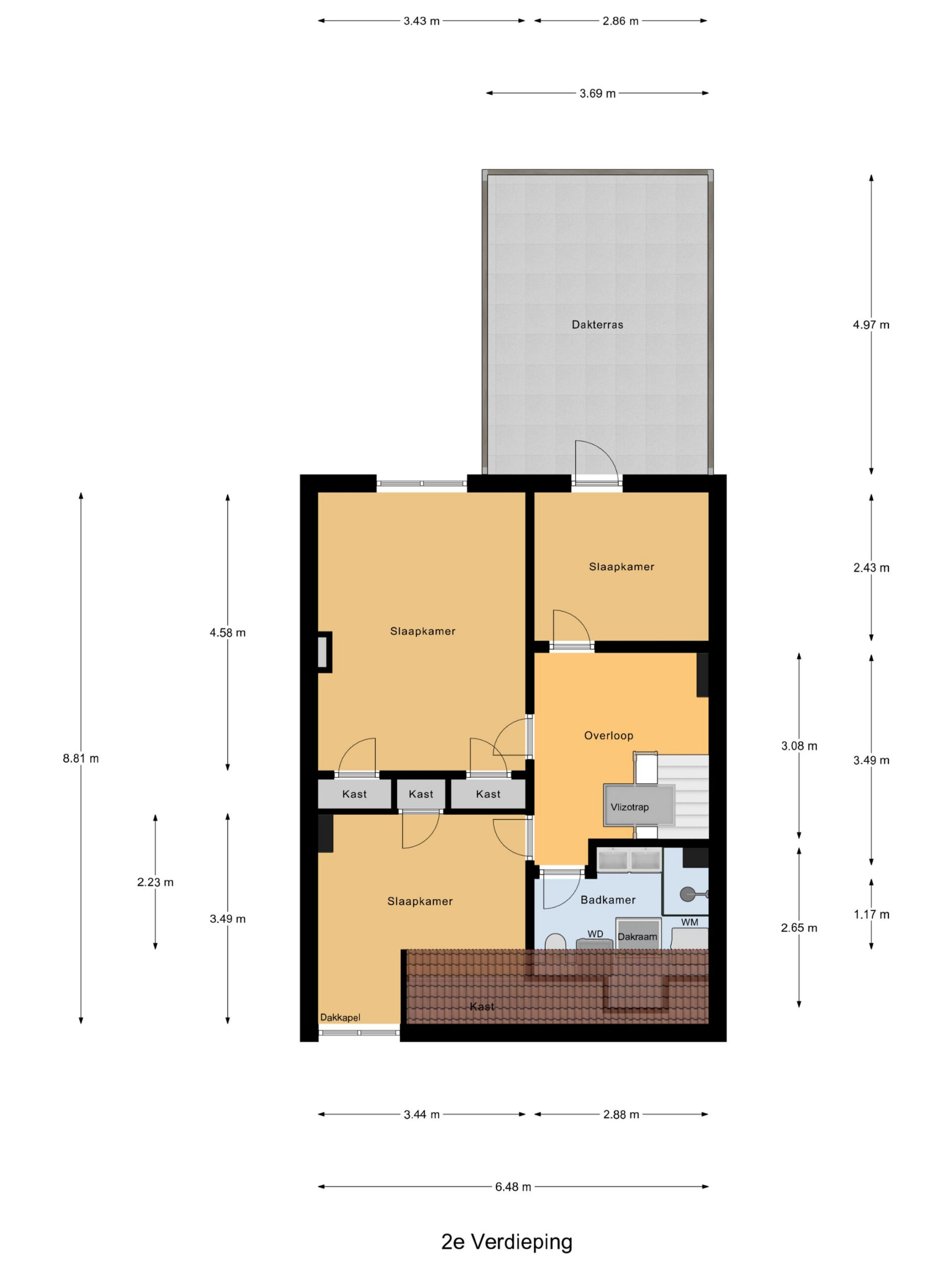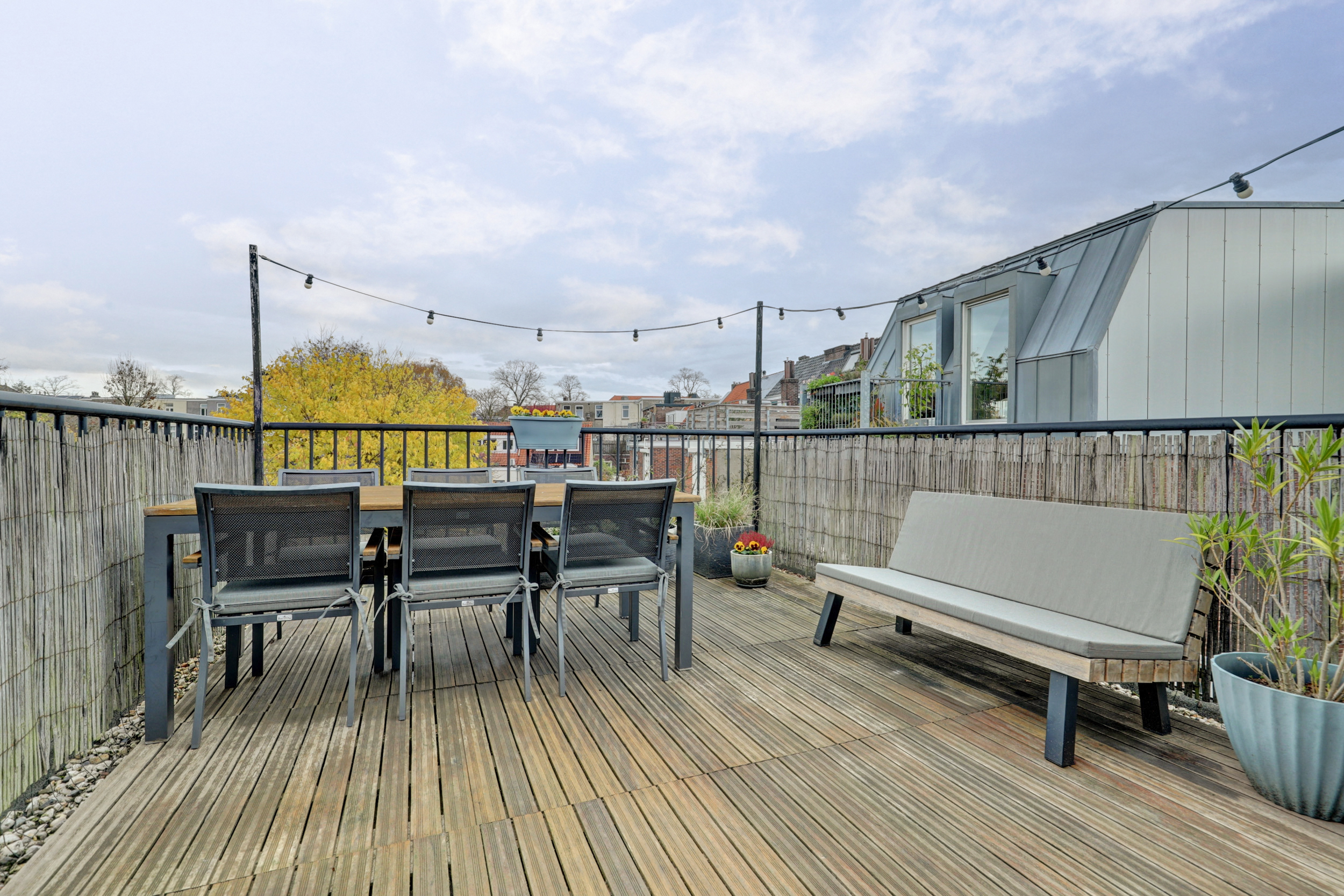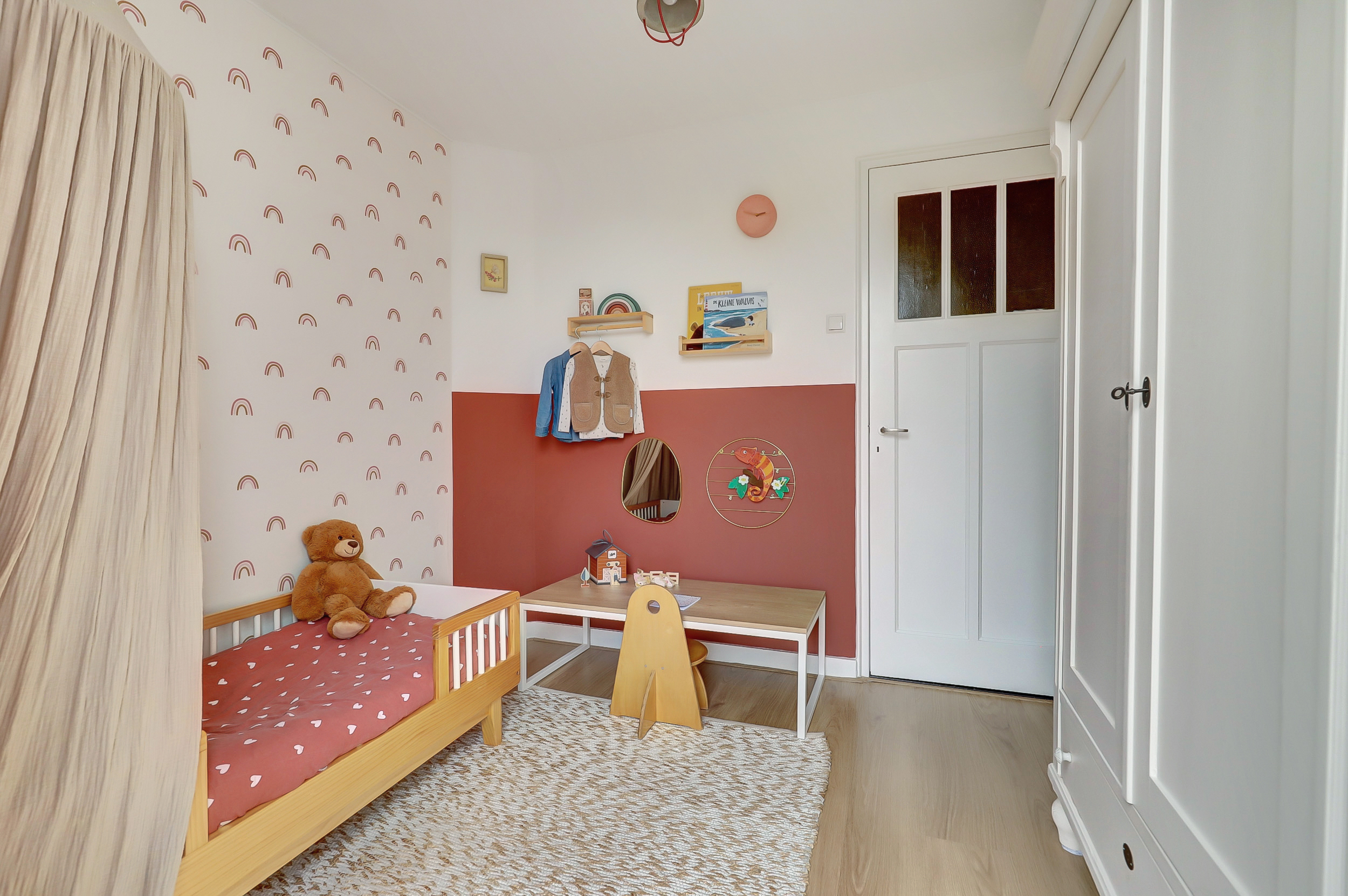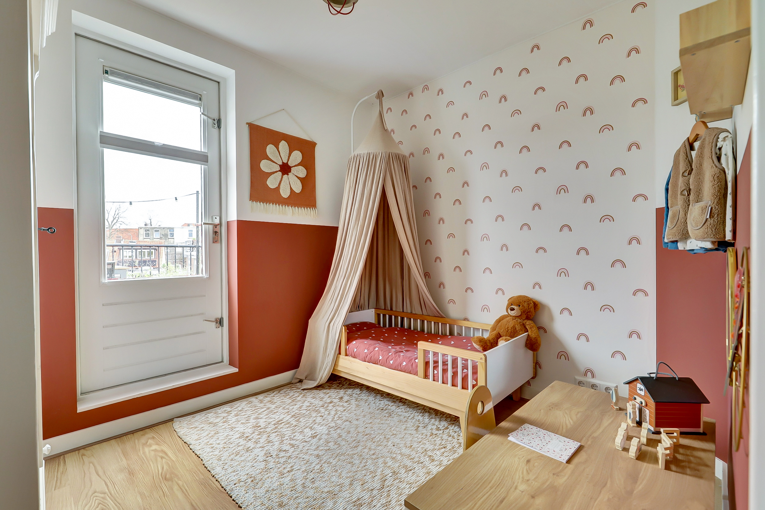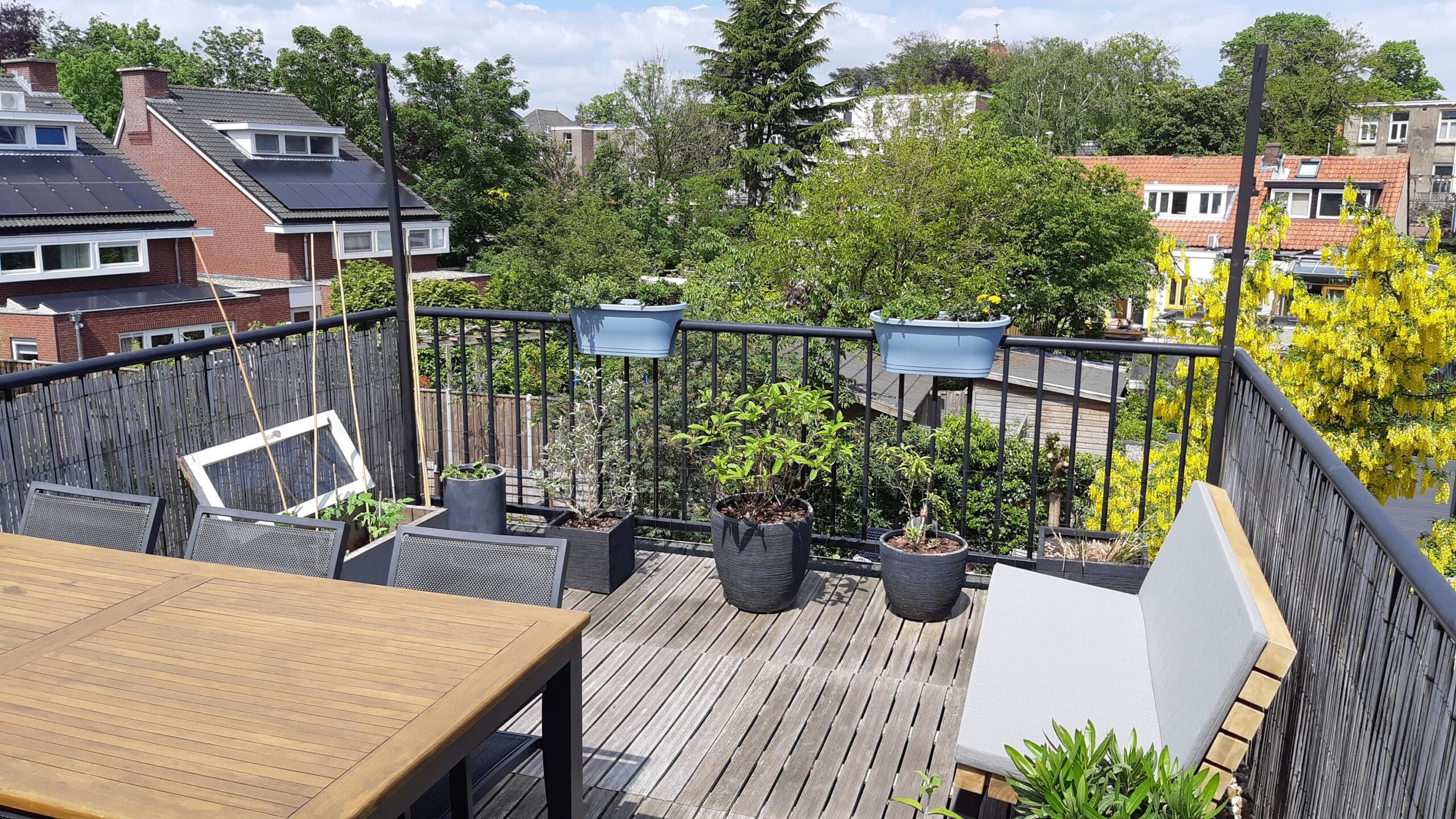 Ruime overloop met toegang tot drie fijne slaapkamers (met inbouwkasten) en de badkamer. De badkamer is in 2020 volledig vernieuwd en voorzien van een regendouche, wastafel, toilet, wasmachineaansluiting, mechanische ventilatie en een dakraam. Vanuit een van de slaapkamers aan de achterzijde is het dakterras bereikbaar. Het dakterras is maar liefst 18,4 m² groot en biedt een groen en vrij uitzicht.