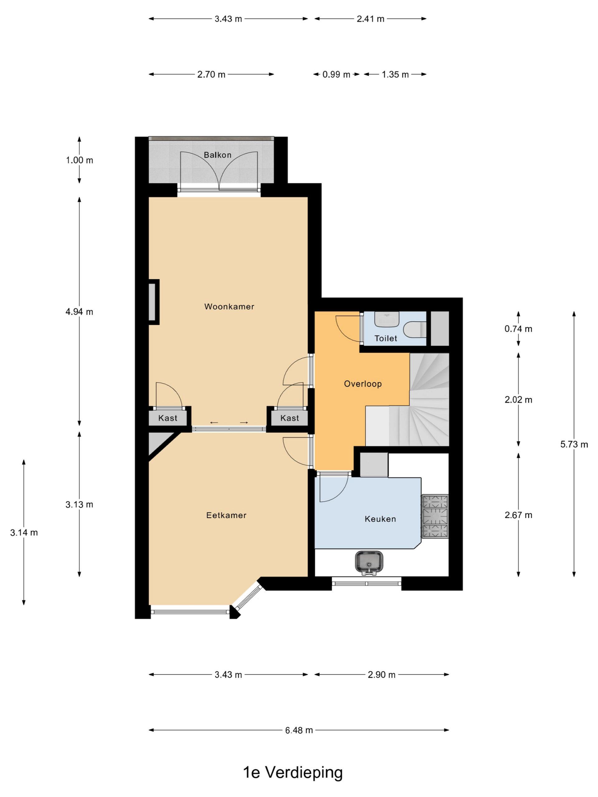Op de begane grond kom je binnen in de hal met trapopgang naar de eerste verdieping en toegang tot de ruime provisiekelder van ca. 26 m² met stahoogte.