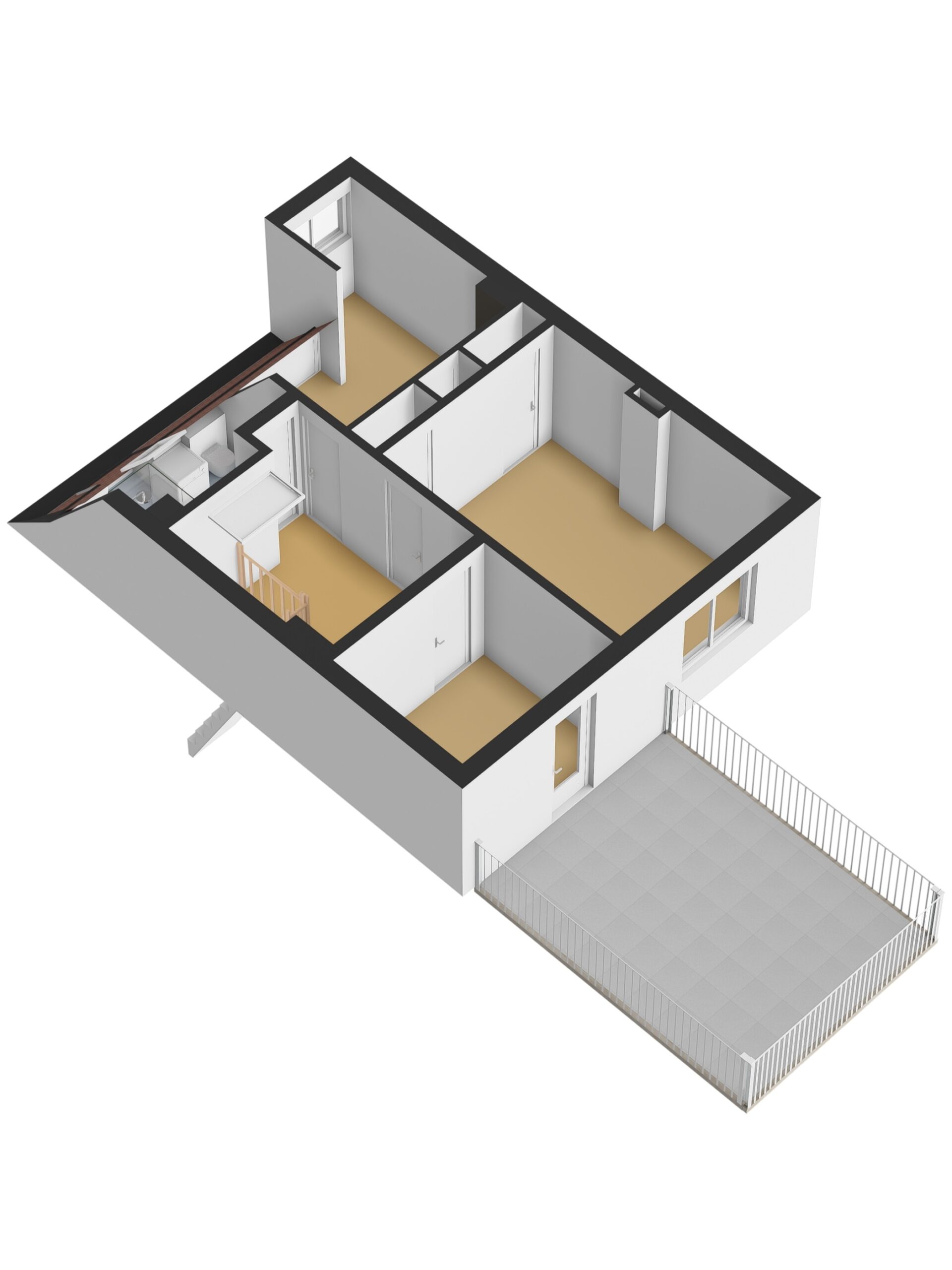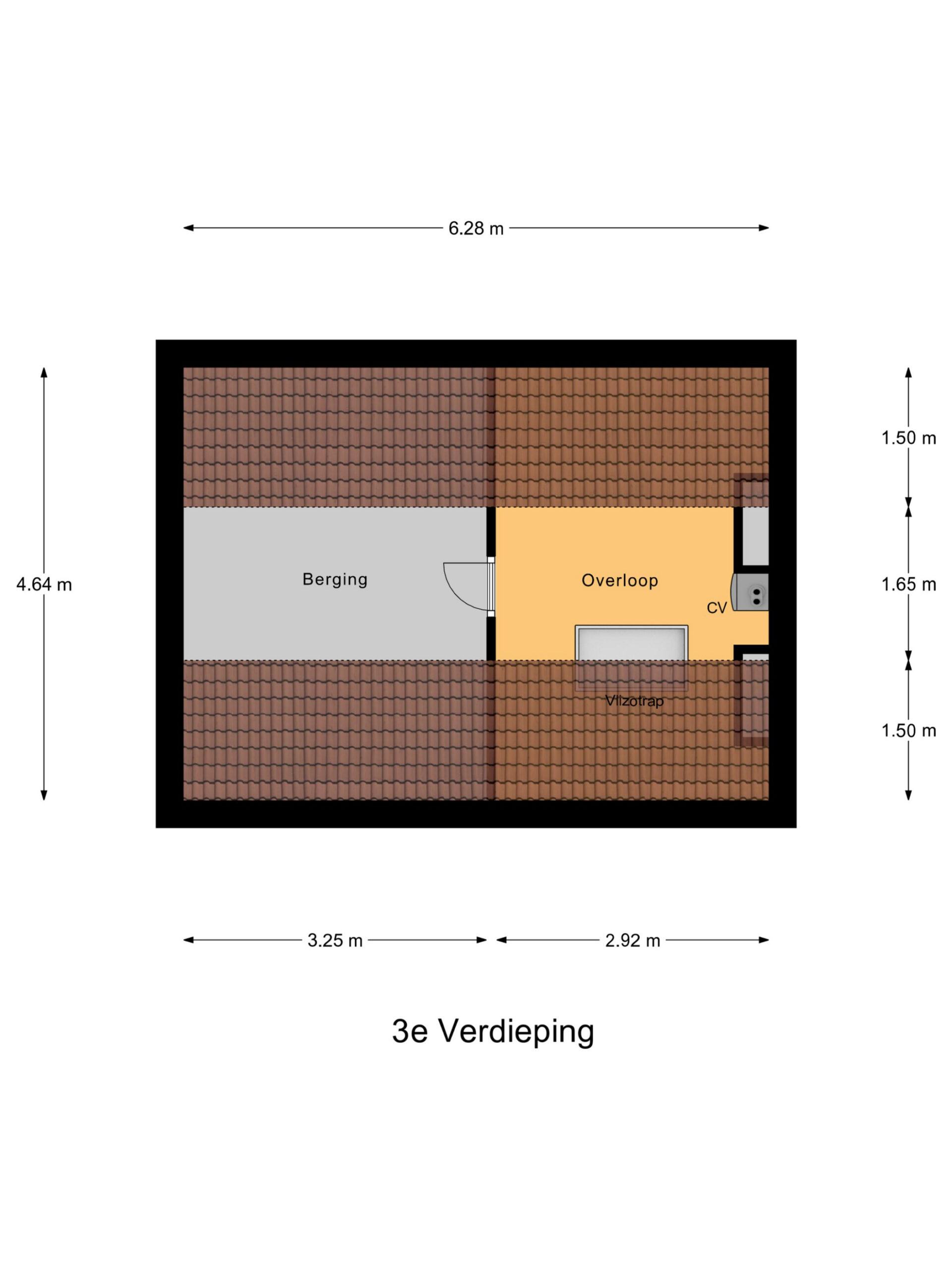 Hier bevindt zich de vliering, die dienst doet als praktische bergzolder. Deze verdieping is bereikbaar middels een vlizotrap. Gezien de oppervlakte van de zolder bestaat hier de mogelijkheid om een vierde kamer (inclusief tweede dakterras) te realiseren.