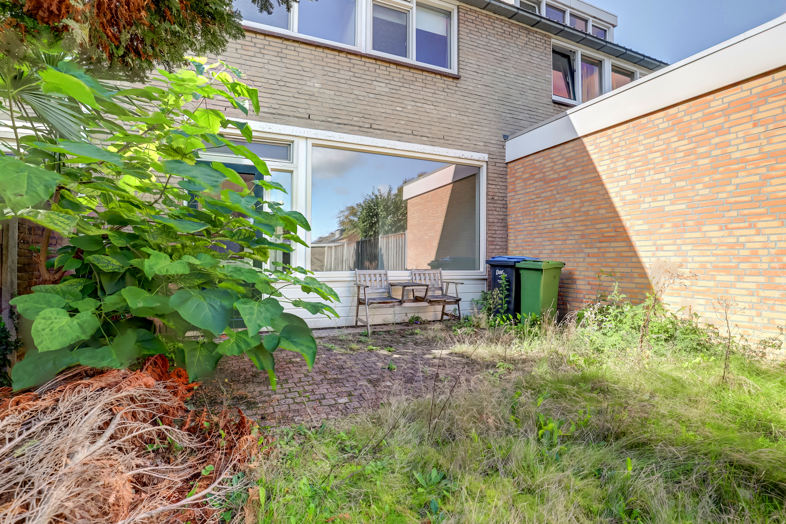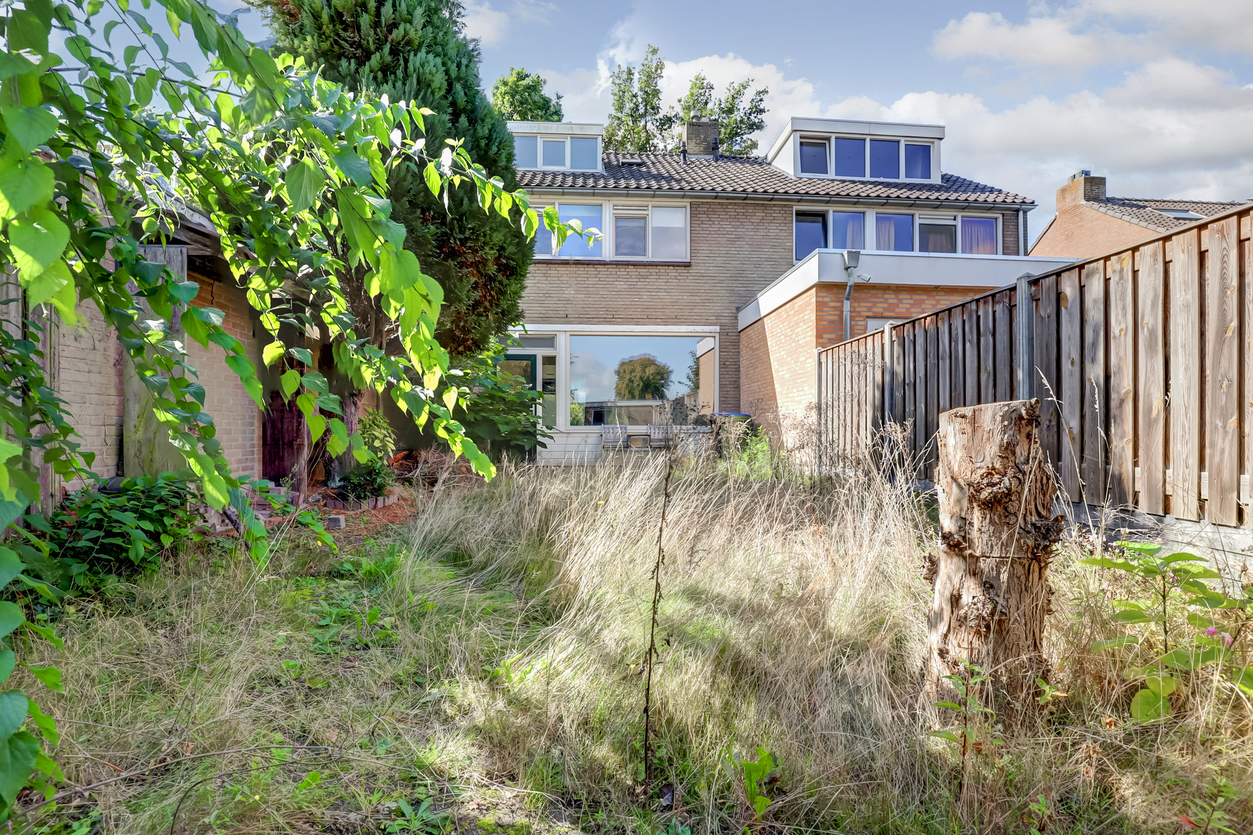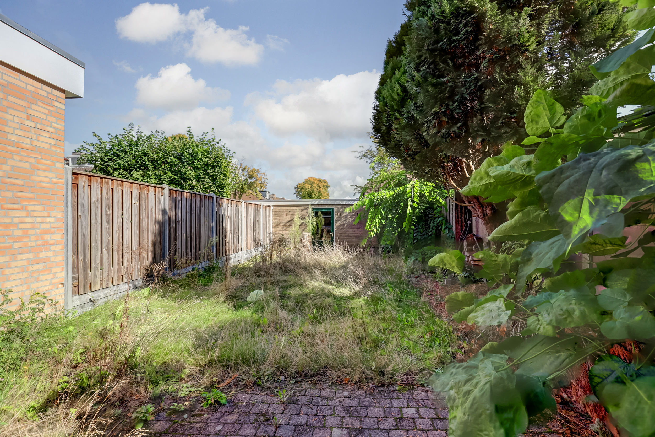 De tuin ligt op het noordoosten en is voorzien van een terras en een grasveldje. Vanuit de tuin is er tevens toegang tot de vrijstaande garage.