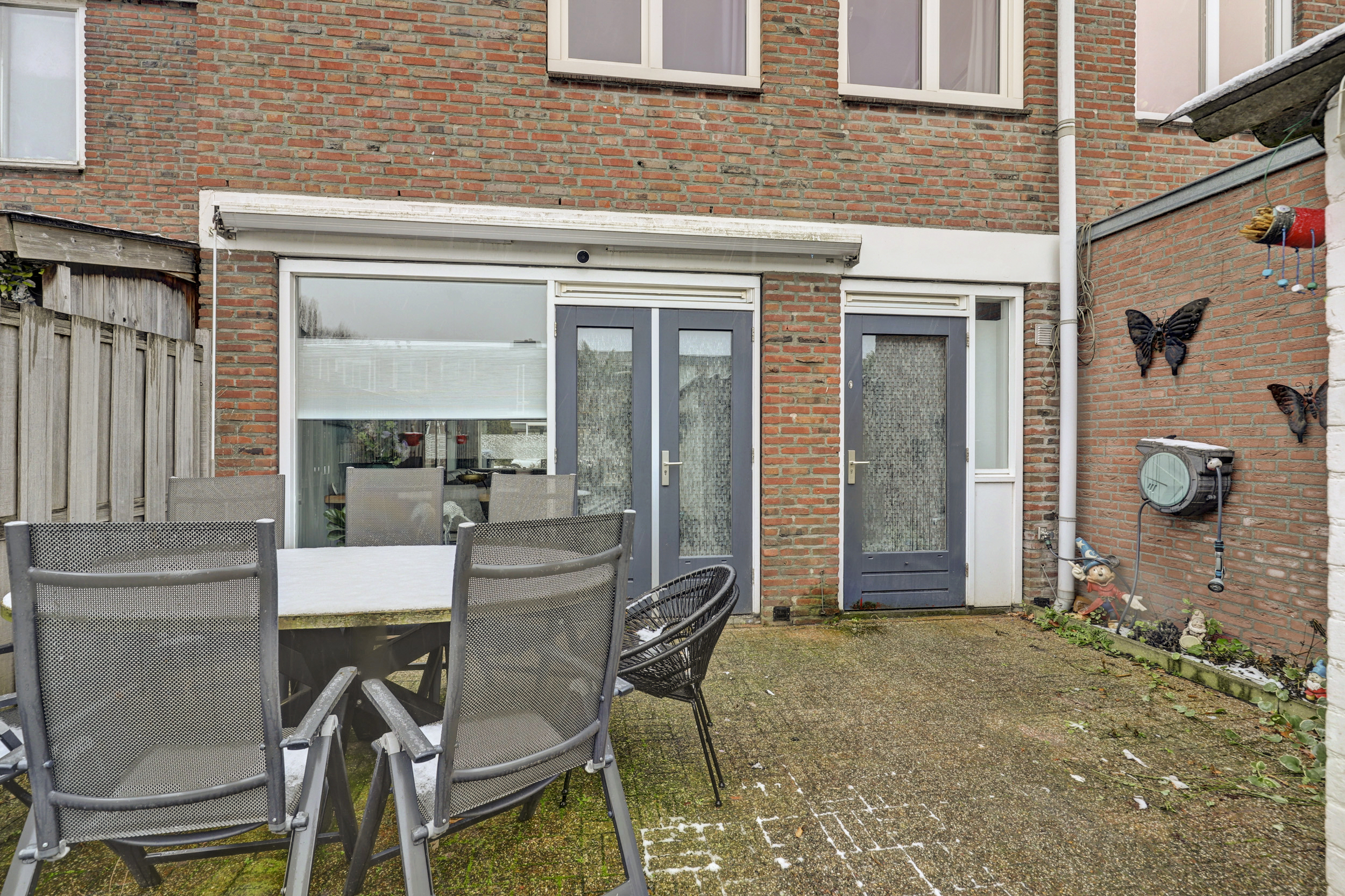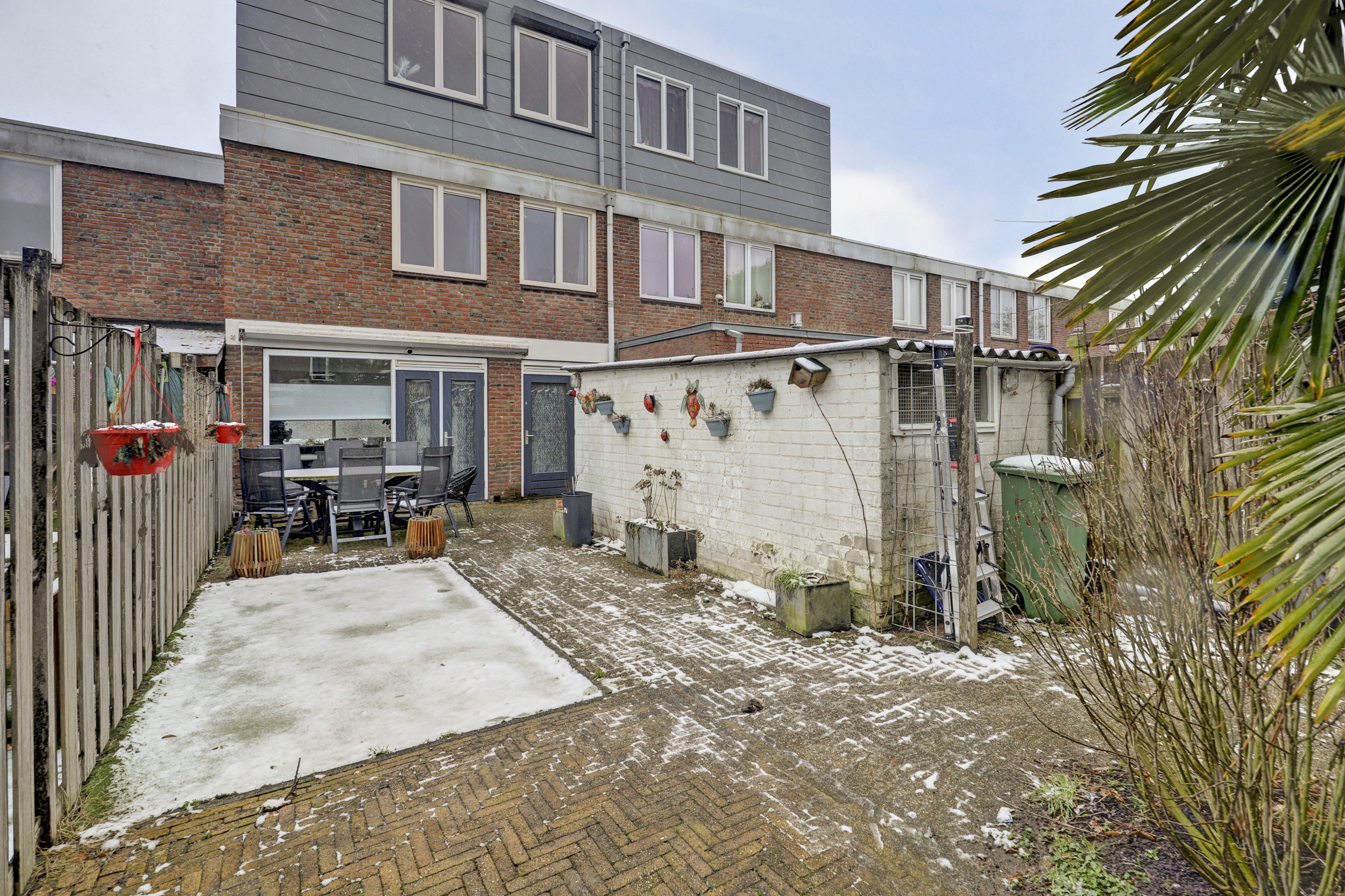 De achtertuin biedt voldoende ruimte om buiten te zitten en is praktisch ingericht. Tevens is een berging aanwezig voor fietsen en opslag.