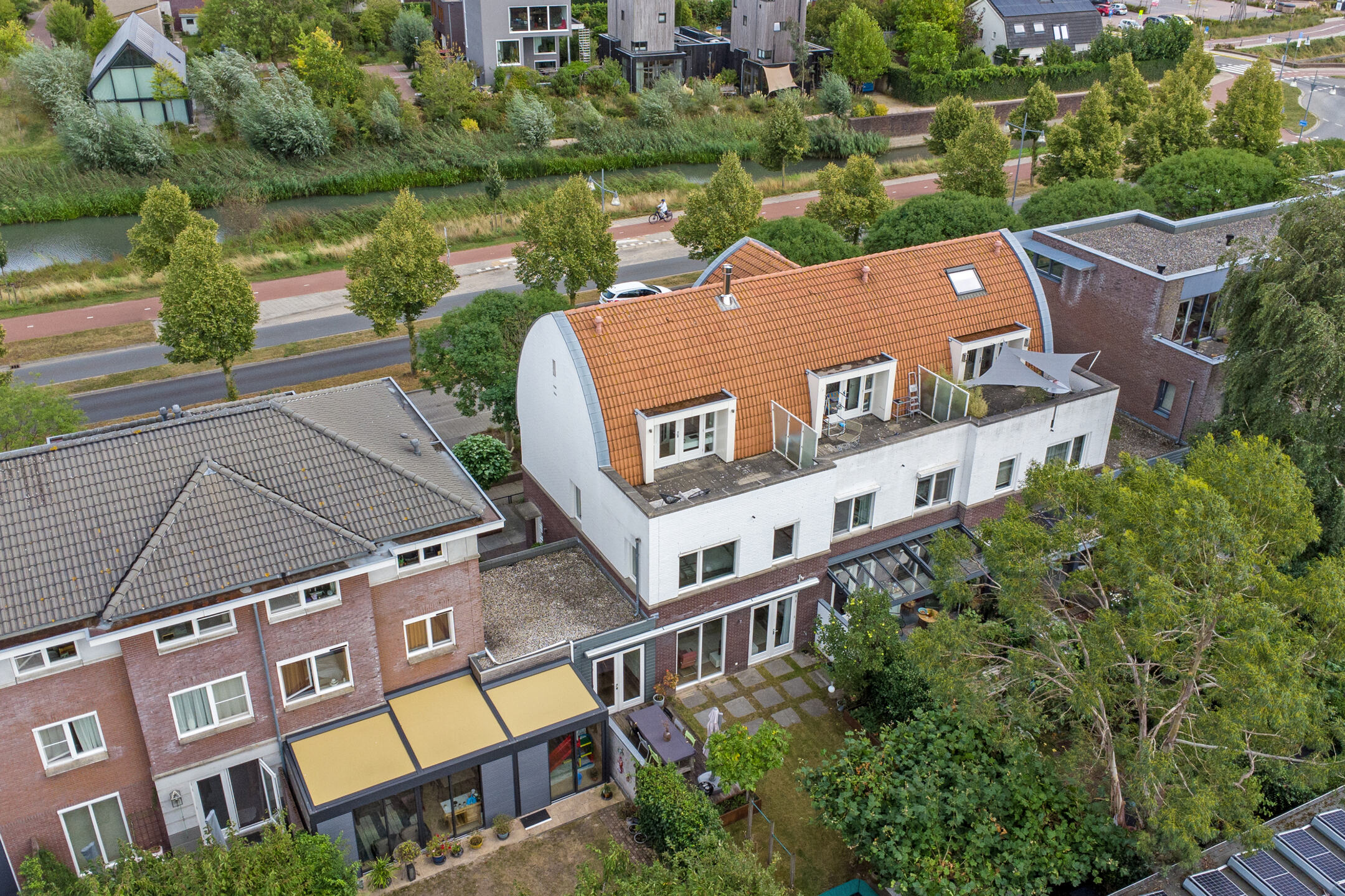 • Buitenruimte: voortuin, fraai aangelegde achtertuin en dakterras