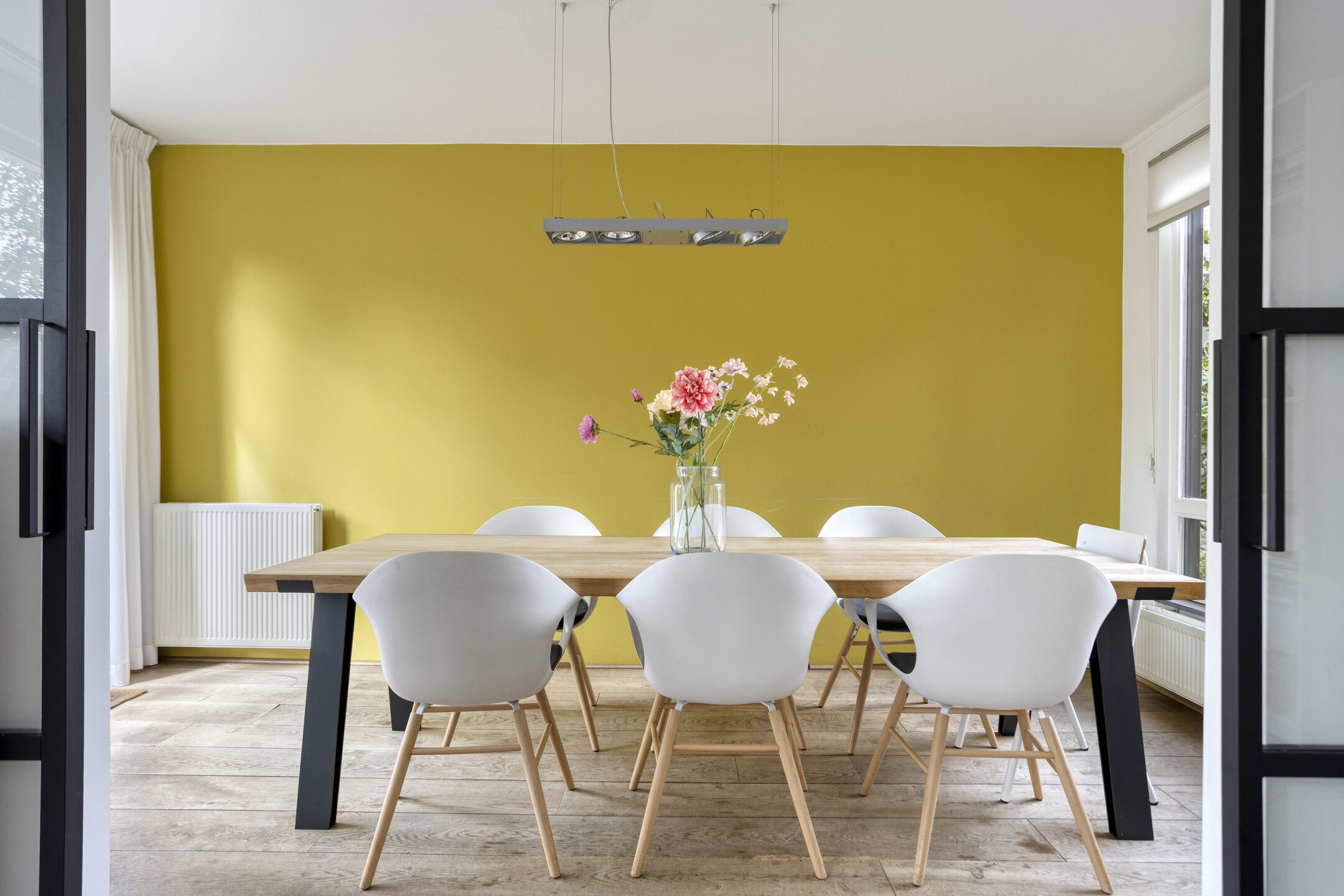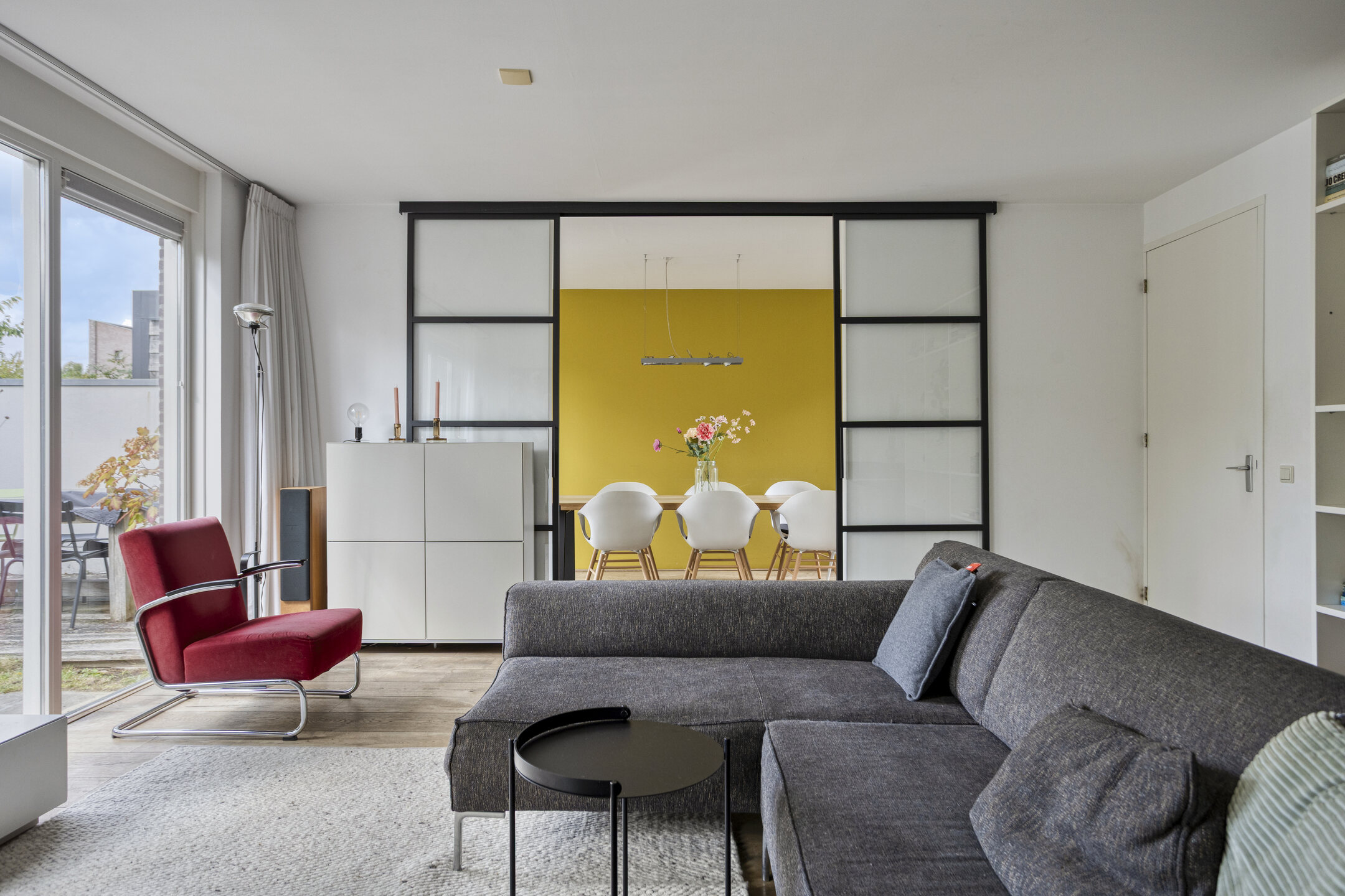 • Afsluitbare eetkamer met stalen schuifdeuren