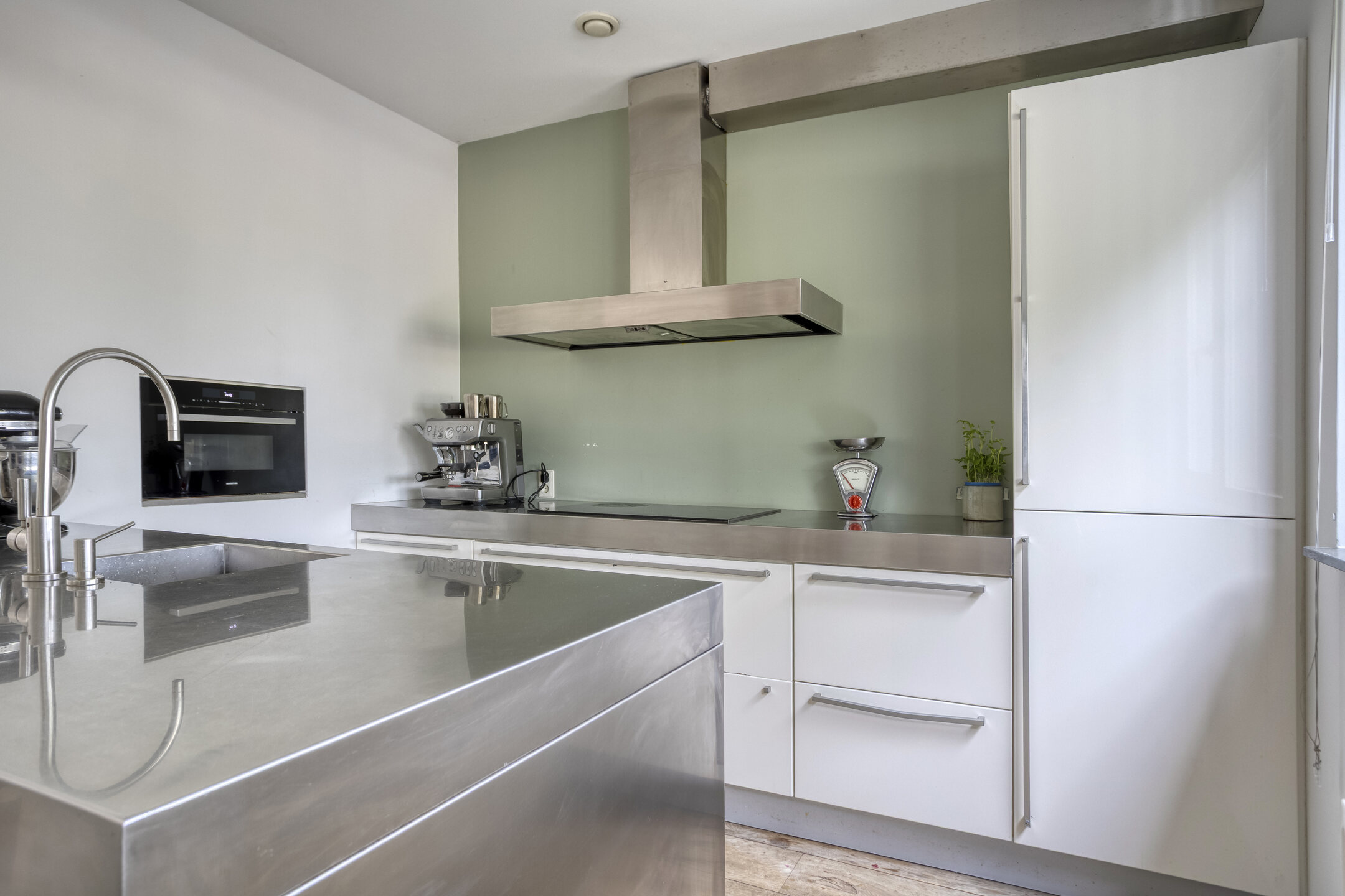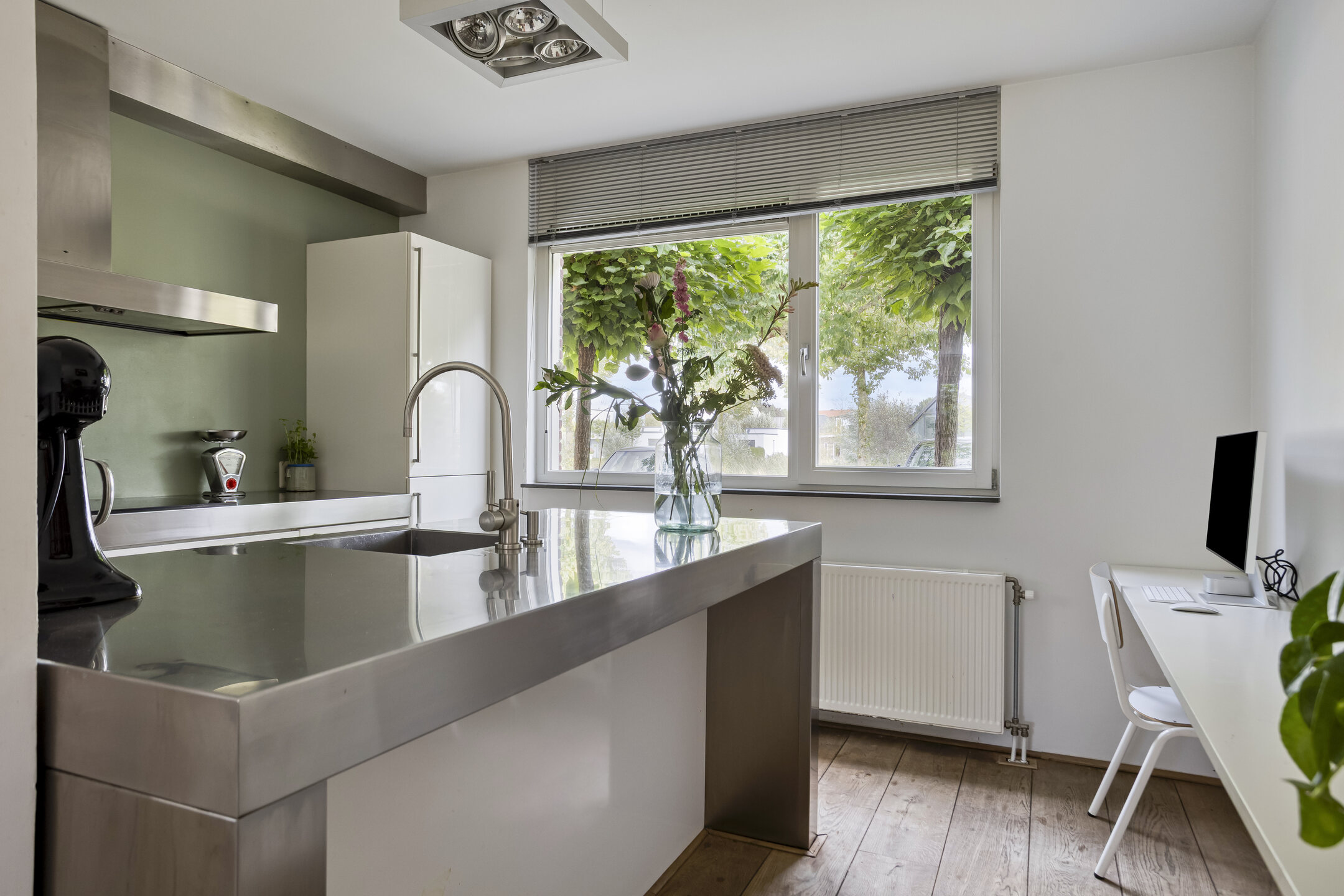 • Keuken aan de voorzijde met RVS spoeleiland en royaal werkblad
