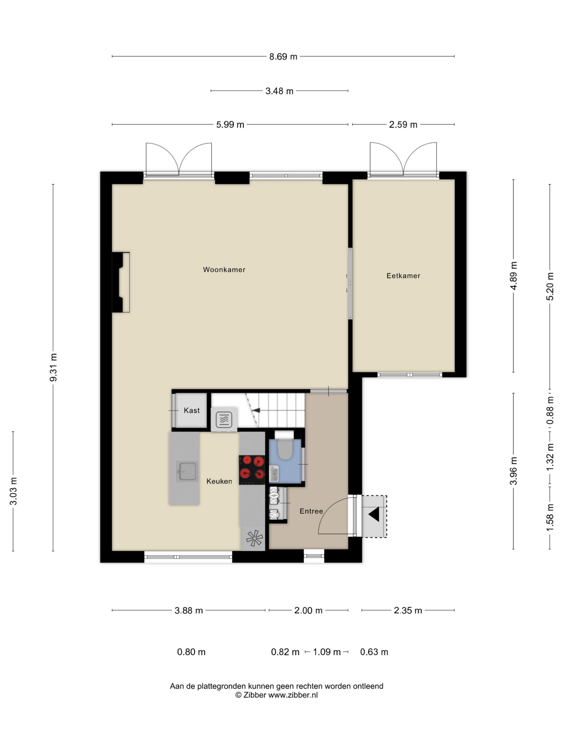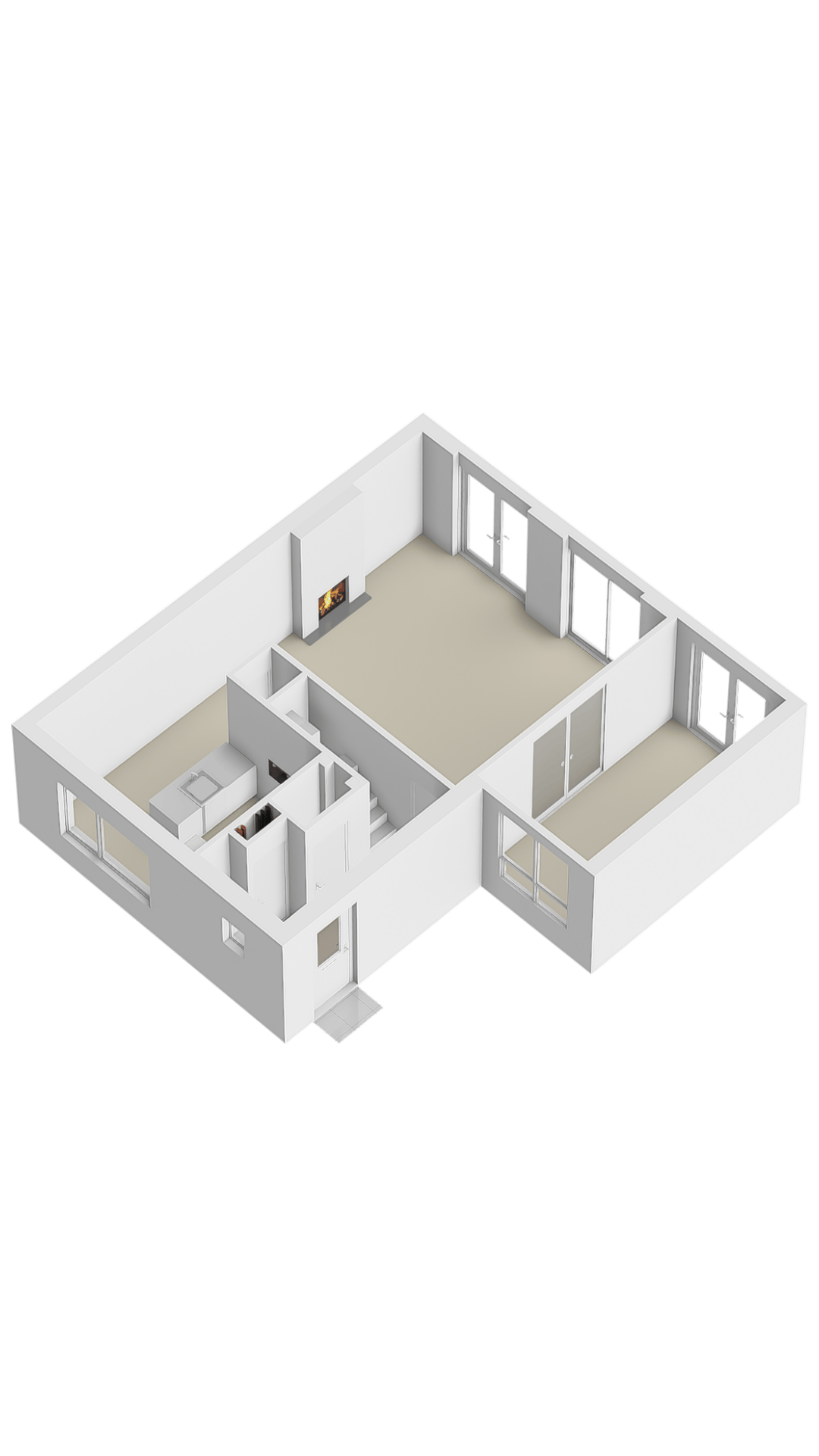 • Begane grond: houten binnenkozijnen met stompe deuren