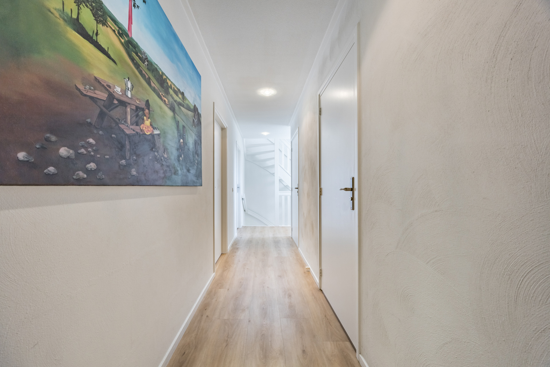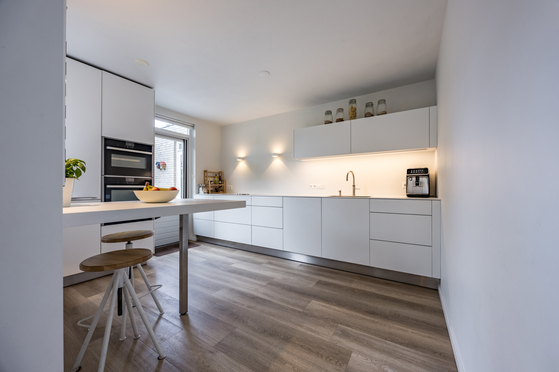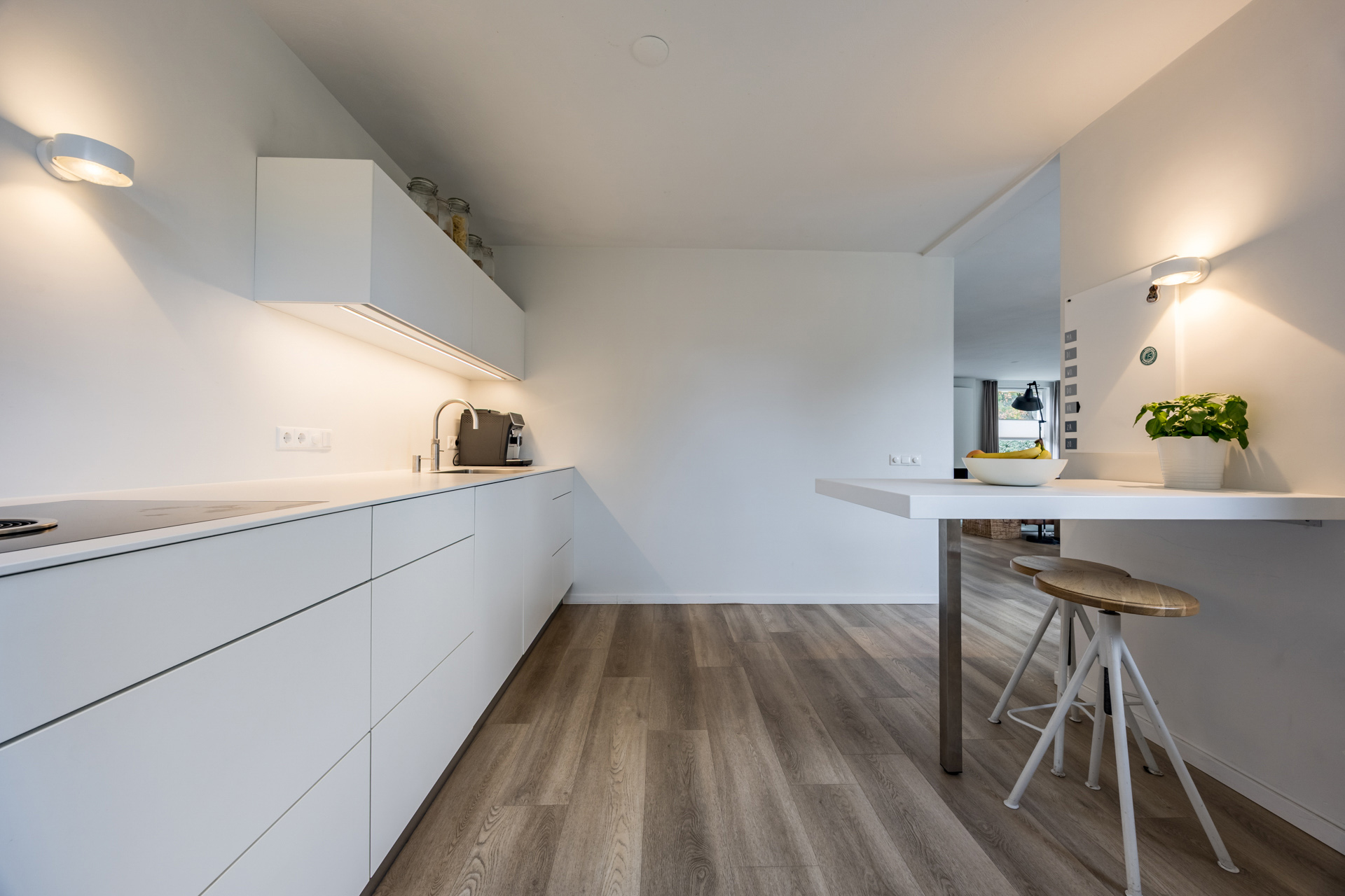 De begane grond is voorzien van een eigentijdse pvc-laminaatvloer met vloerverwarming (behalve de garage, toilet en bijkeuken).