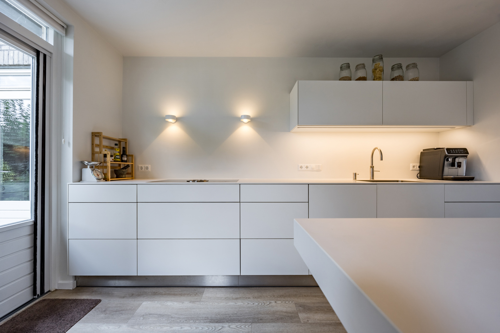 Verrassend grote woonkamer met veel raampartijen, een erker en schuifpui naar de achtertuin. Aansluitend de luxe open keuken (Bulthaup, 2018) met NEFF inbouwapparatuur (Bora inductiekookplaat met geïntegreerde afzuigkap, oven, combi-stoomoven, Quooker, koelkast, vaatwasser). De bijkeuken is vanuit de garage te bereiken en heeft een aanrechtblok, witgoedvoorzieningen, bergruimte en deur naar de achtertuin.
