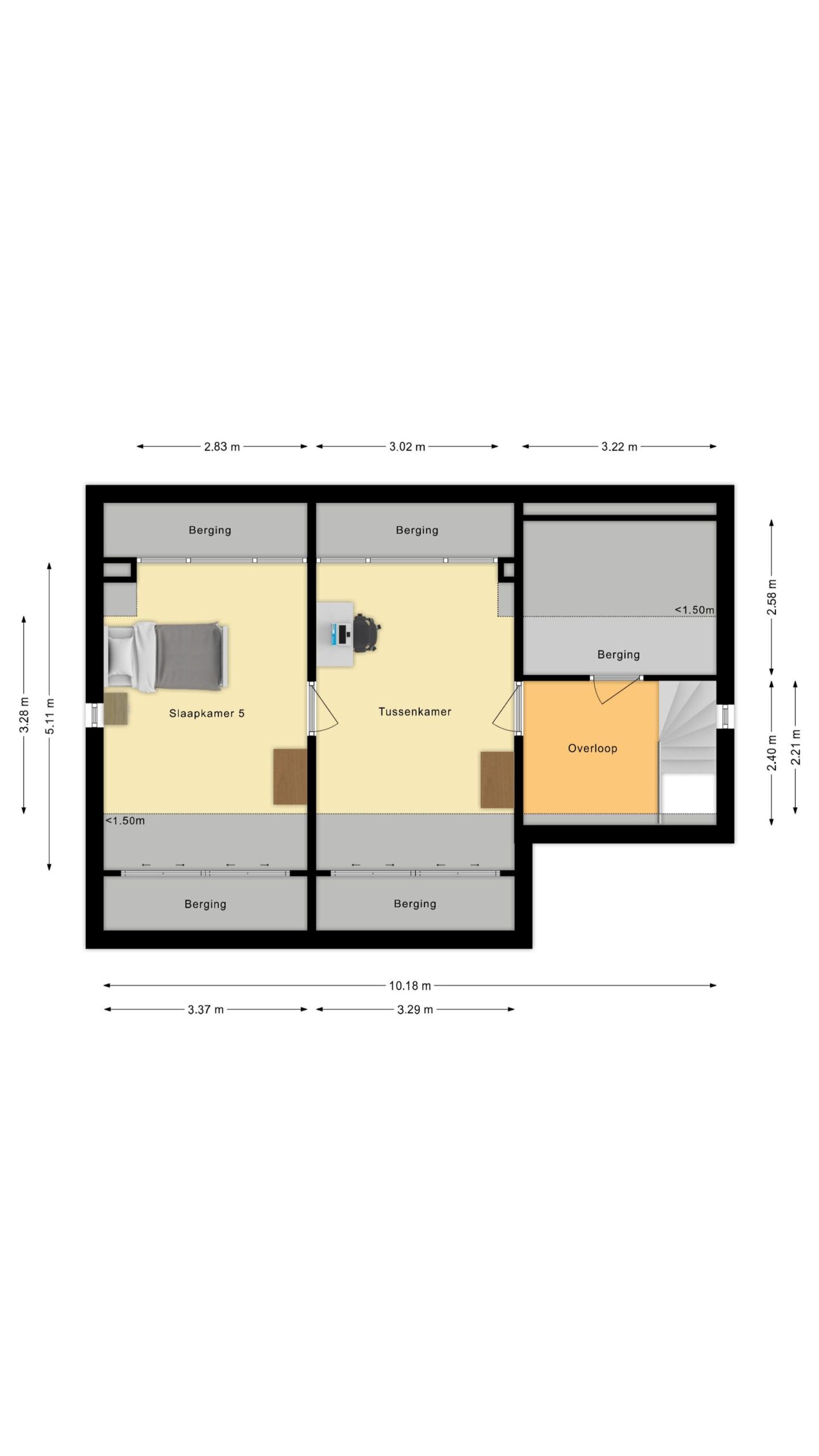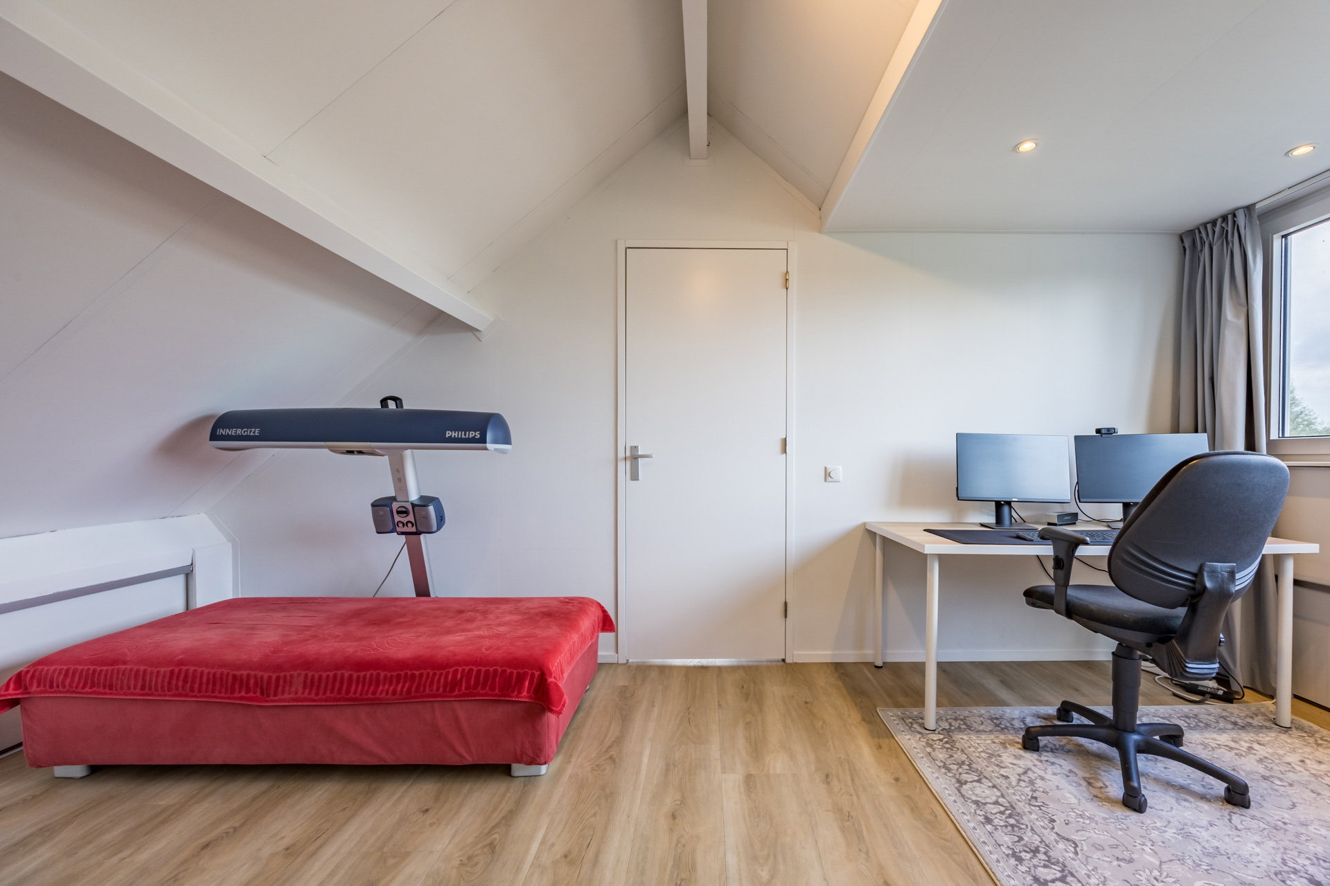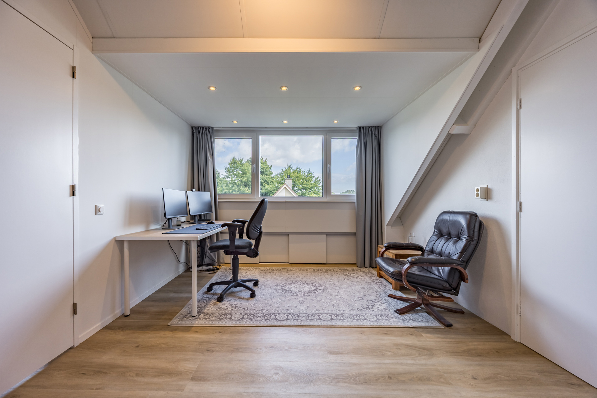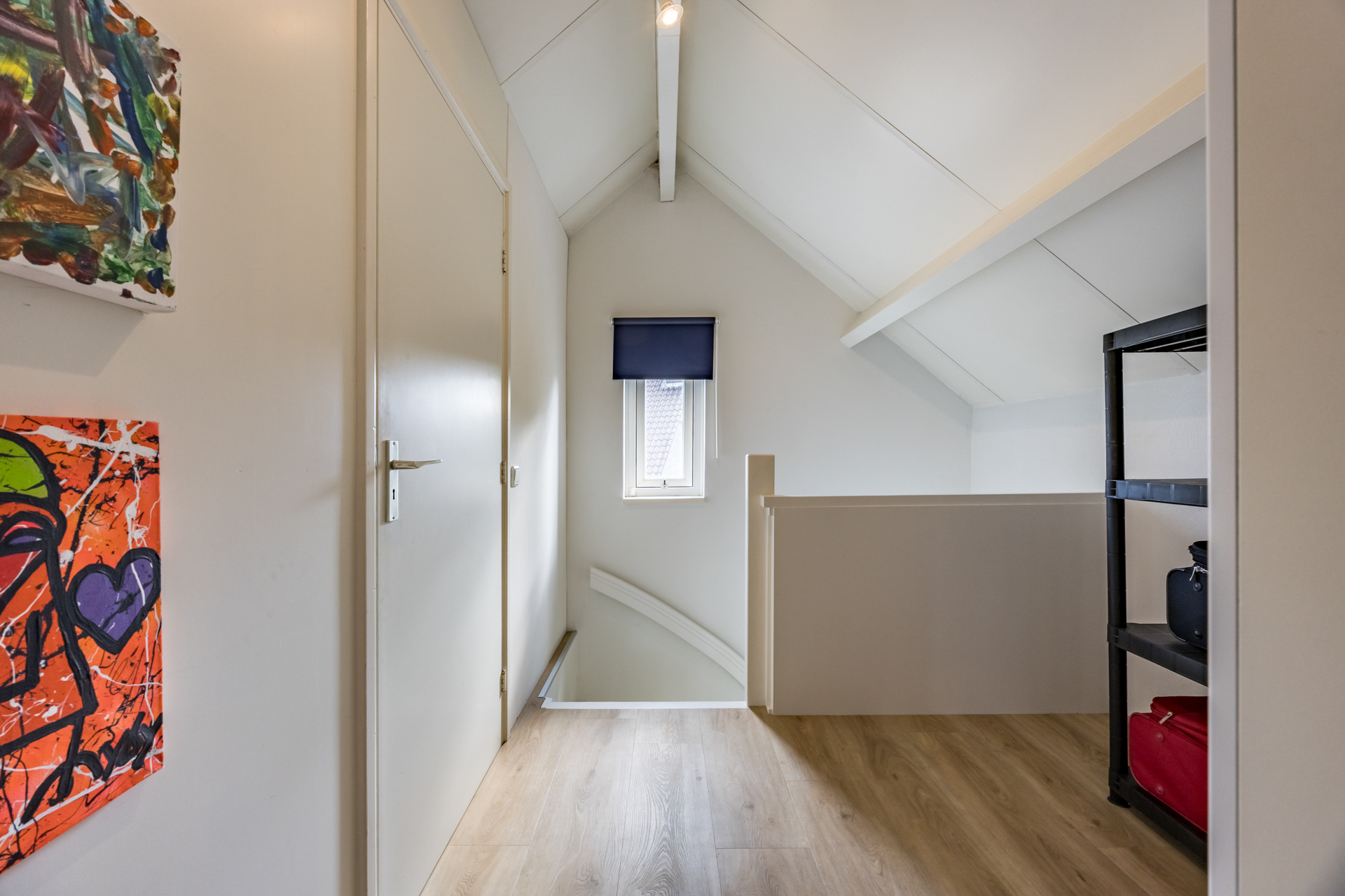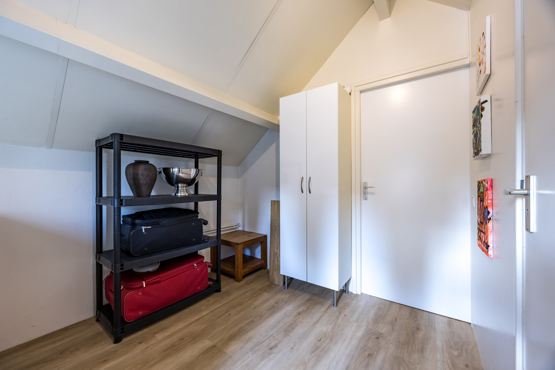 Voorzolder met berging en plek voor een werkhoek. Deze verdieping is in 2023 verbouwd.