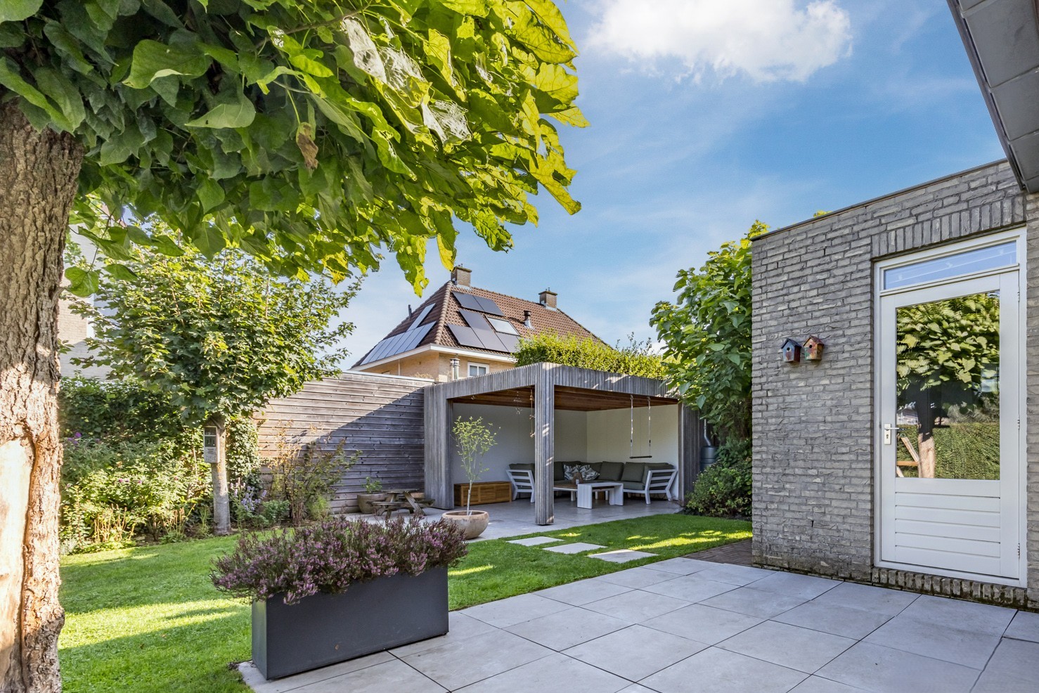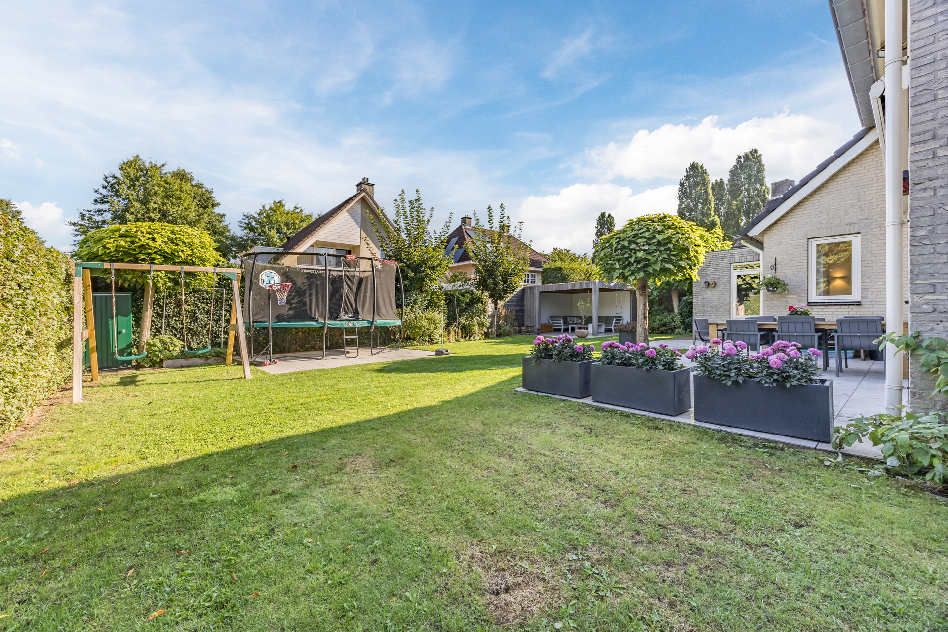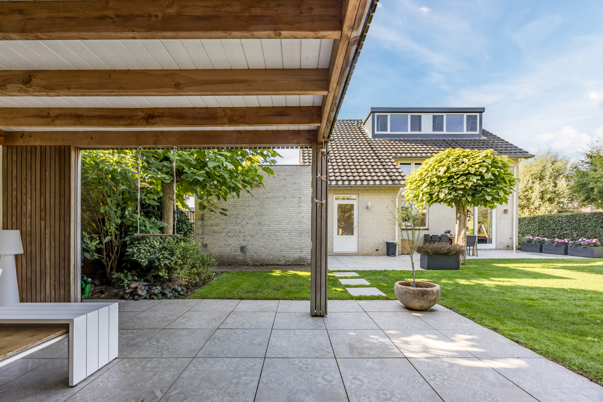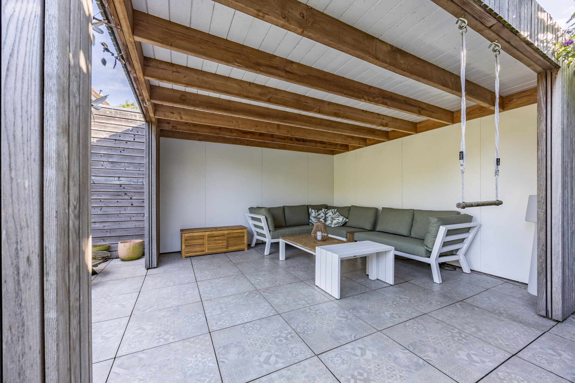 Achtertuin op het noorden maar met goede bezonning en optimale privacy in de zomermaanden. Er is volop ruimte om te spelen maar ook om te genieten van de zon of lekker in de schaduw te zitten. Dat kan op de terrassen of onder de fraaie overkapping van Sfeervol Buitenleven die in 2020 geplaatst is.