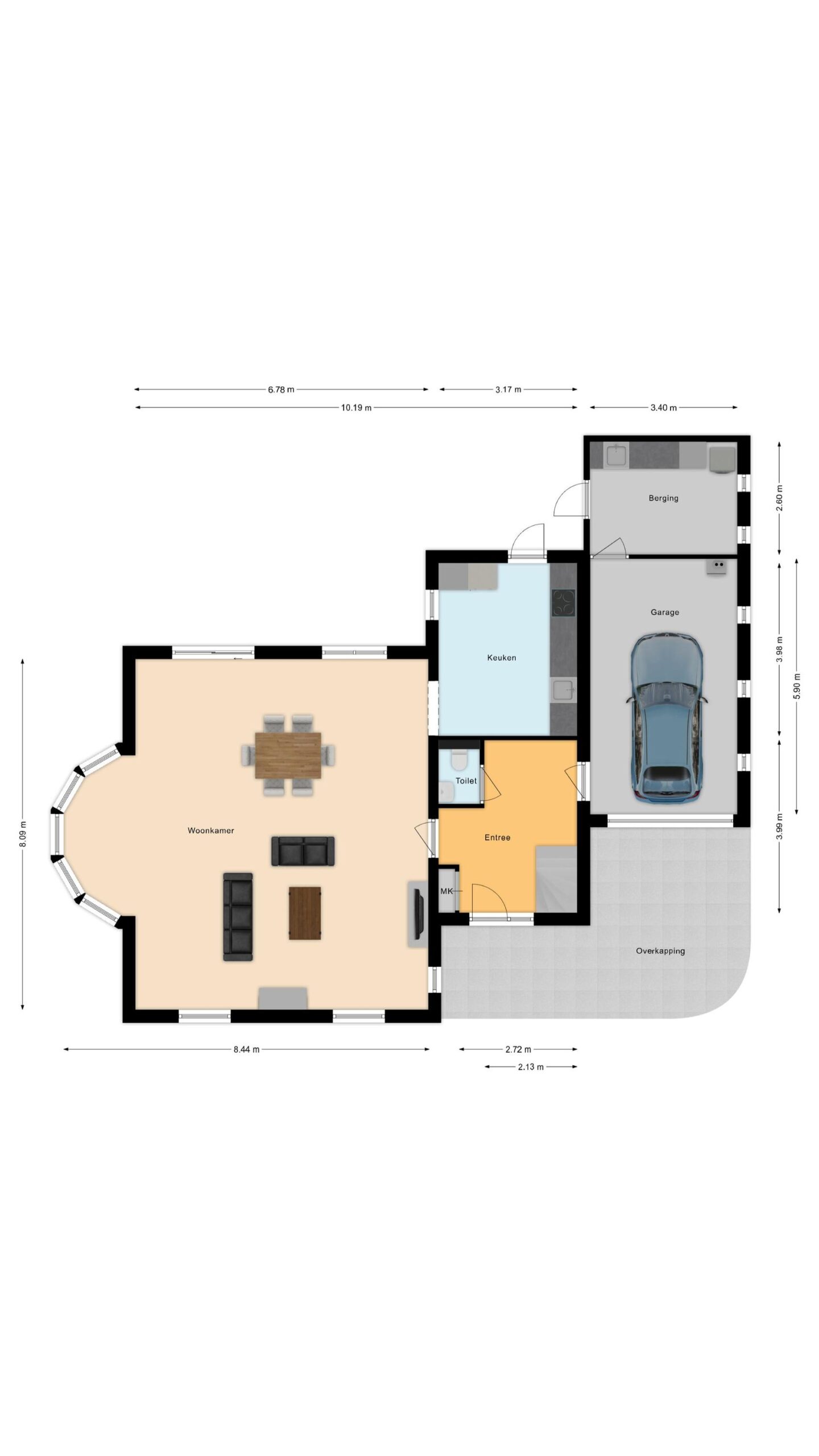 De inpandige garage is voorzien van een automatische sectionaal-deur.