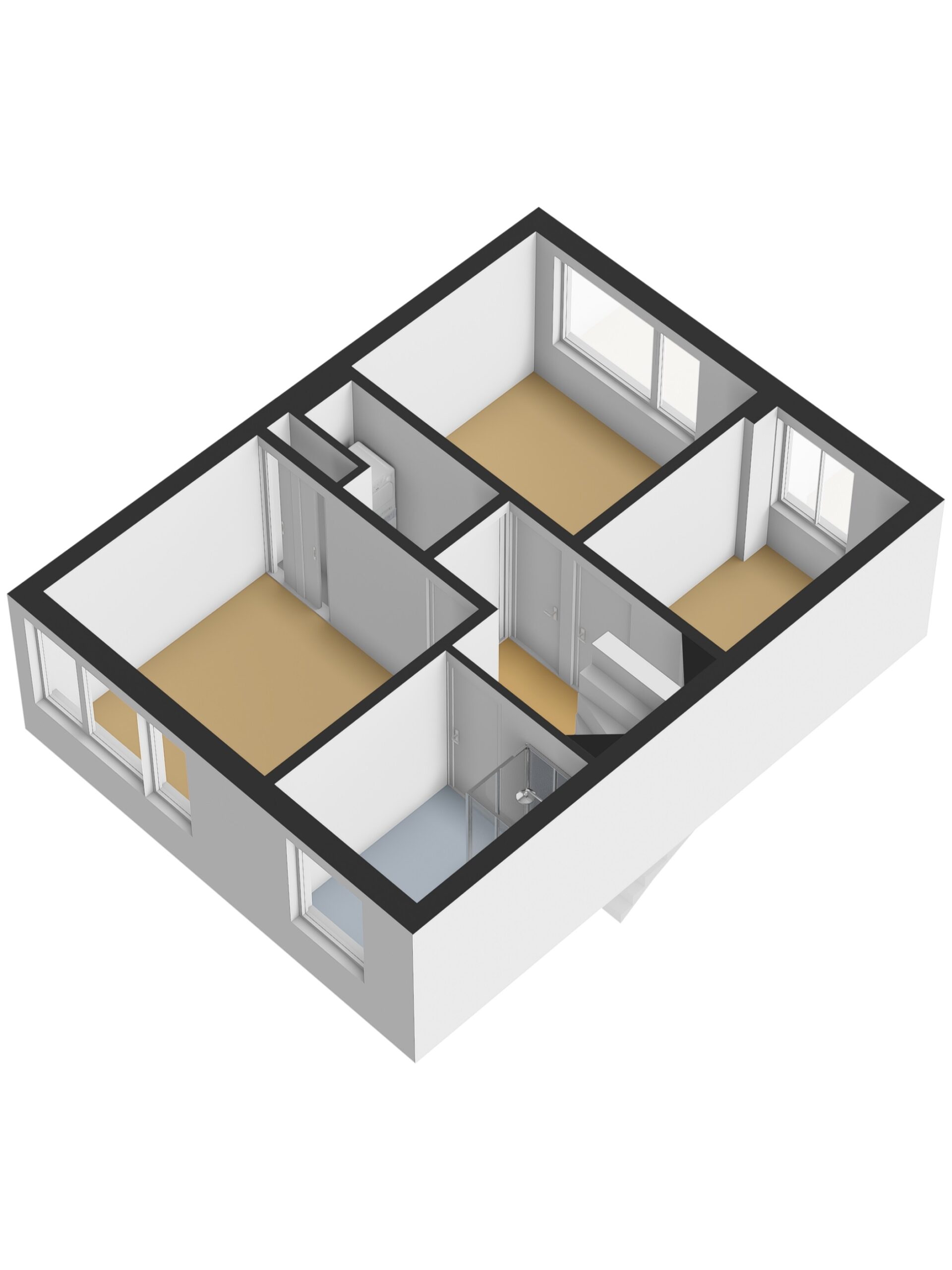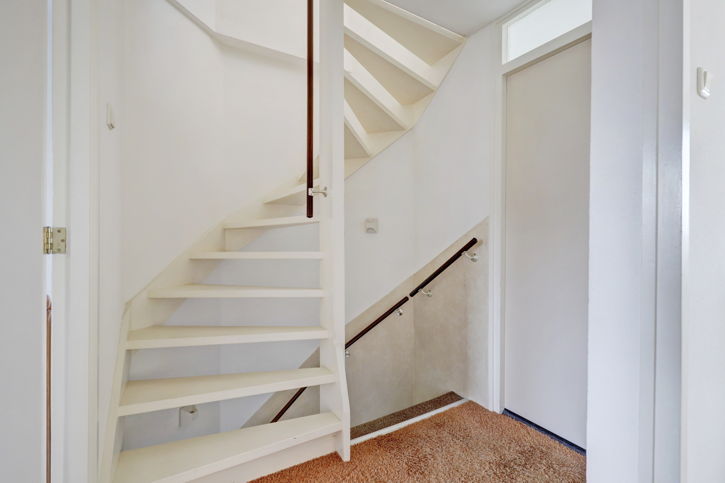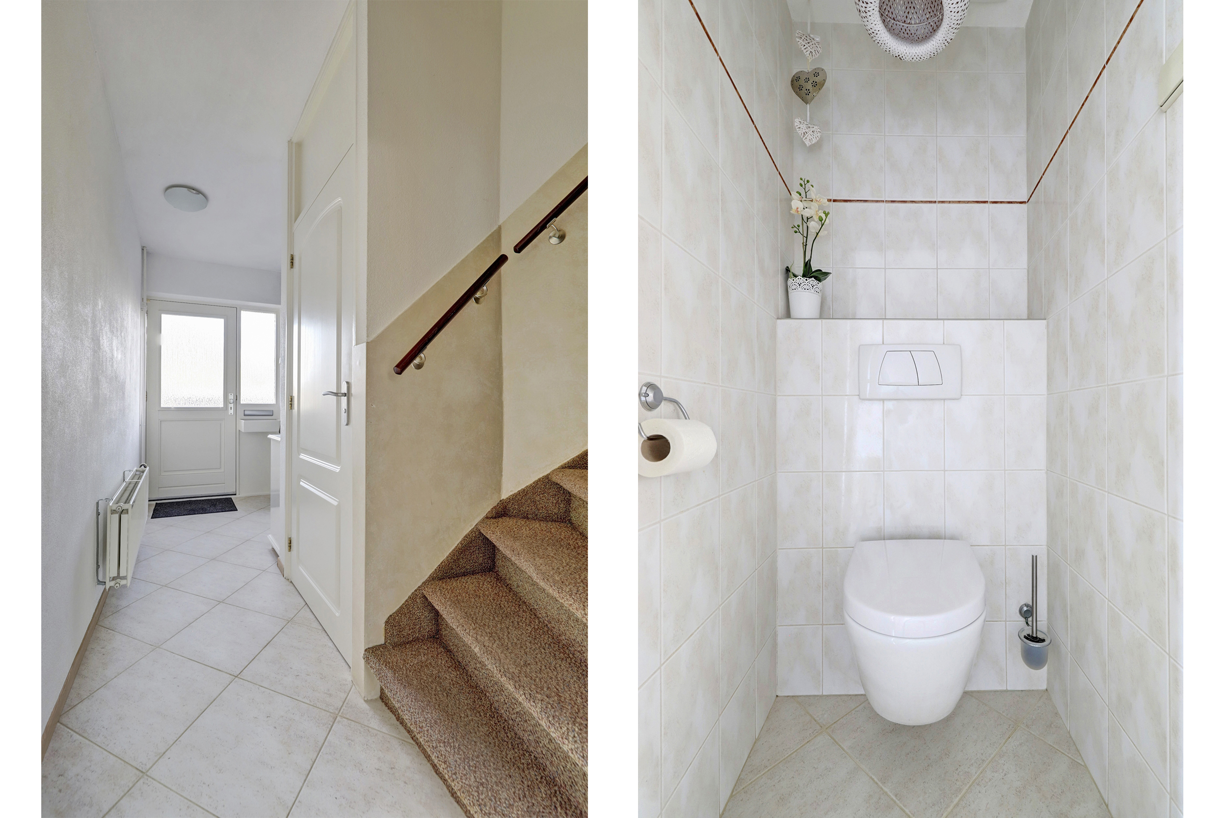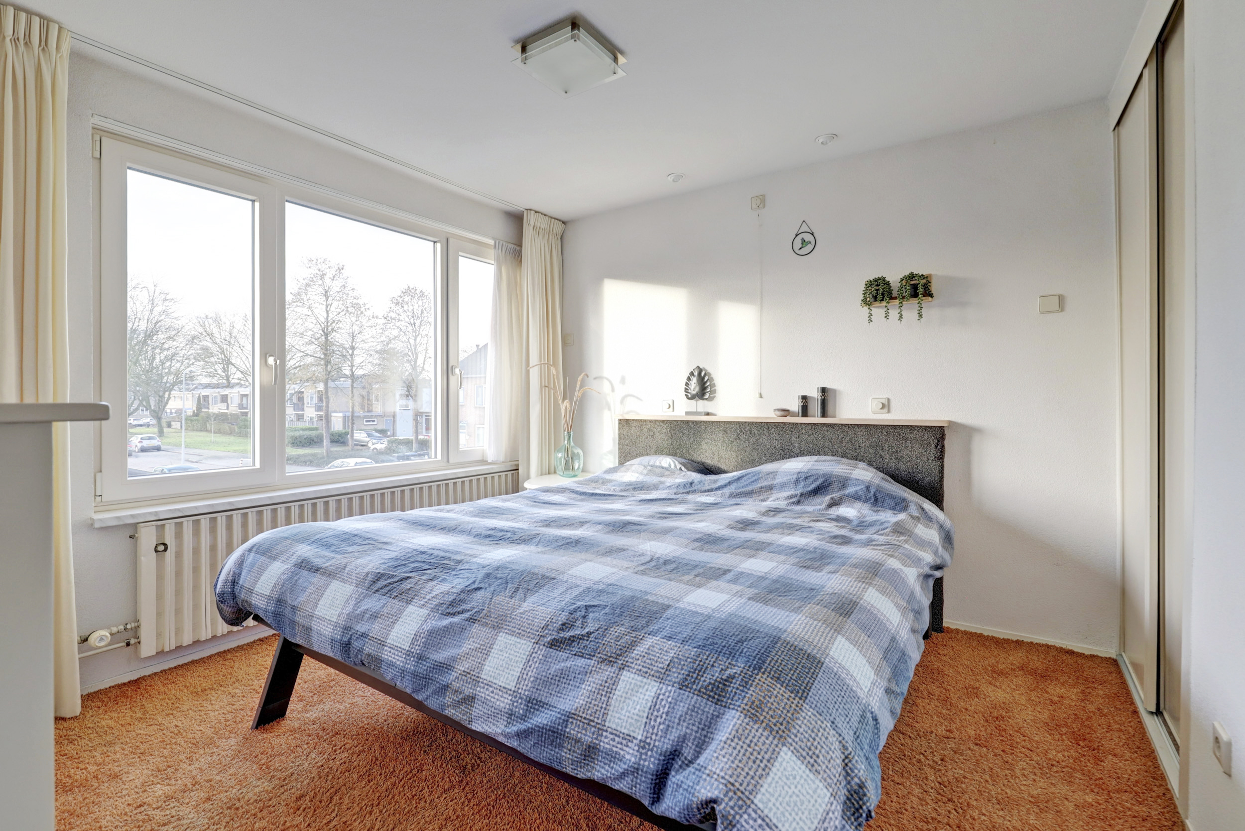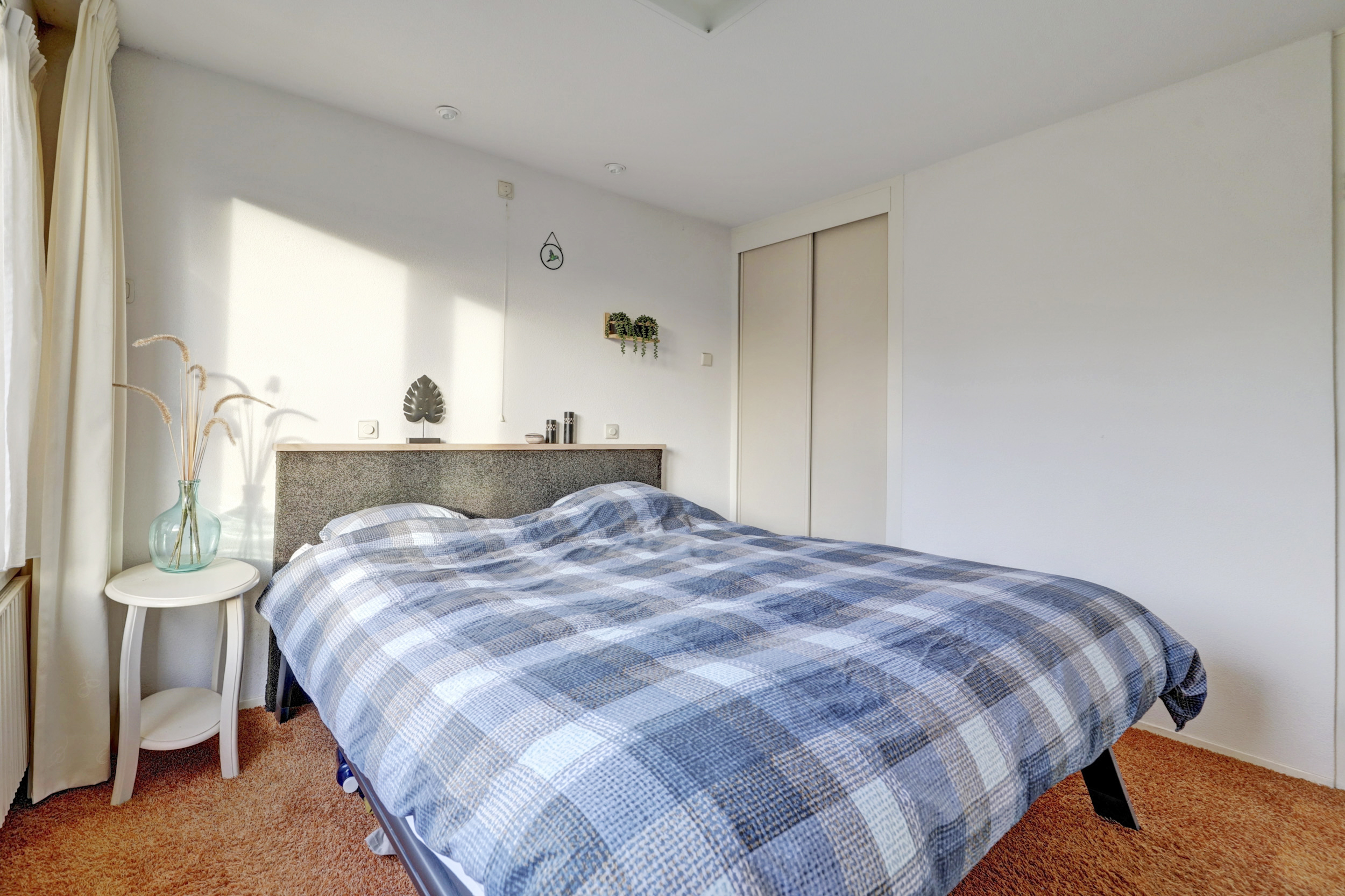 Overloop met vloerbedekking, toegang tot de 3 slaapkamers, de wasruimte, de badkamer en de vaste trapopgang naar de 2de verdieping. De 3 slaapkamers zijn voorzien van vloerbedekking en elektrische rolluiken. De grootste slaapkamer is tevens voorzien van kunststof draaikiepramen, schuifkastenwand en spotjes. De badkamer is voorzien van douchecabine met hand- en regendouche, wastafel, wandcloset, kast, elektrische vloerverwarming, geheel betegeld in lichte kleur en kunststof draaikiepraam met elektrisch rolluik. Praktische separate wasruimte met aansluitingen voor de wasmachine en droger, wasbak (koud- en warmwater) en geheel betegeld.