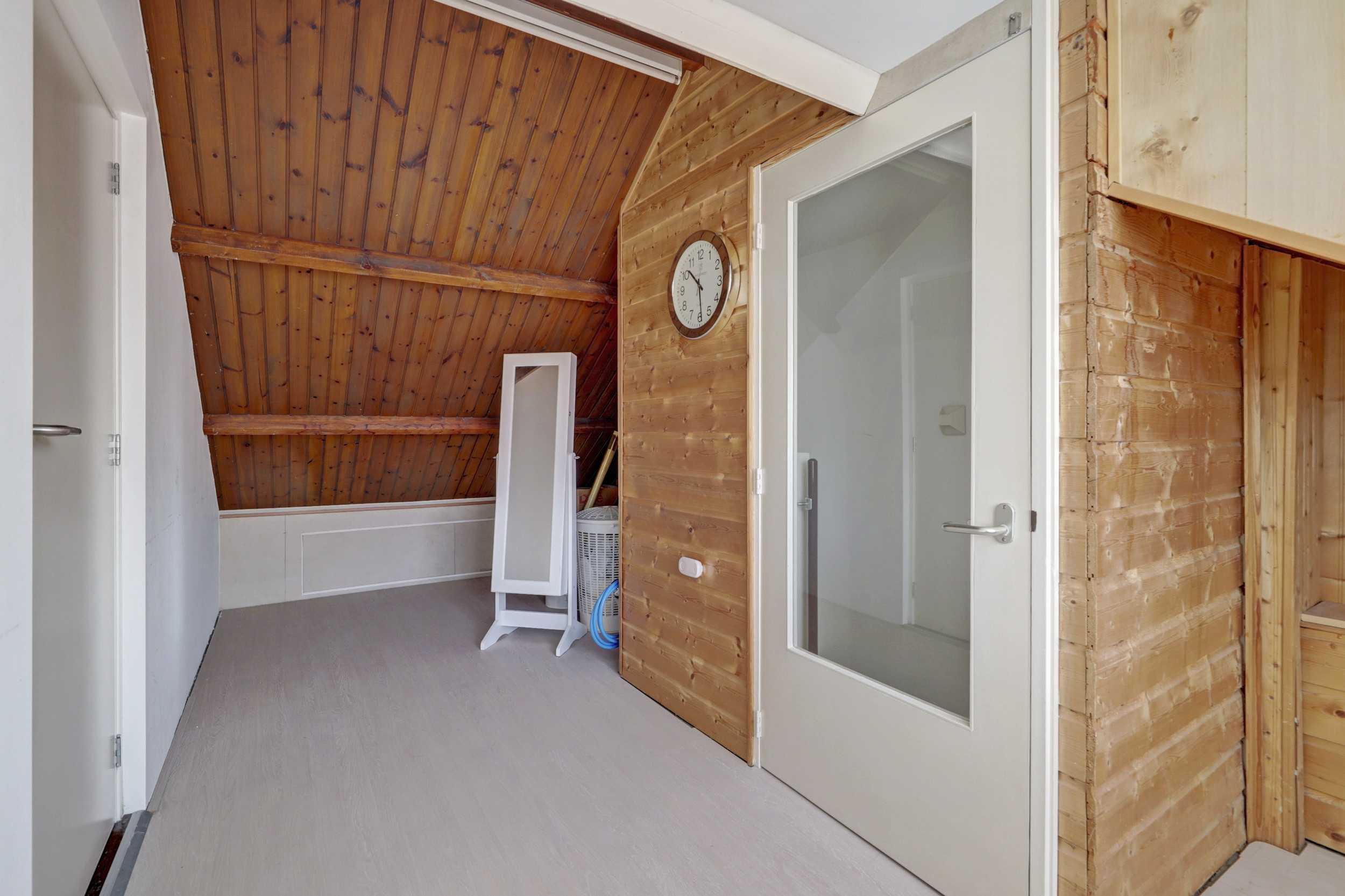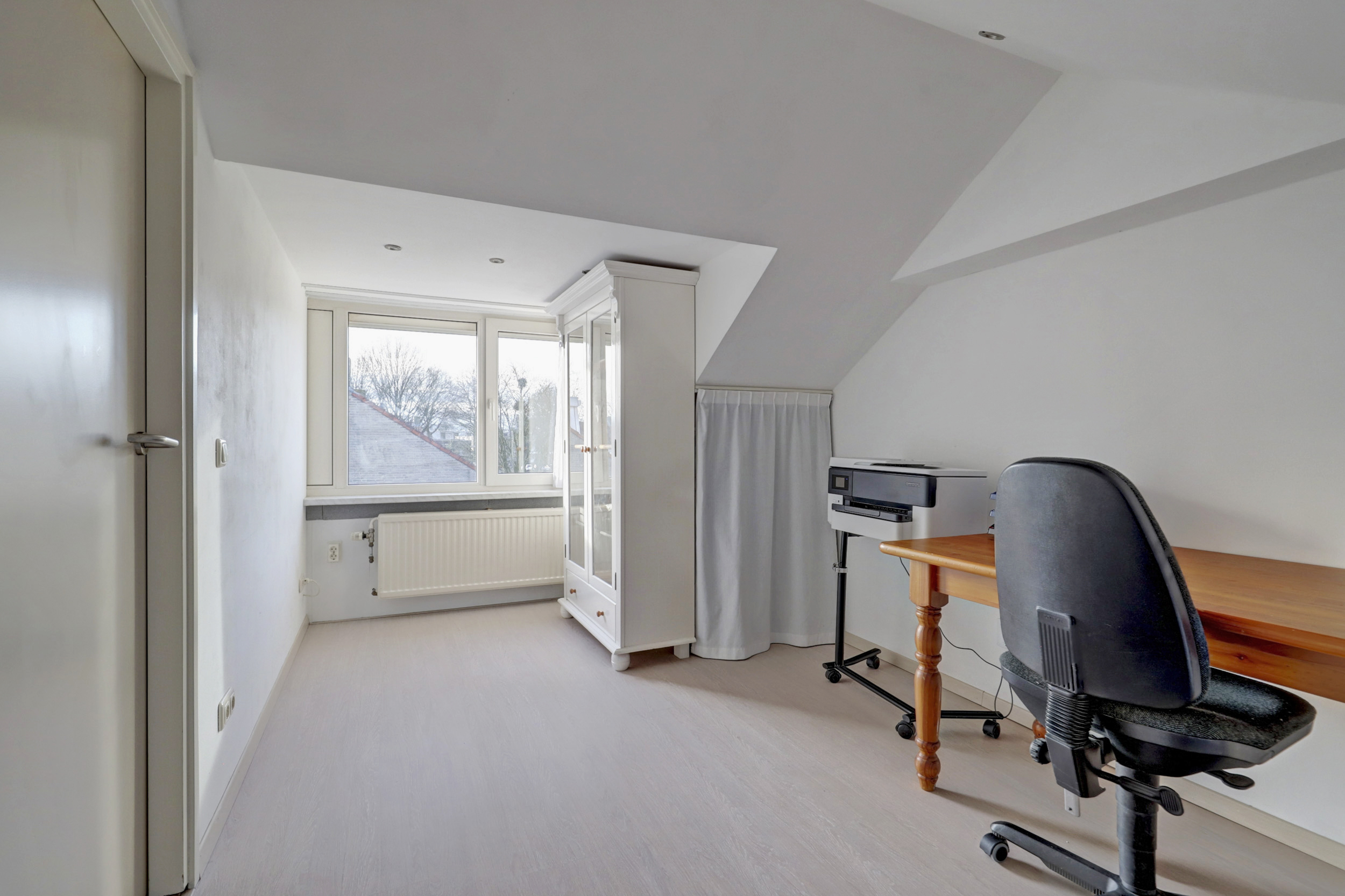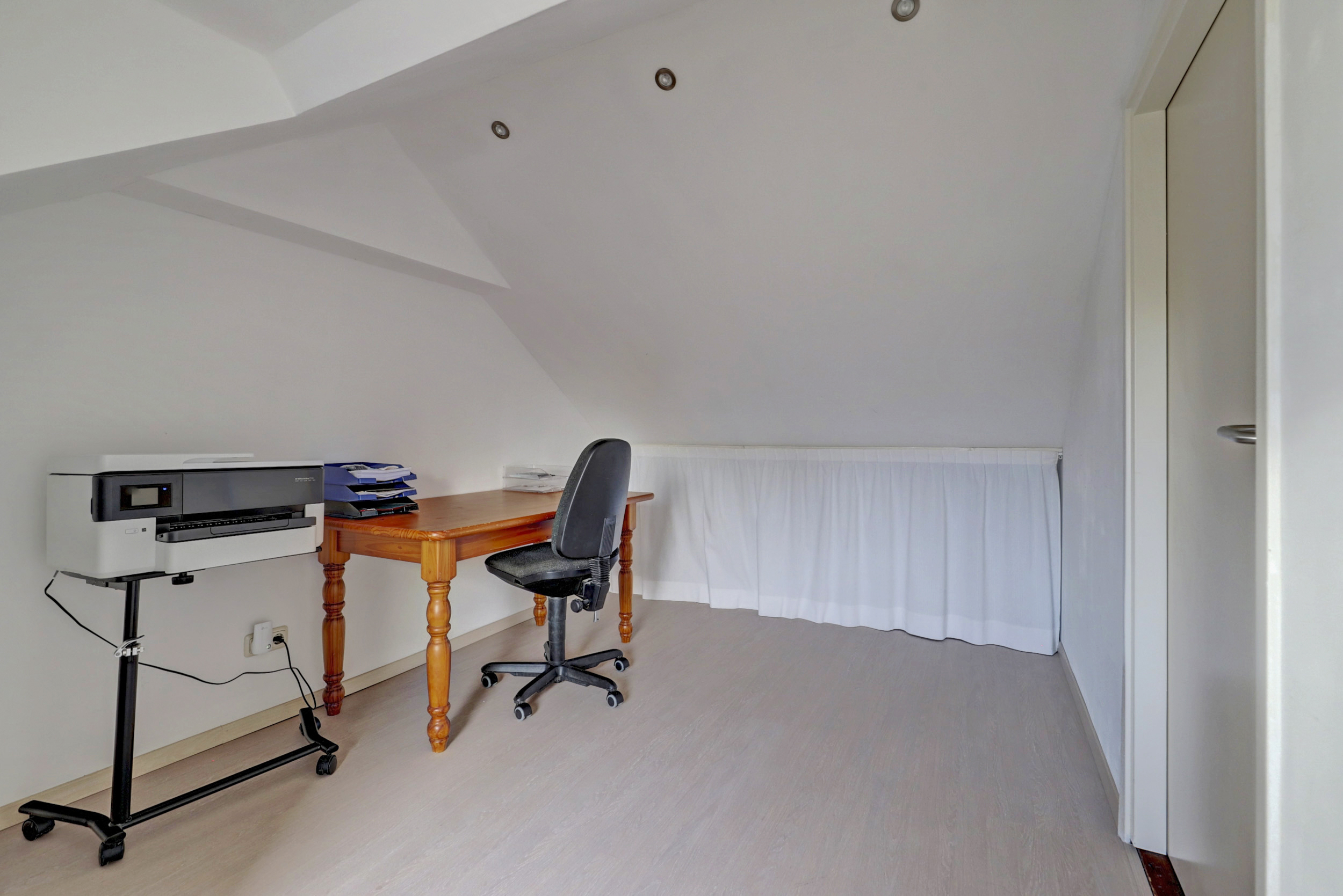 Via de vaste trap kom je op de voorzolder met dakkapel aan de achterzijde, kunststof draaikiepramen met elektrische rolluiken en geeft toegang tot de 4de slaapkamer. De voorzolder is geschikt om bijvoorbeeld een extra werkplek te maken. De slaapkamer heeft tevens een dakkapel, laminaatvloer en opstelplaats voor de Cv-ketel (Vaillant,)