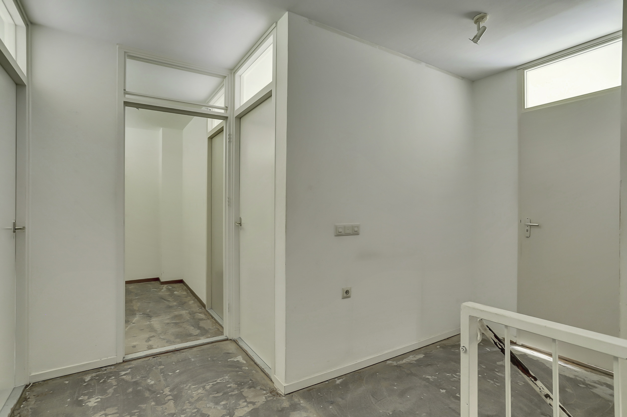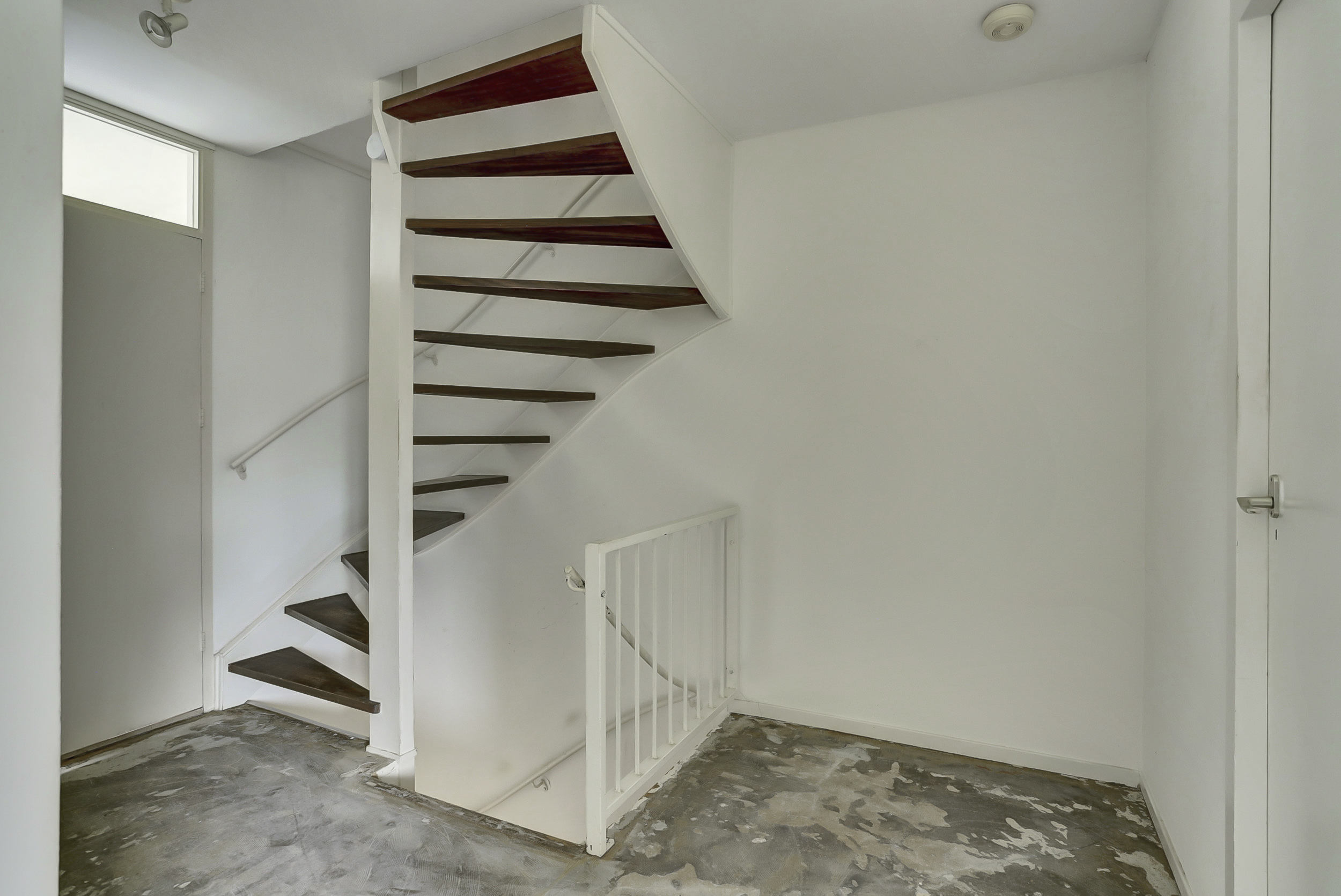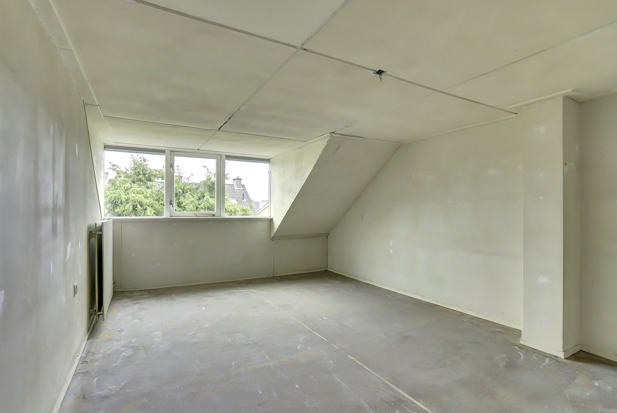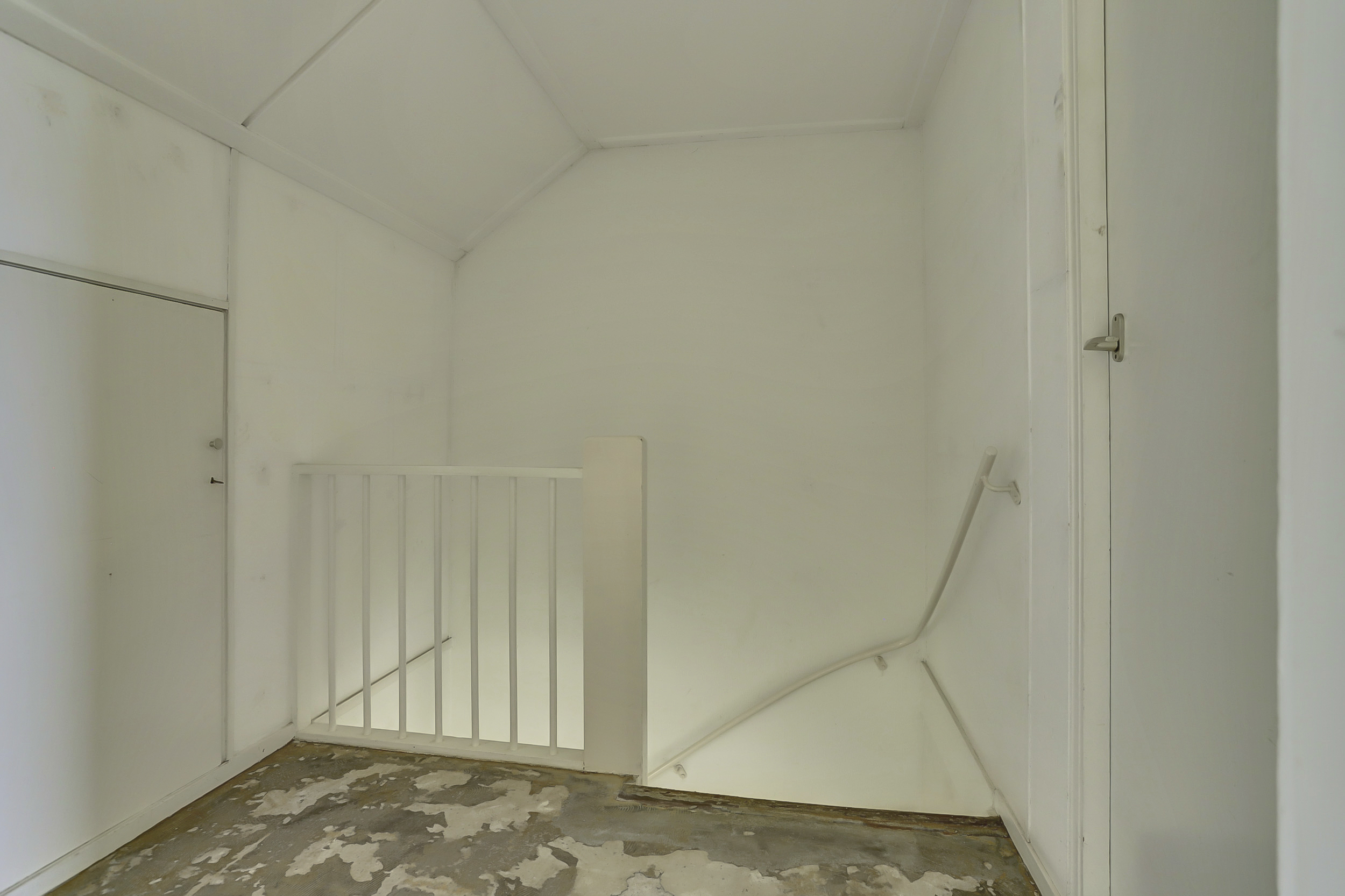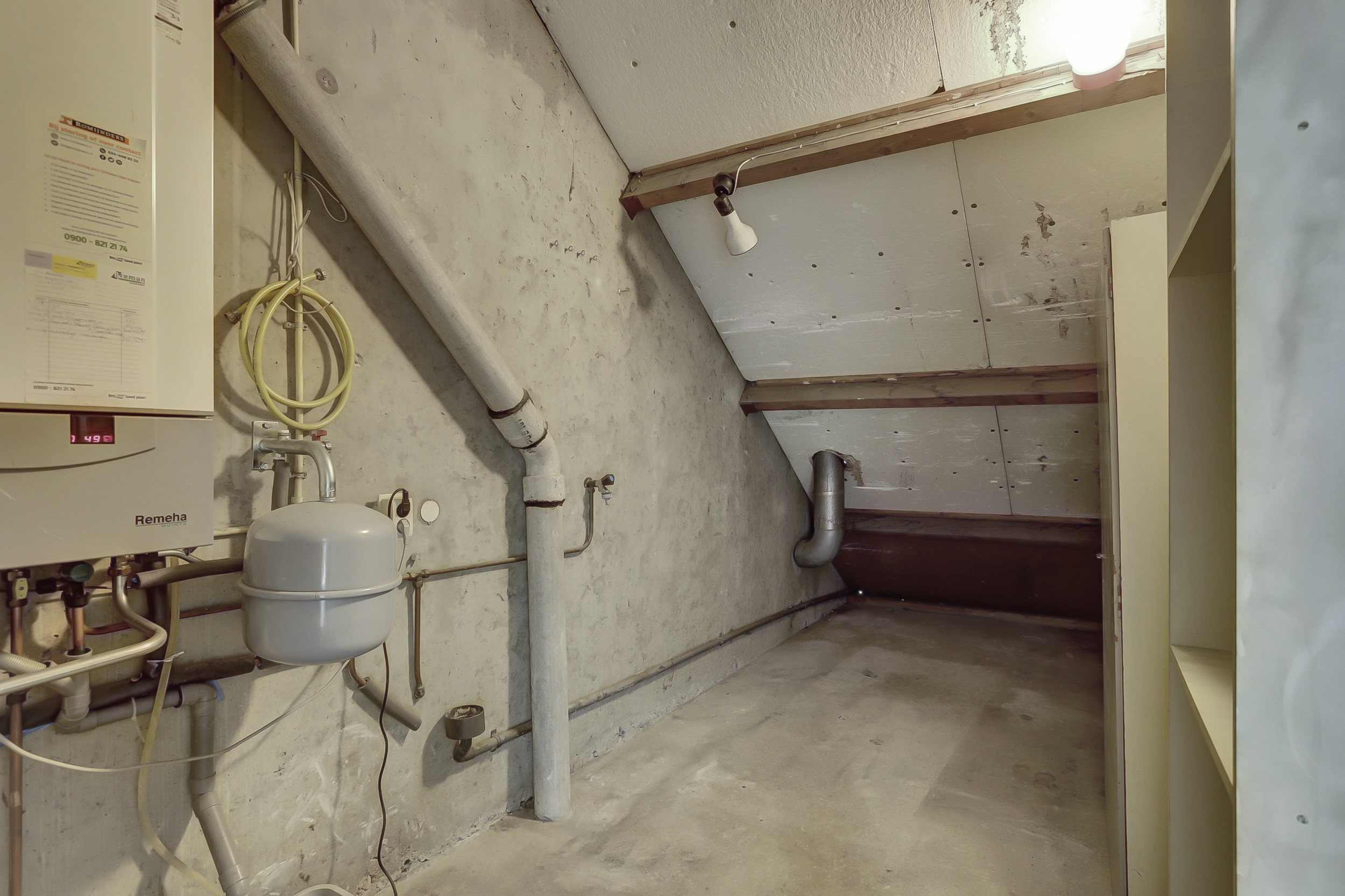 De riante woonkamer is bijzonder licht door de grote raampartijen. De half open keuken zonder inbouwapparatuur is eenvoudig. De achtertuin is gelegen op het zuidoosten en is voorzien van een vrijstaande stenen berging met elektra en achterom. Op de eerste verdieping zijn drie volwaardige slaapkamers te vinden, waarvan één slaapkamer met wastafel. De eenvoudige badkamer is uitgerust met een wastafel, toilet en ligbad met douche. Tussen twee slaapkamers in vinden we een ruime inloopkast. Middels een vaste trap is de zolderverdieping te bereiken. Daar tref je een riante slaapkamer met dakkapel en uiteraard veel bergruimte achter de knieschotten. In een aparte ruimte bevindt zich de cv-ketel (Remeha 2008) en mechanische ventilatie-unit.