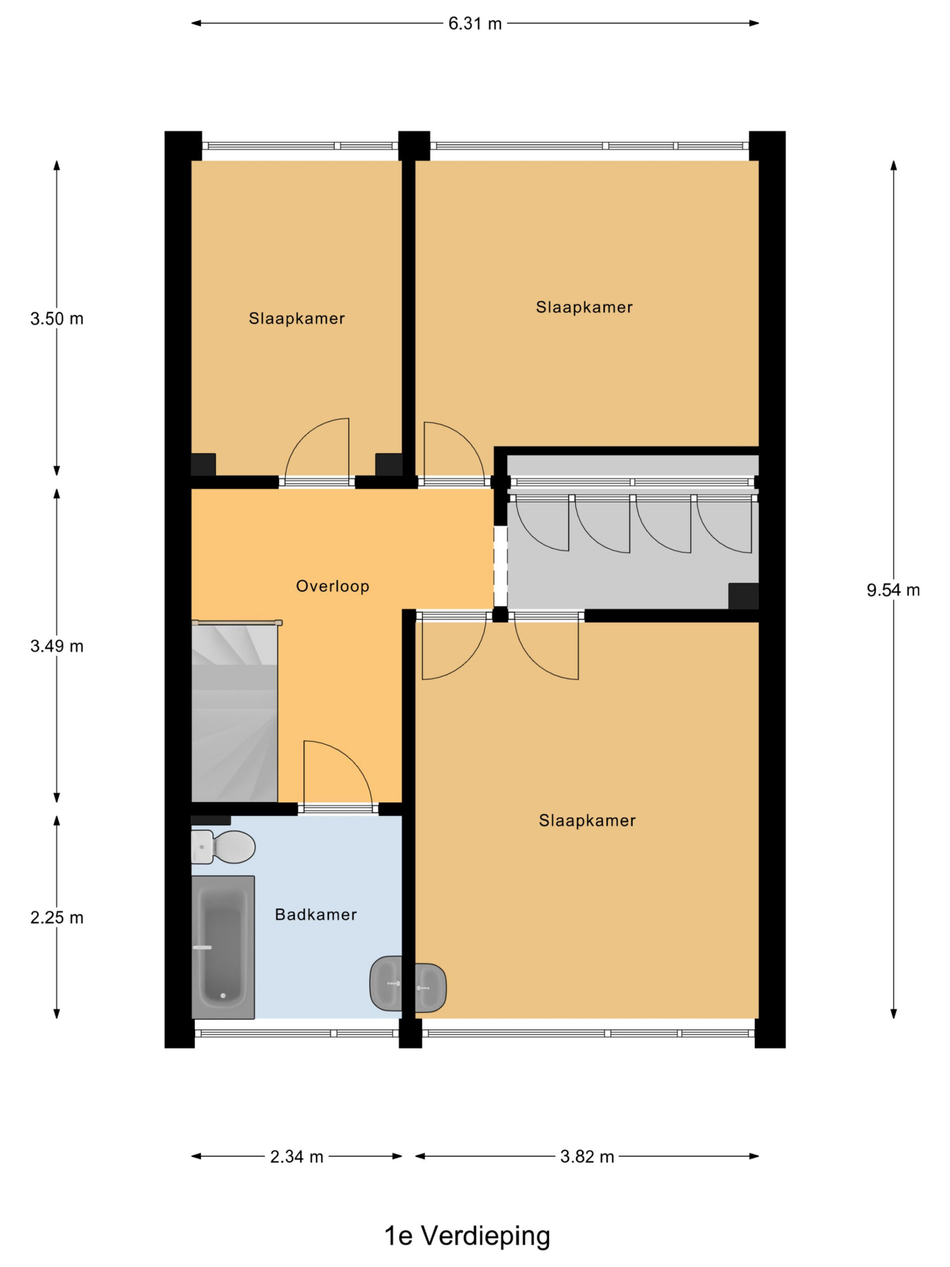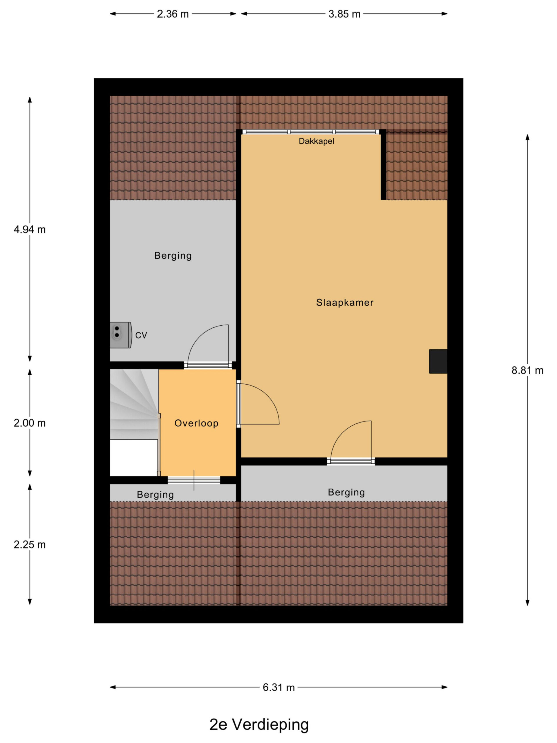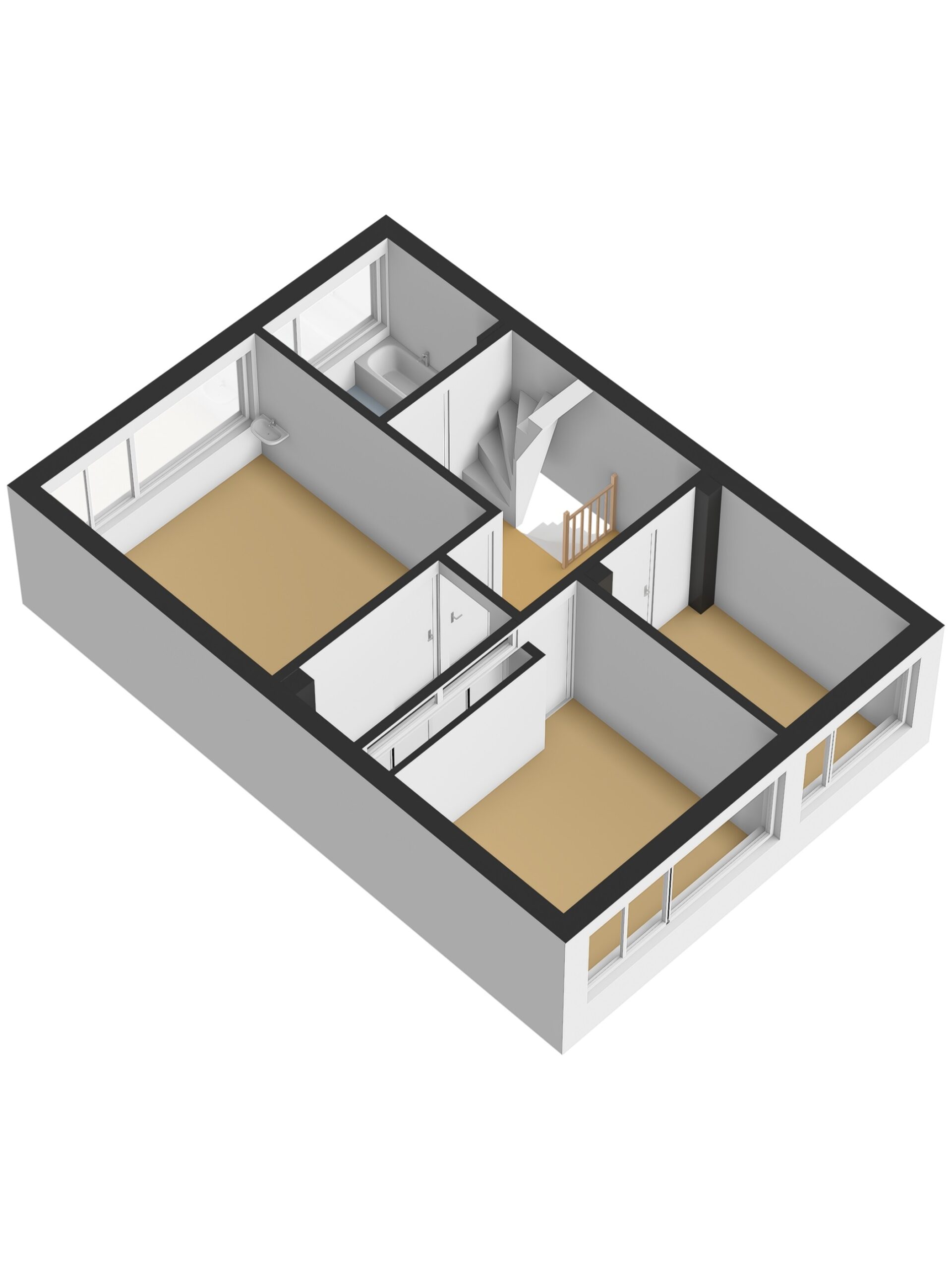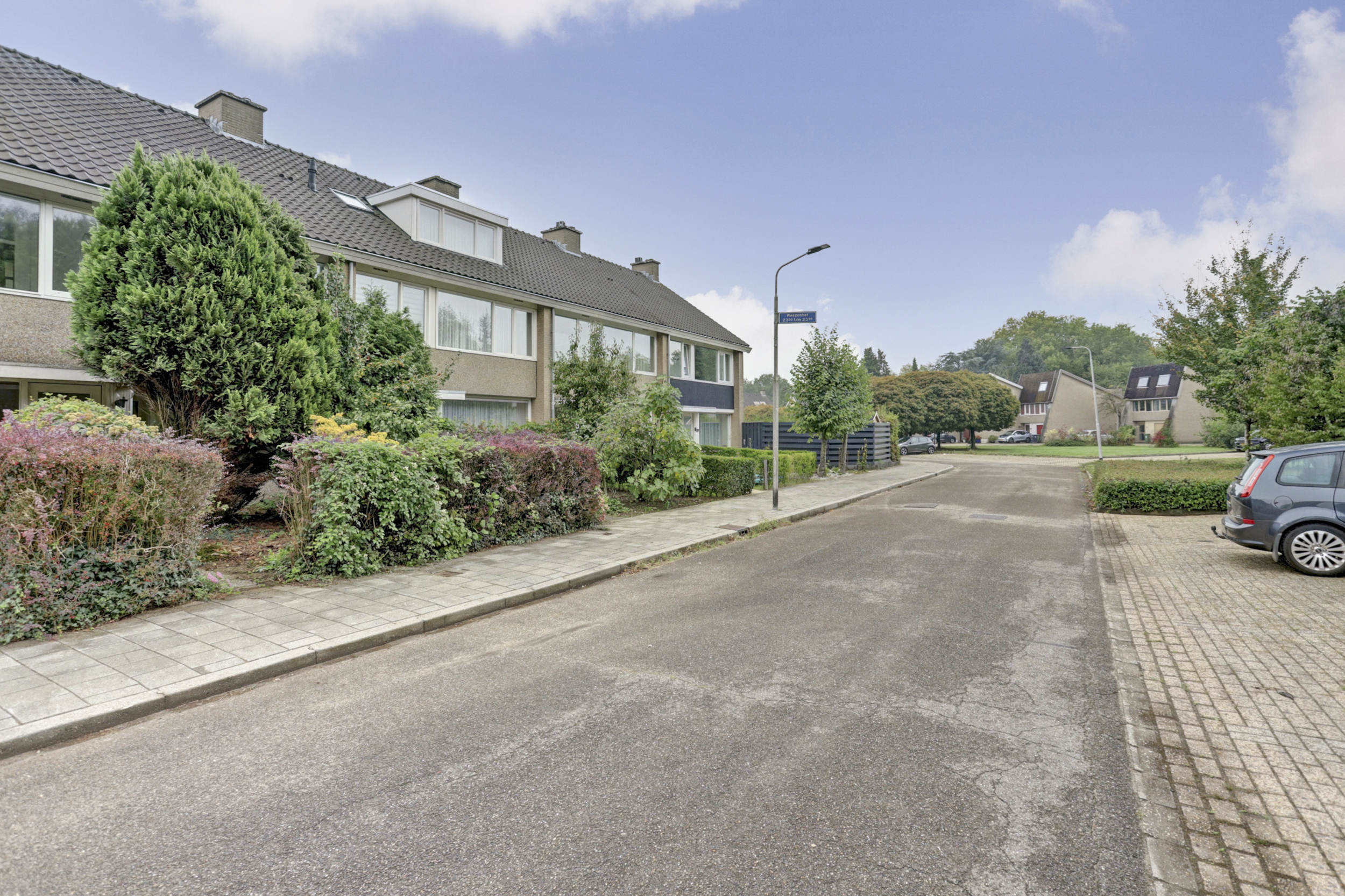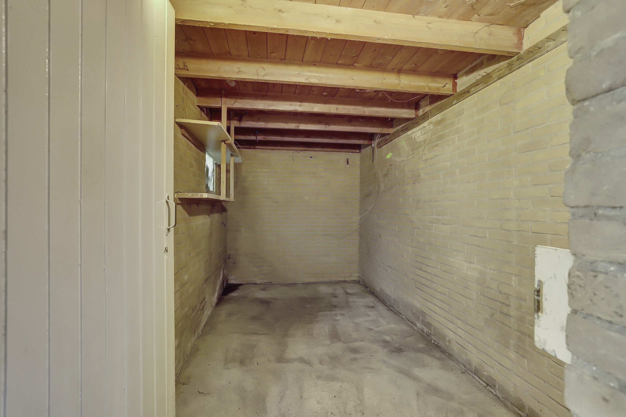 De riante woonkamer is bijzonder licht door de grote raampartijen. De half open keuken zonder inbouwapparatuur is eenvoudig. De achtertuin is gelegen op het zuidoosten en is voorzien van een vrijstaande stenen berging met elektra en achterom. Op de eerste verdieping zijn drie volwaardige slaapkamers te vinden, waarvan één slaapkamer met wastafel. De eenvoudige badkamer is uitgerust met een wastafel, toilet en ligbad met douche. Tussen twee slaapkamers in vinden we een ruime inloopkast. Middels een vaste trap is de zolderverdieping te bereiken. Daar tref je een riante slaapkamer met dakkapel en uiteraard veel bergruimte achter de knieschotten. In een aparte ruimte bevindt zich de cv-ketel (Remeha 2008) en mechanische ventilatie-unit.