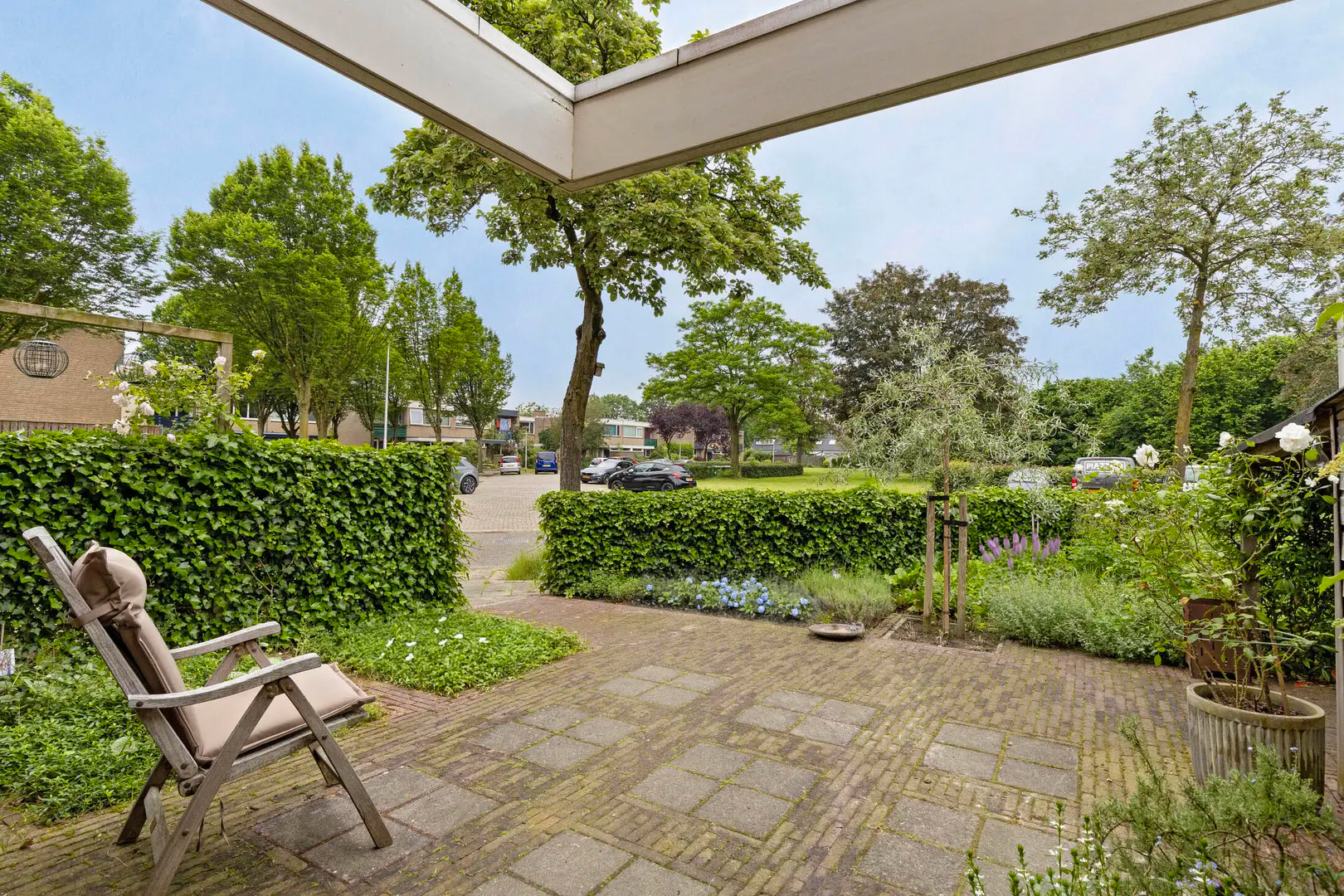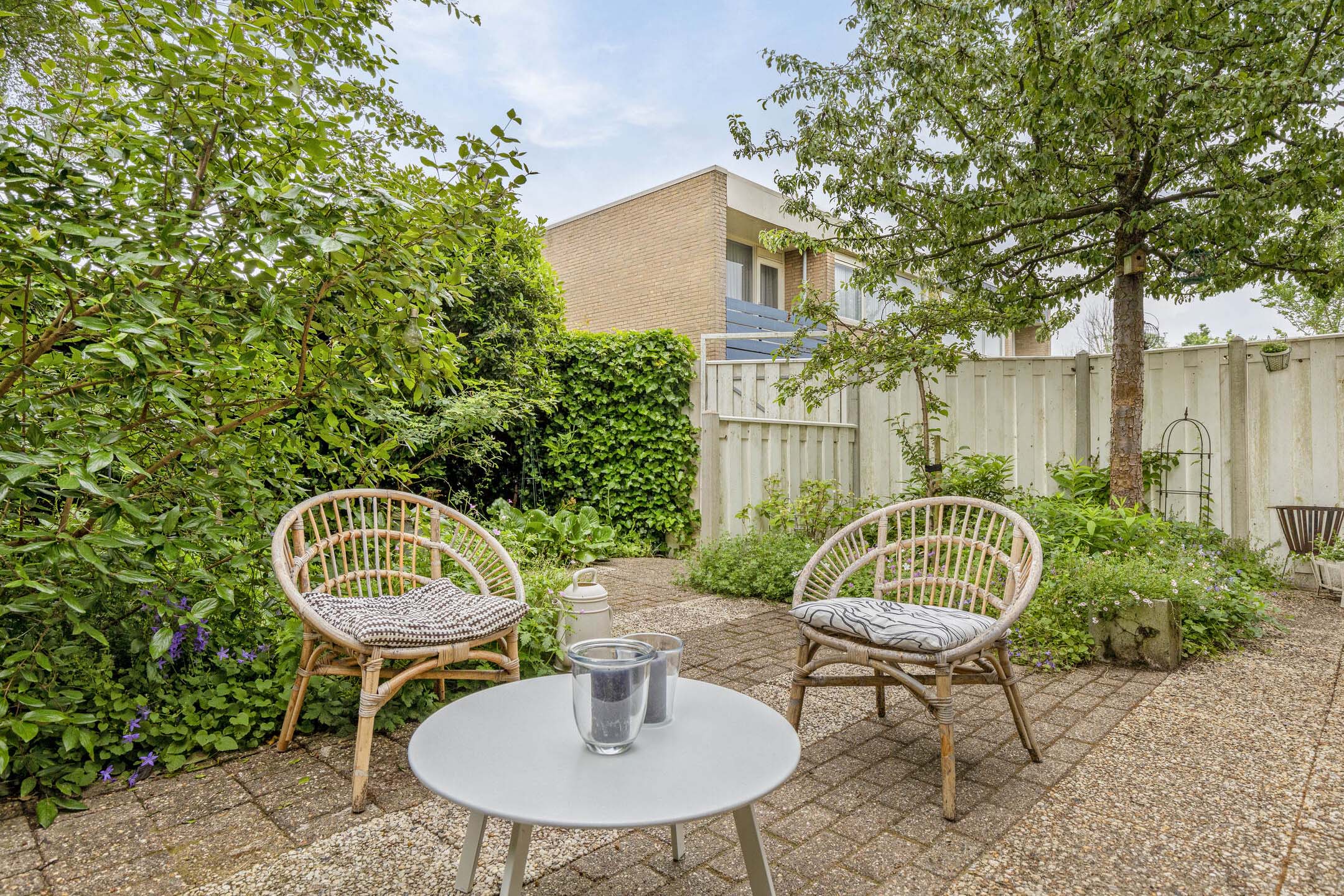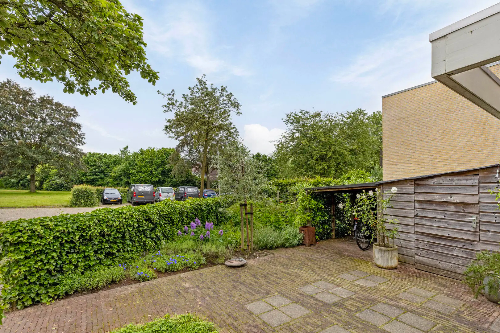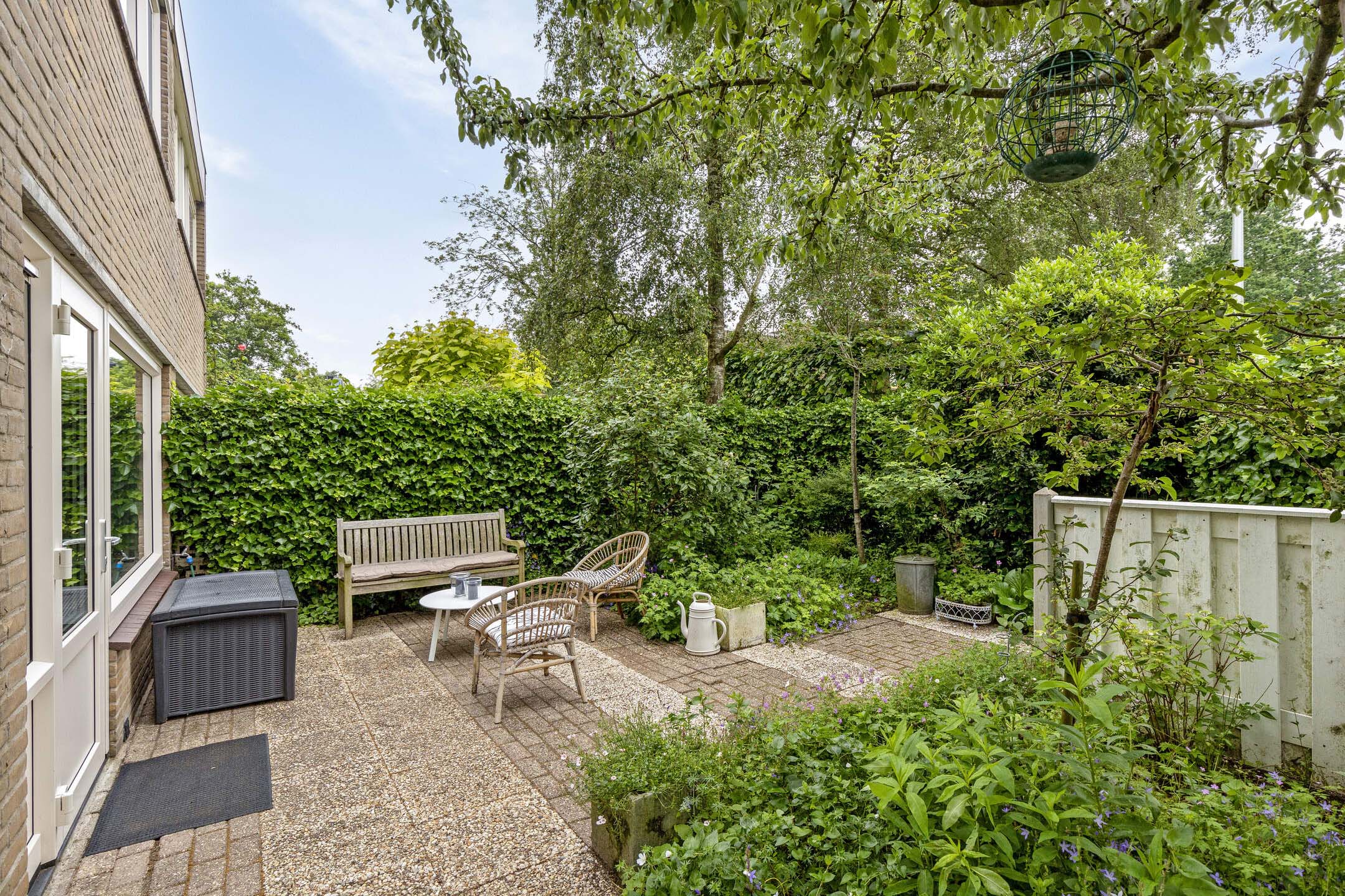 De woning beschikt over een fraai aangelegde achtertuin, gelegen op het zuiden, van maar liefst ca. 67 m². Dankzij de ligging op de hoek geniet je hier van extra privacy en veel groen. Daarnaast is er een ruime en mooi aangelegde voortuin (8 x 7 m²). In de voortuin vind je bovendien een aangebouwde houten fietsberging en een houten fietsoverkapping.