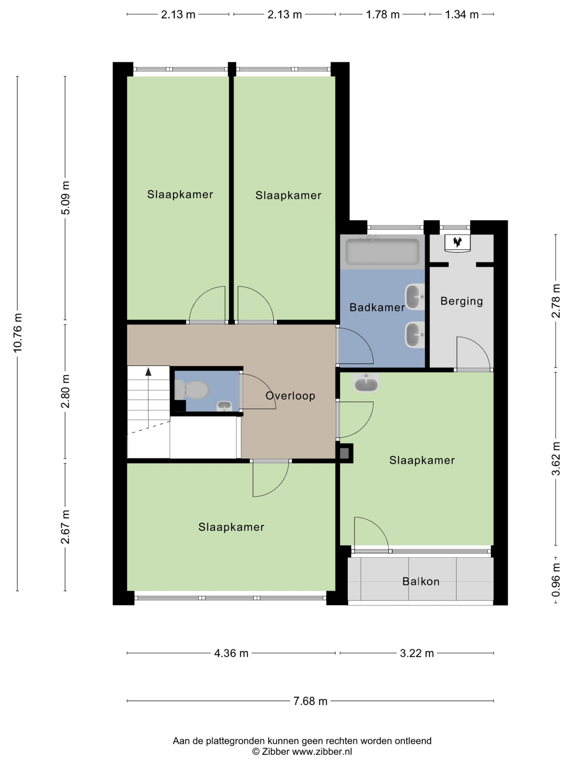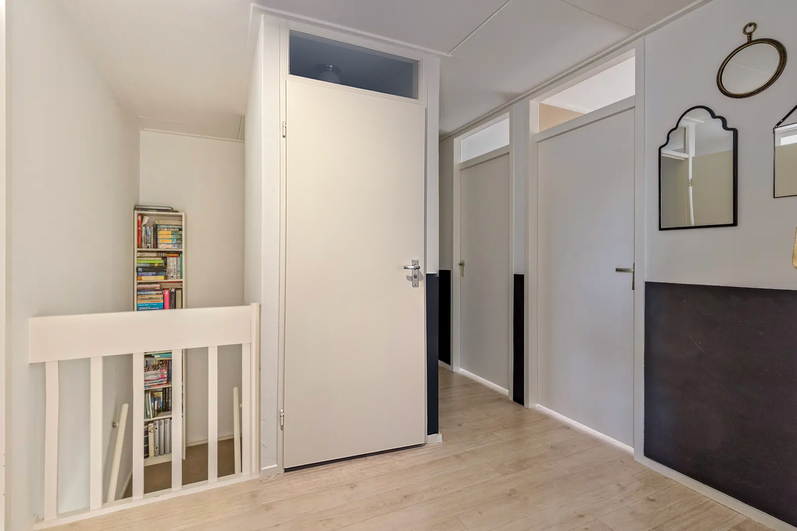 Op de eerste verdieping vinden we vier ruime slaapkamers en een complete badkamer met ligbad, douche en dubbele wastafel. Extra praktisch: op deze verdieping is er een tweede separaat toilet aanwezig. Eén van de slaapkamers aan de voorzijde beschikt over een ruime inbouwkast waar ook de cv-ketel is geplaatst en biedt toegang tot het balkon.