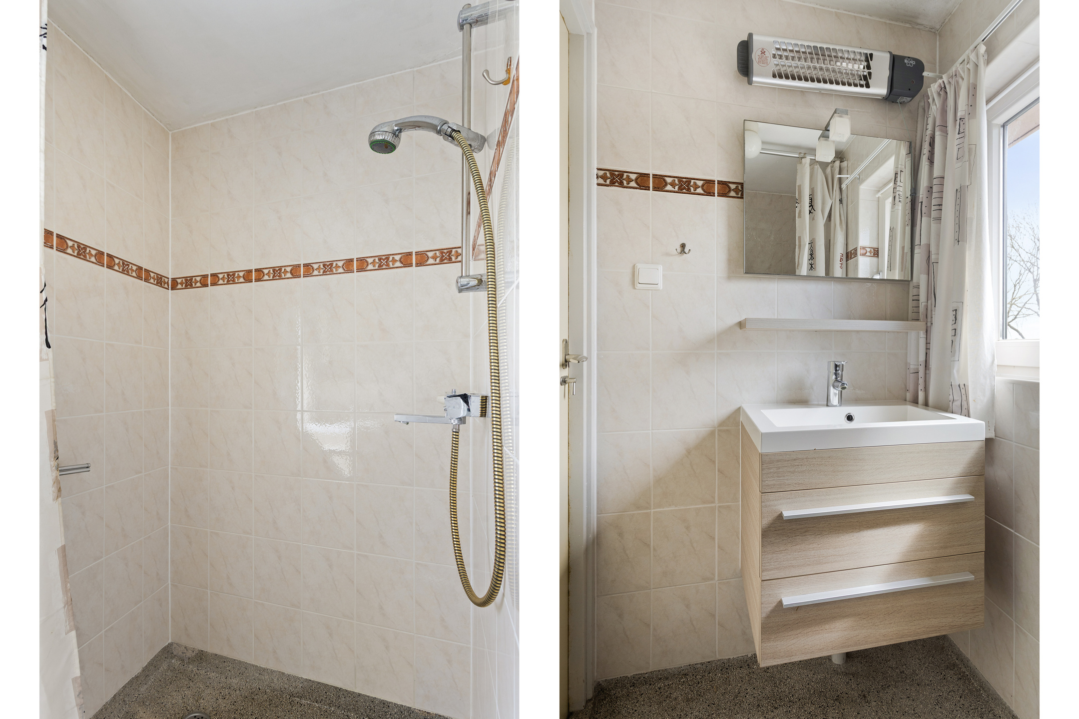 De overloop geeft toegang tot drie slaapkamers en een badkamer. Alle slaapkamers zijn voorzien van vaste kasten en ramen met kunststof kozijnen met HR++ glas. De badkamer is geheel betegeld en uitgerust met een inloopdouche, wastafelmeubel en een raam met kunststof kozijn.