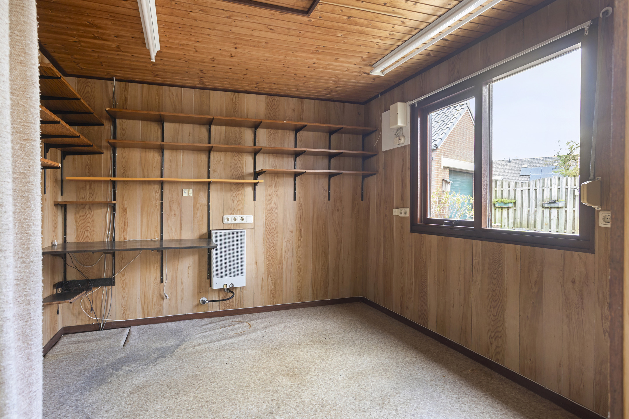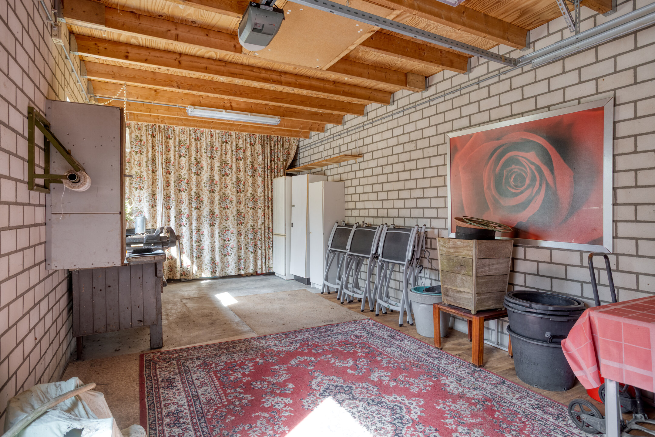 Prachtige grote vrijstaande garage van ca. 28 m², gebouwd in spouw en voorzien van geïsoleerde dakplaten, houten kozijnen met dubbele beglazing, een elektrische segmentdeur en een extra groepenkast. Daarnaast beschikt de garage over een bergzolder, bereikbaar via een vlizotrap. De nokhoogte van de zolder is ca. 1,25 m.