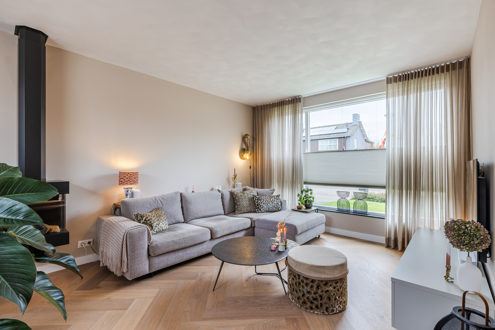 Een huis om meteen verliefd op te worden. Een plek waar luxe, comfort en sfeer naadloos samensmelten, in een rustige omgeving. In de afgelopen 5 jaar is deze woning met oog voor detail en hoogwaardige materialen getransformeerd tot een eigentijdse leefomgeving waar je zó kunt intrekken. Denk aan een stijlvolle keuken en badkamer, visgraatvloeren, maatwerkkasten en een perfect afgewerkte wand- en plafondafwerking: alles straalt warmte én kwaliteit uit.