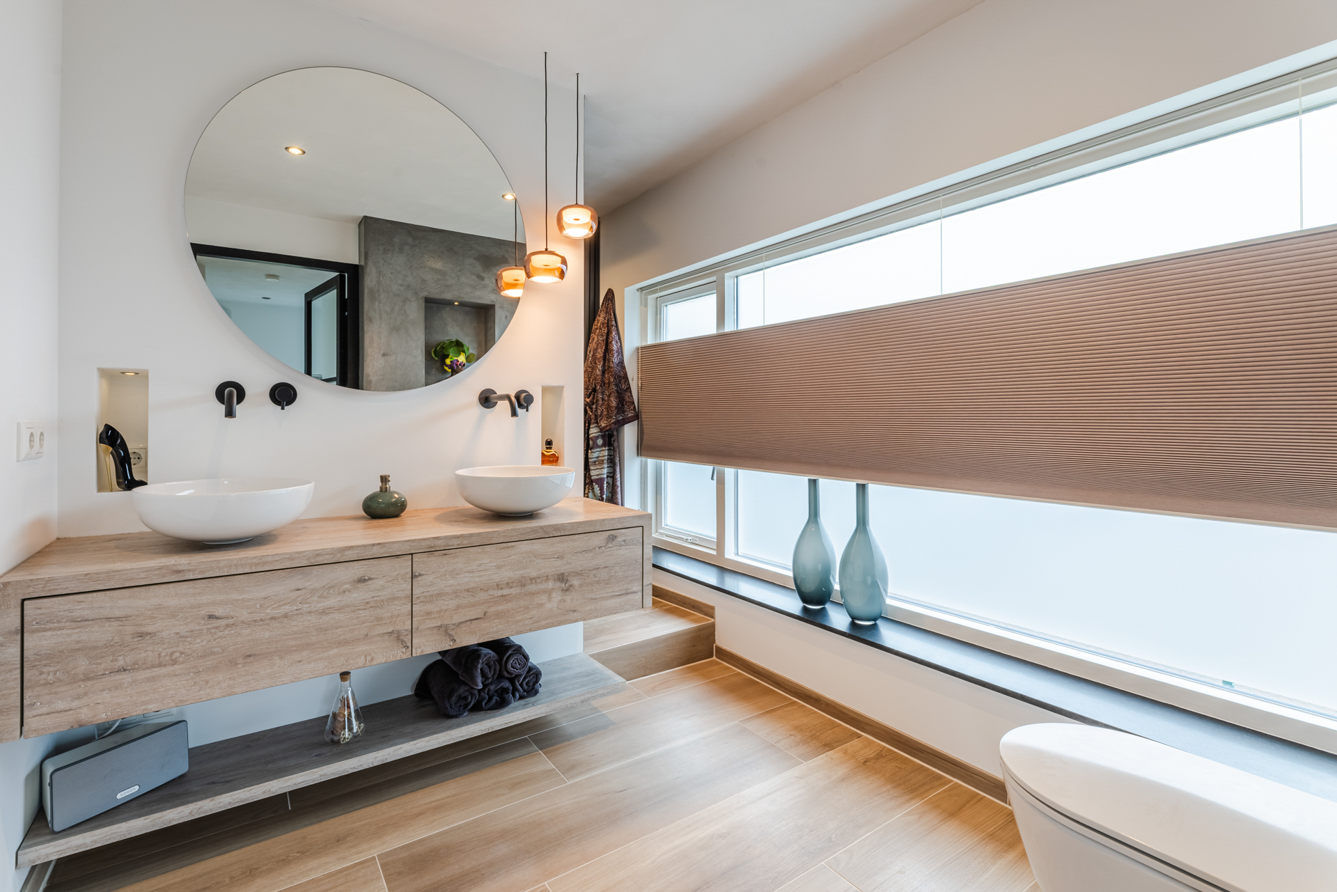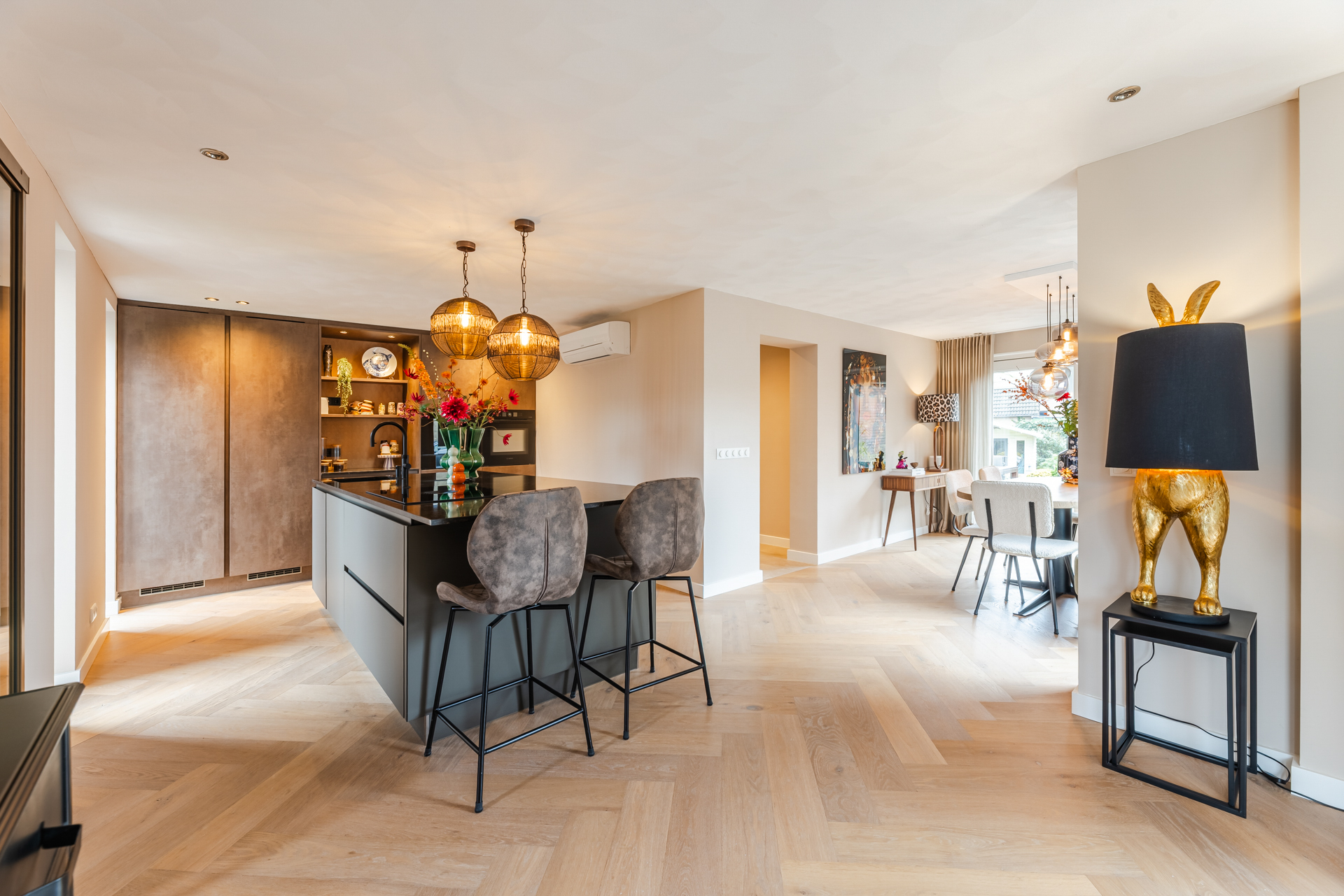 De houten visgraatvloer met vloerverwarming en de airconditioning (koelen én verwarmen) zorgen voor optimaal comfort.