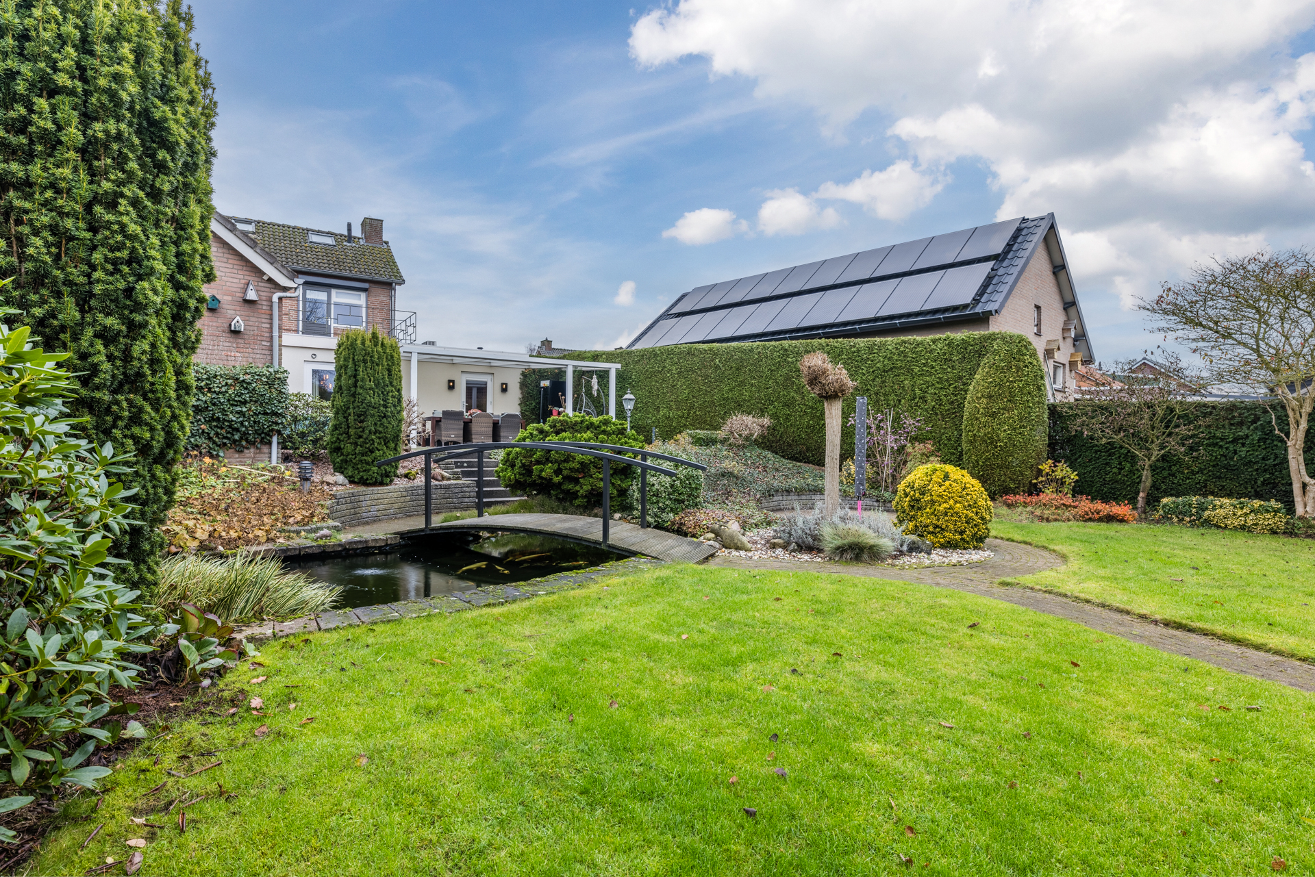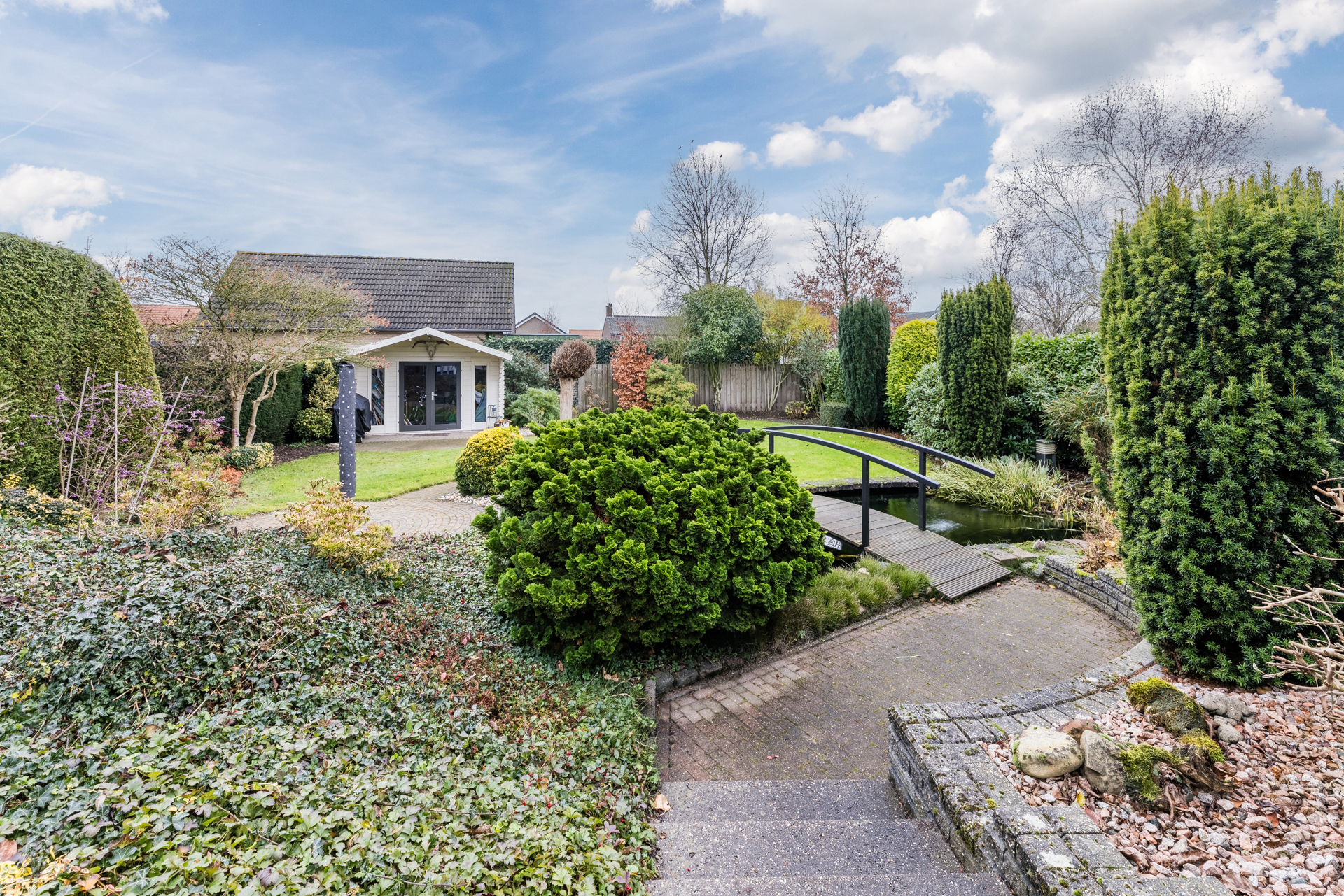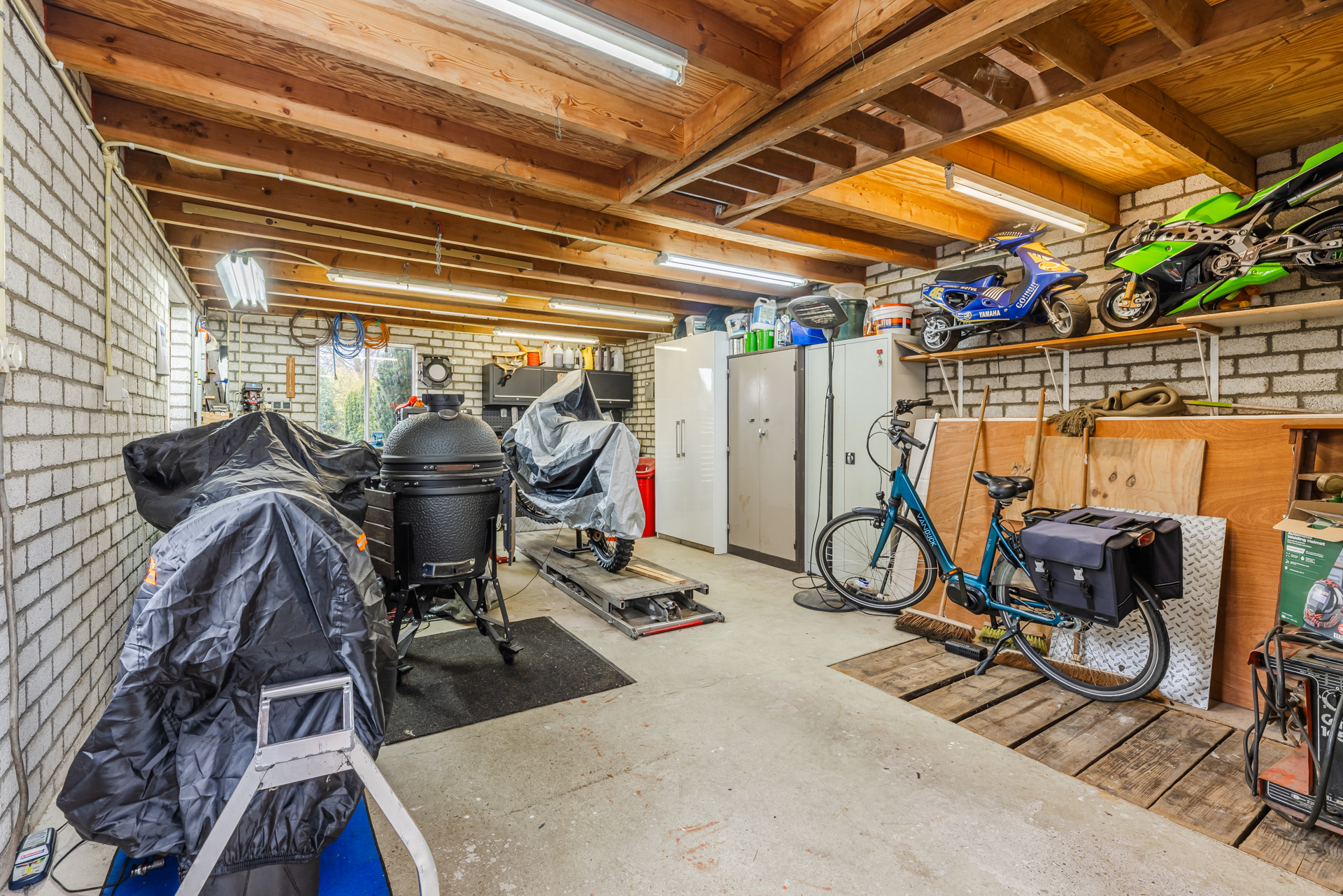 De achtertuin is een absolute verrassing: meer dan 400 m² prachtig aangelegde buitenruimte met terrassen, een tuinpaviljoen, een vijverpartij, moestuin en volop privacy. Onder de royale overkapping geniet je in alle rust van lange avonden buiten. De ruime oprit en de grote garage met vliering en smeerput bieden volop parkeergelegenheid en extra hobby- of opslagruimte.