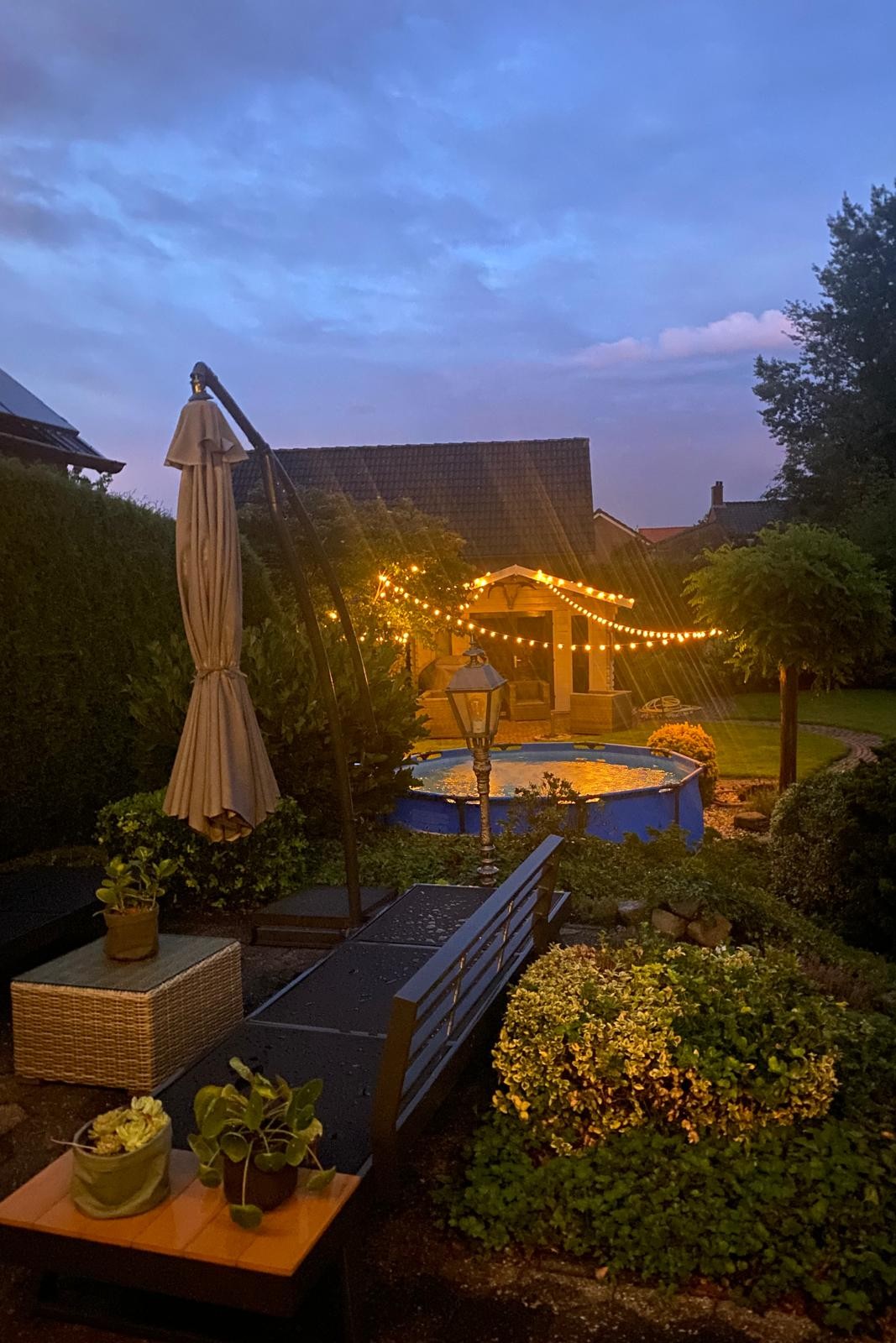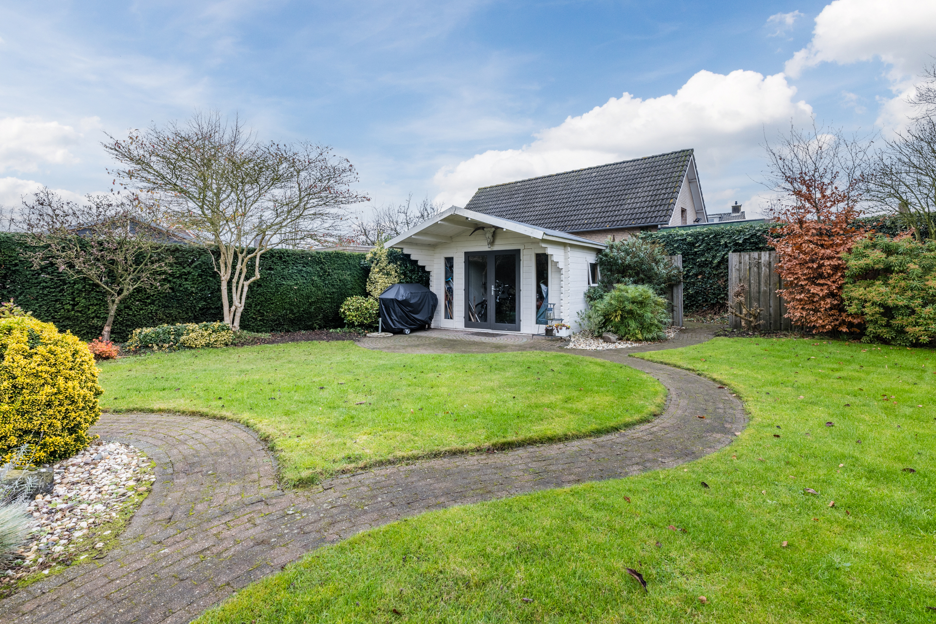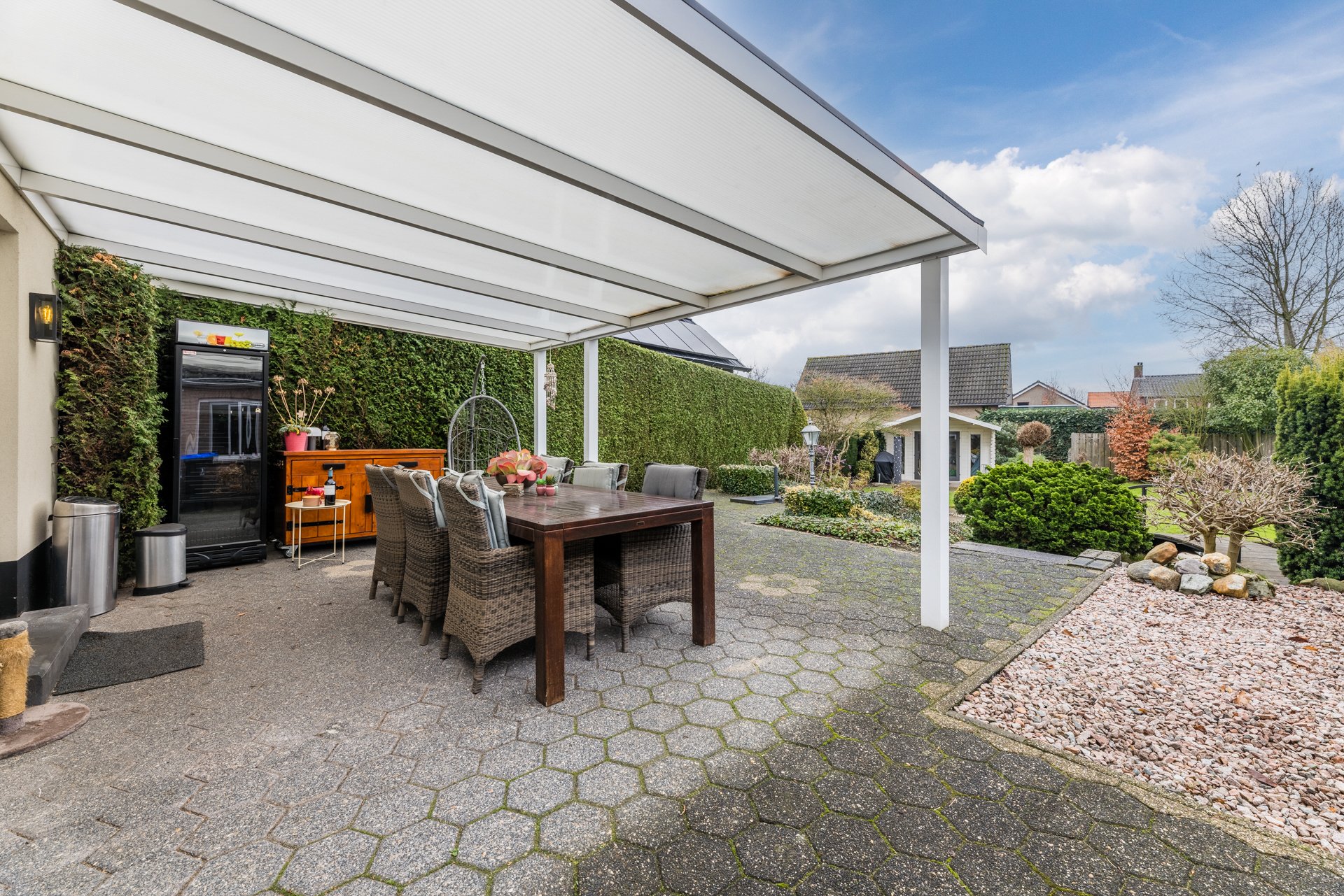 De achtertuin is een absolute verrassing: meer dan 400 m² prachtig aangelegde buitenruimte met terrassen, een tuinpaviljoen, een vijverpartij, moestuin en volop privacy. Onder de royale overkapping geniet je in alle rust van lange avonden buiten. De ruime oprit en de grote garage met vliering en smeerput bieden volop parkeergelegenheid en extra hobby- of opslagruimte.
