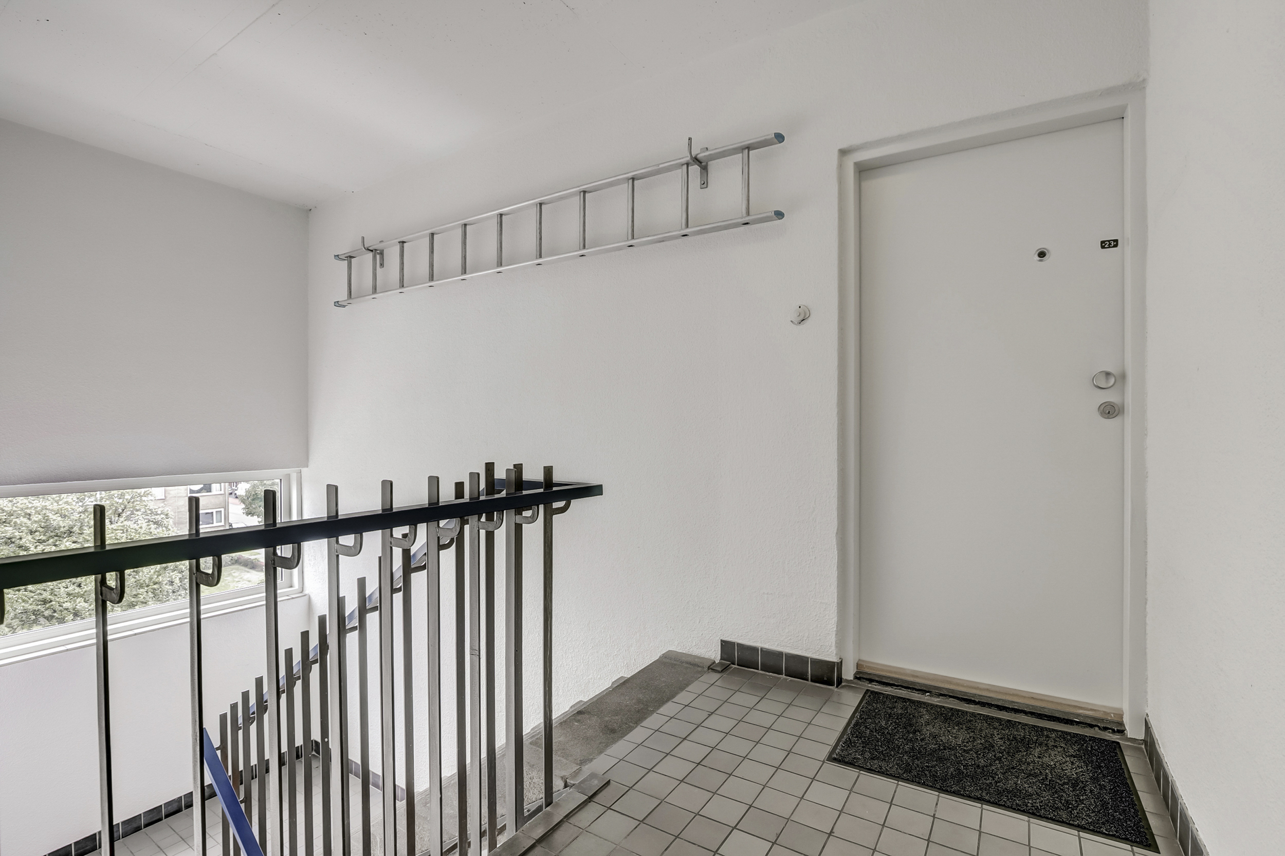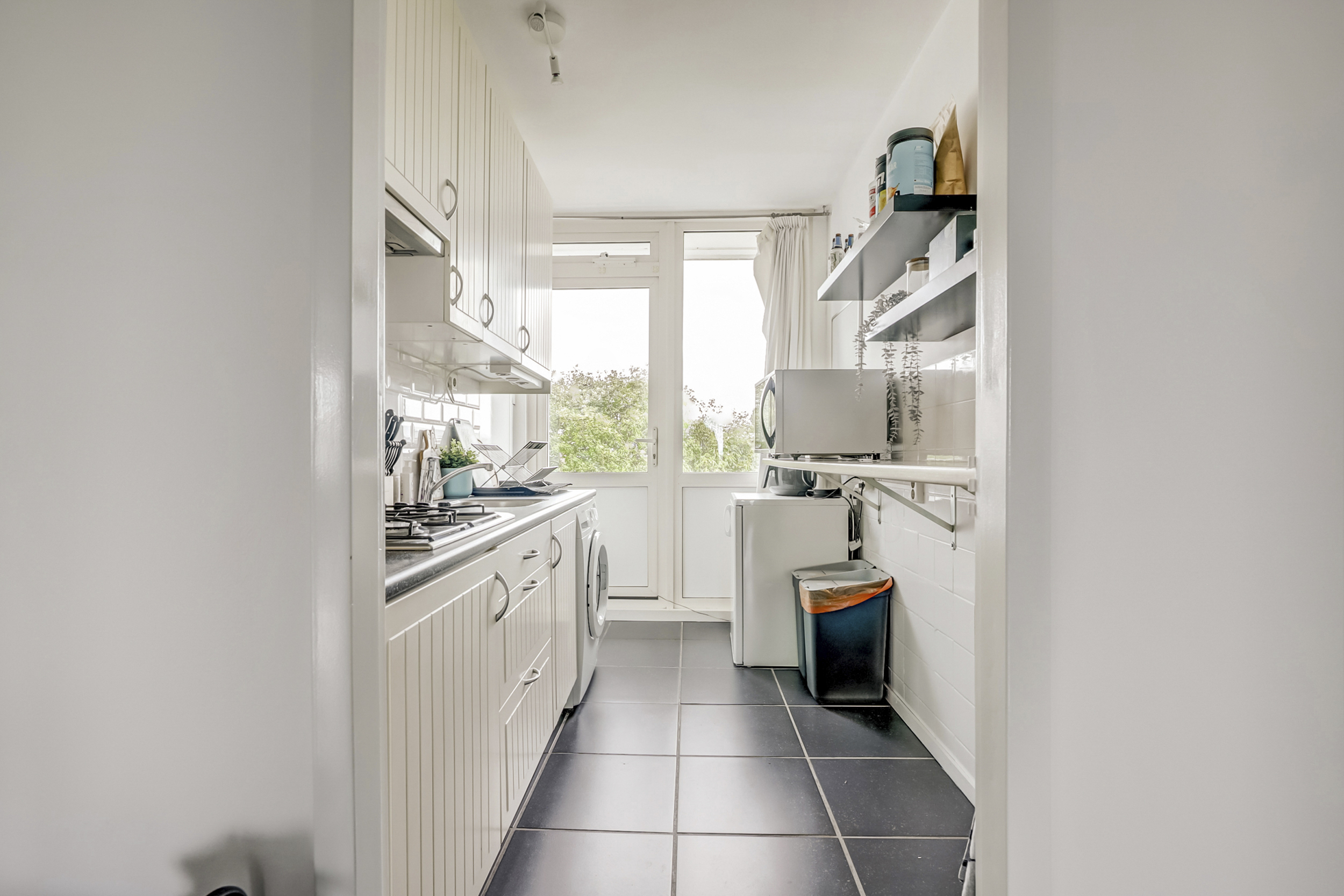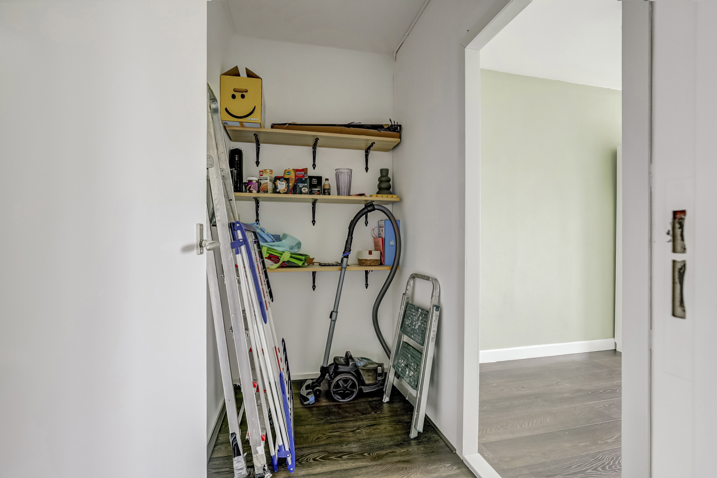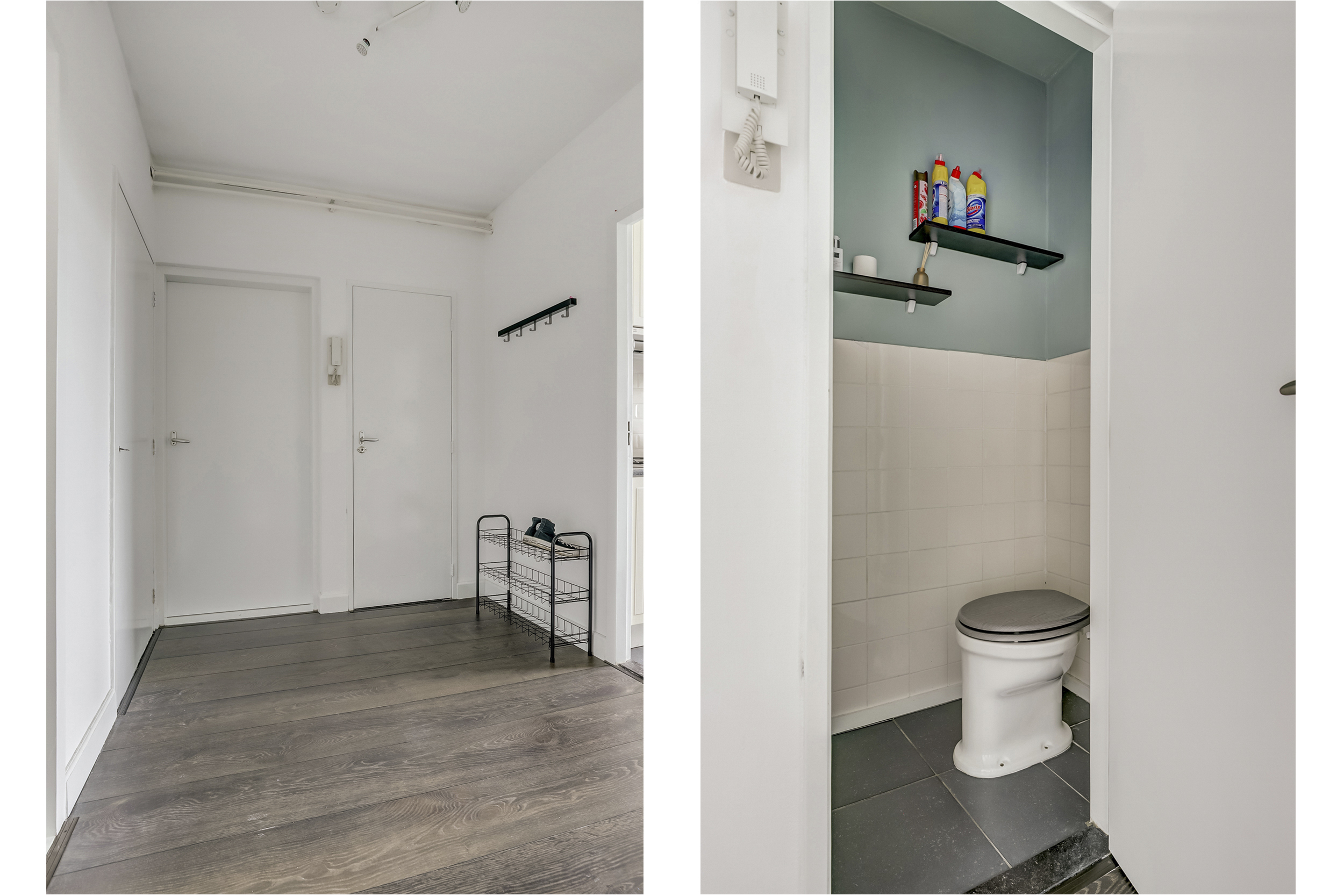 Ook de keuken is toegankelijk via de hal. Deze biedt door de parallelopstelling veel werk- en opbergruimte en is voorzien van een gaskookplaat, afzuigkap en koelkast. Daarnaast zijn in de keuken de aansluitpunten voor de wasmachine aanwezig. Je kunt op een mooie dag lekker de deur van het balkon openzetten tijdens het koken. Met een ligging op het noordoosten is dit ook een fijne plek om de dag op te starten met een kop koffie.