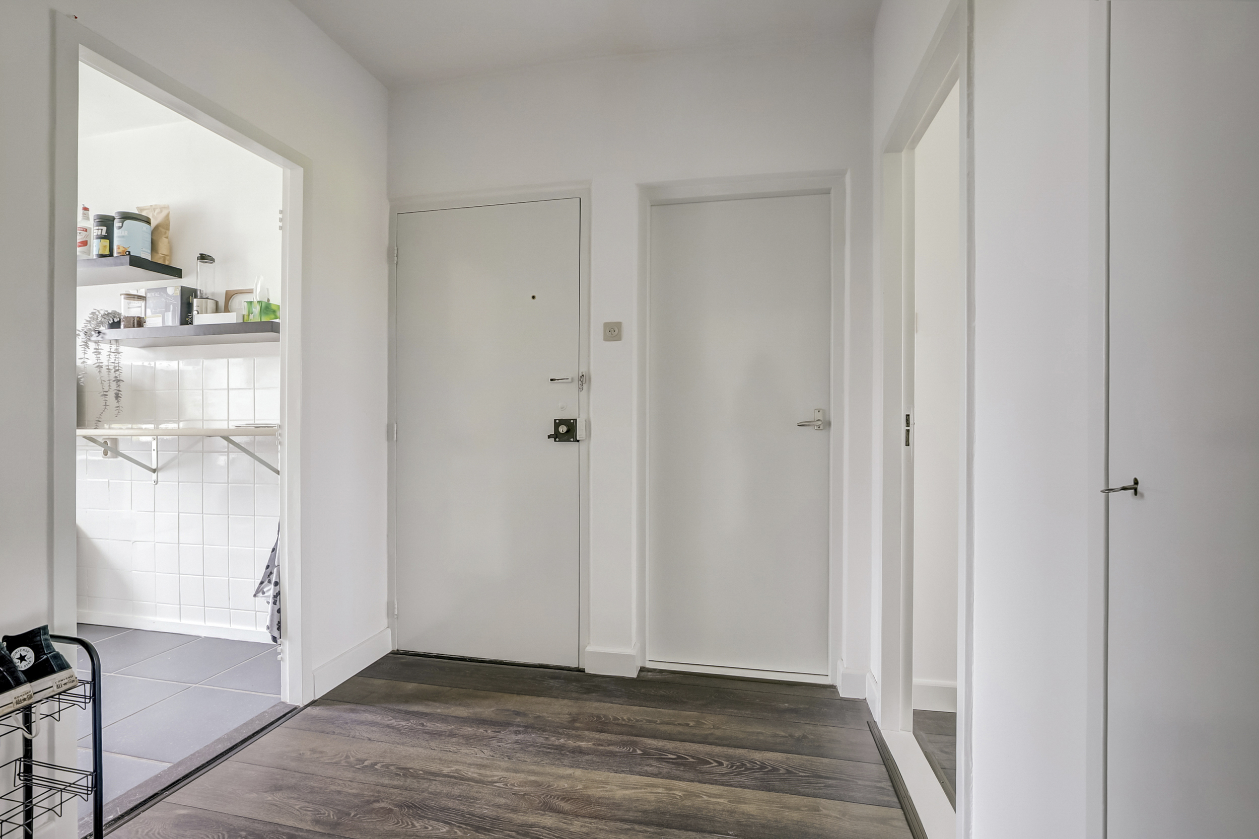 De hal biedt toegang tot de woonkamer, de twee slaapkamers (één slaapkamer toegankelijk via de praktische berging), de keuken en de toiletruimte.