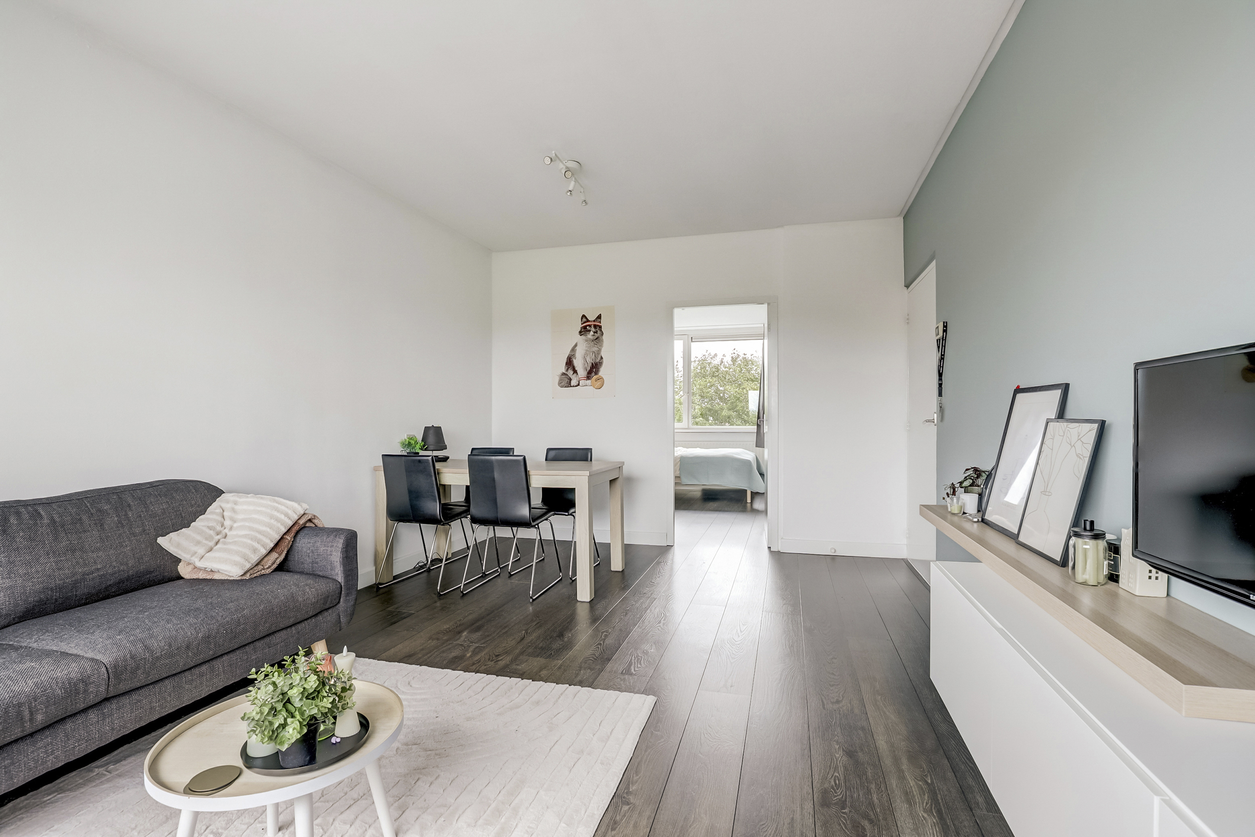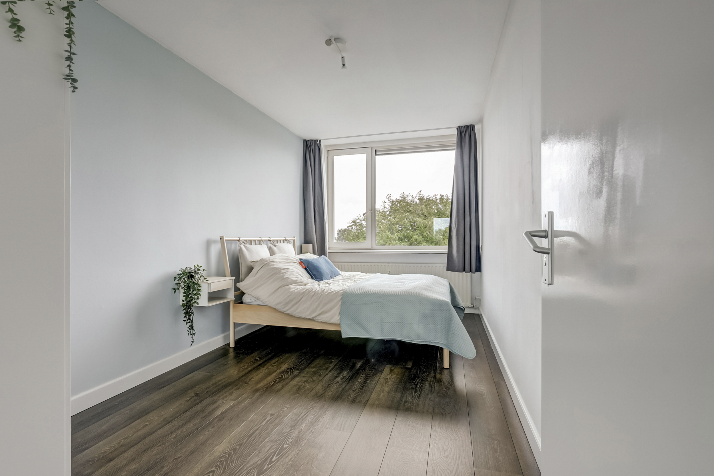 Dit appartement bevindt zich op de vierde verdieping van het appartementencomplex, wat zorgt voor een fijne uitkijk en veel privacy. Daarbij zijn de keuken en badkamer netjes, heeft het twee volwaardige slaapkamers, een sfeervolle woonkamer en aparte eetkamer, is er een eigen berging in het souterrain en een balkon om buiten te zitten. Wat wil je nog meer?