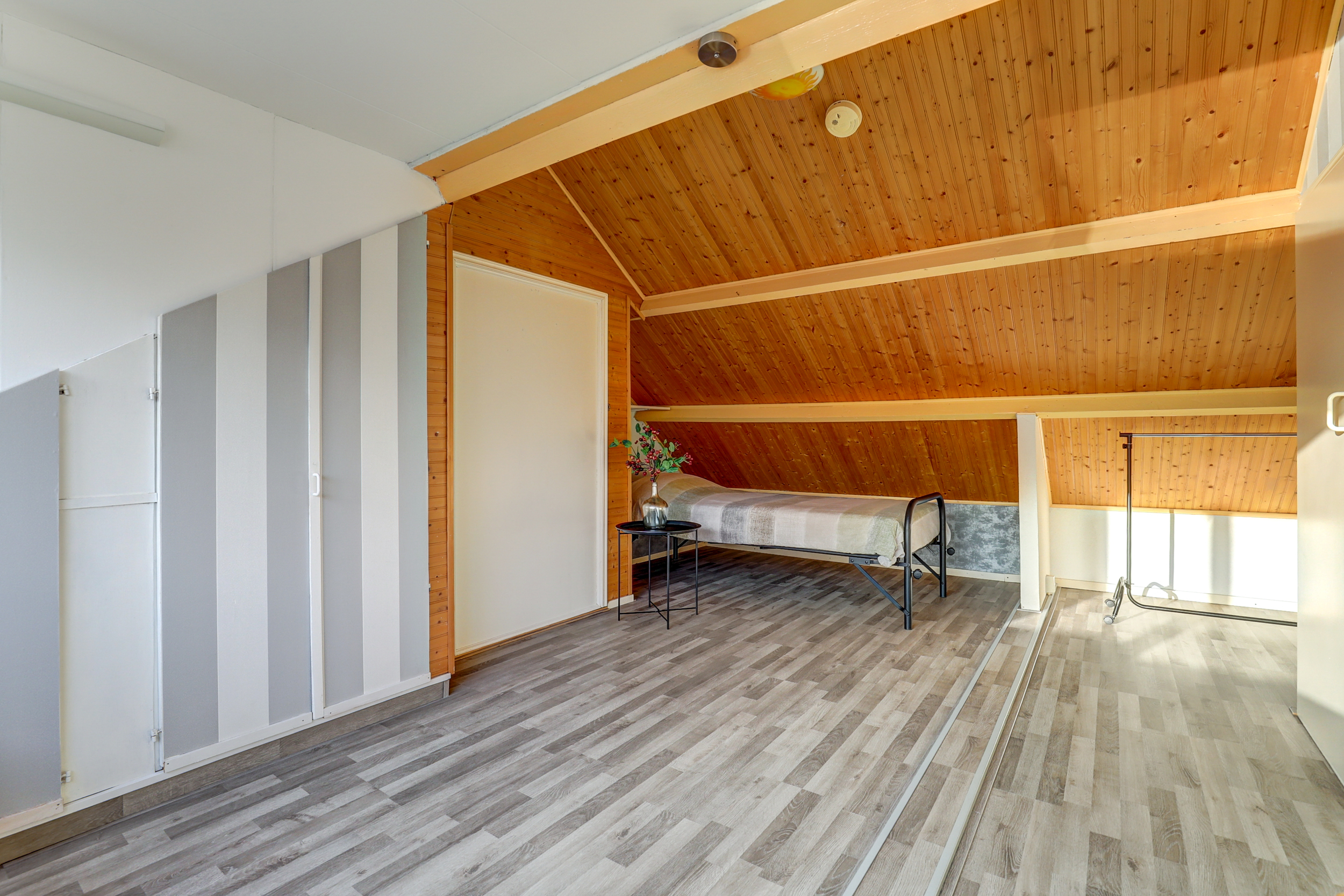 Via de vaste trap kom je op een klein overloopje met vast bergruimte en toegang tot de 4de slaapkamer met dakkapel aan de achterzijde, rolluik, bergkasten, laminaatvloer en opstelplaats voor de Cv-ketel (Intergas HRE, 2021)