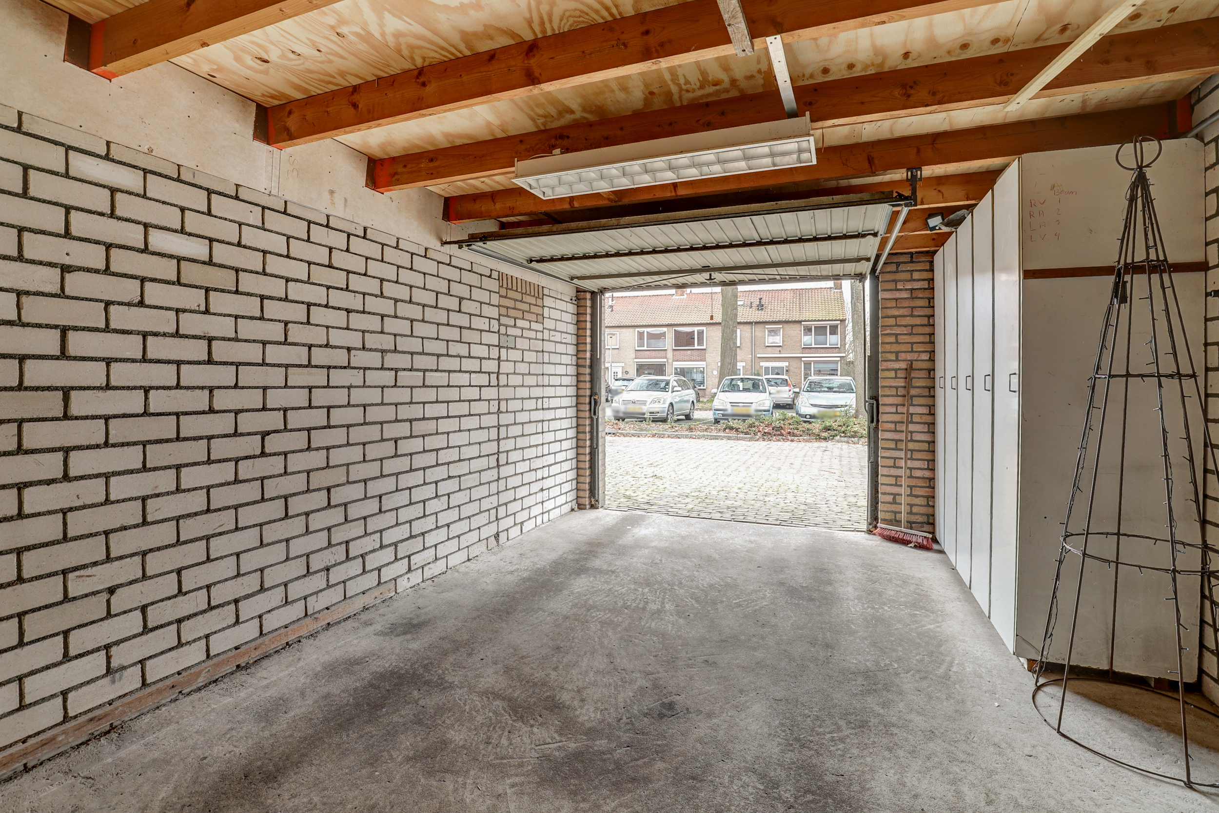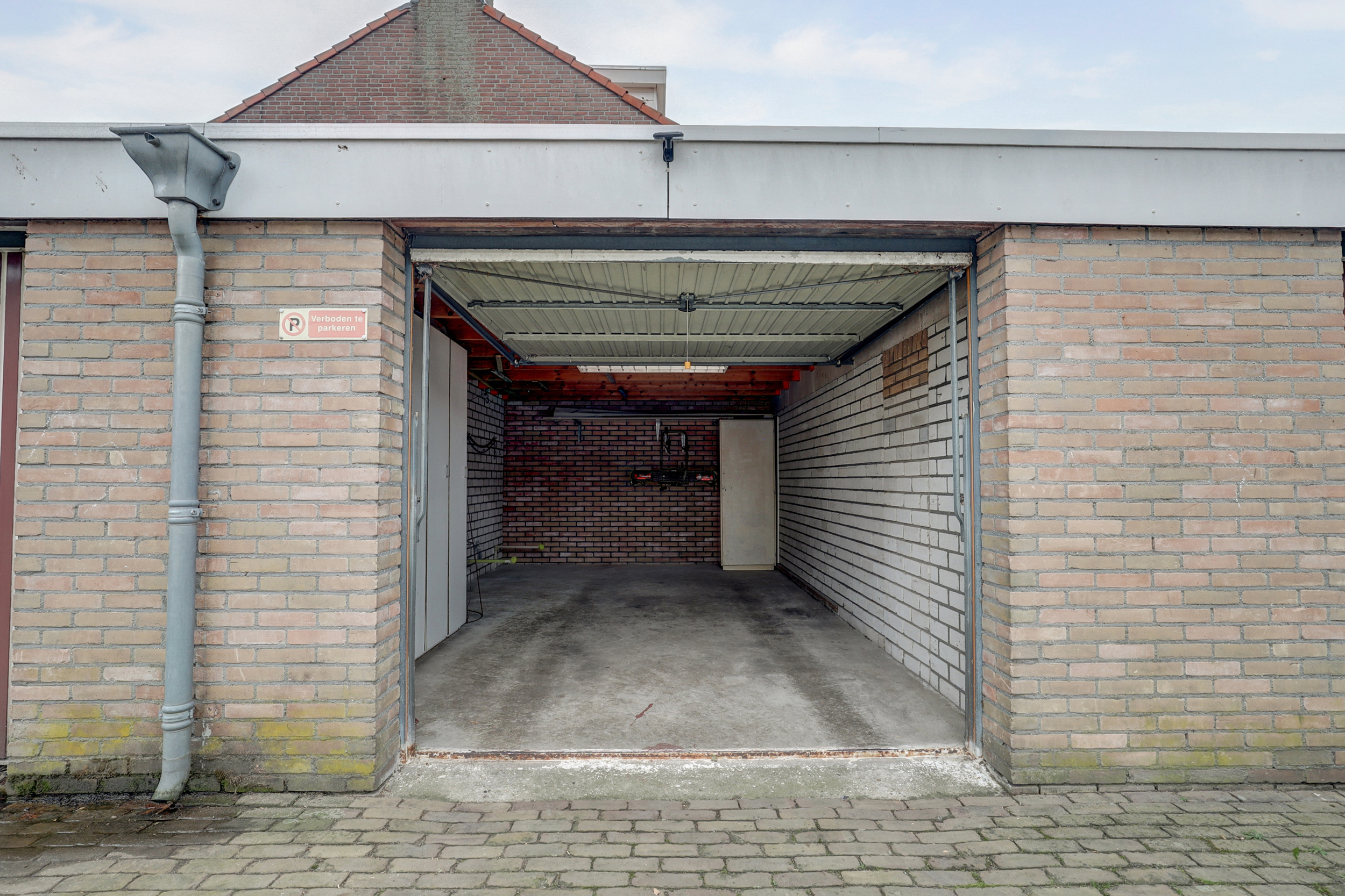 Op het pleintje naast de woning ligt de ruime garage van ca. 20 m2 met garagedeur.