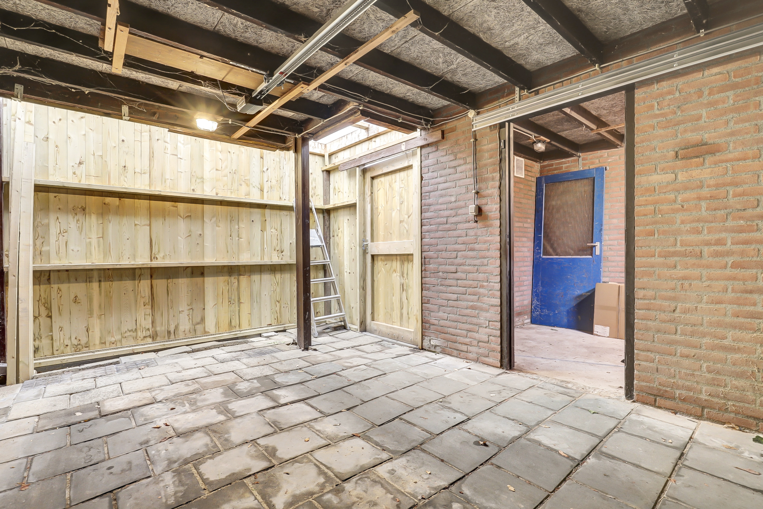 - Garage Aangebouwd steen, aangebouwd hout