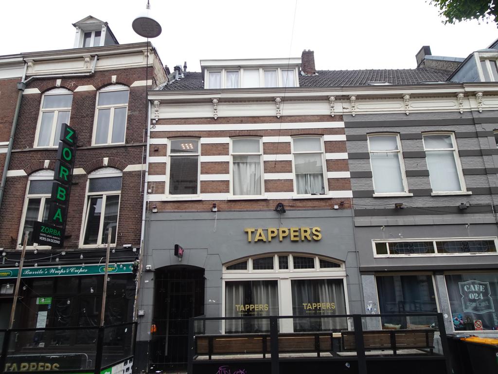 Een volledig verhuurd object met op de begane grond en in het souterrain het bekende en goed lopend horecabedrijf (cafebedrijf Tappers) en op de eerste en tweede verdieping kamerverhuur bestaande uit 6 kamers en een gemeenschappelijke kamer (onzelfstandige woonruimte).